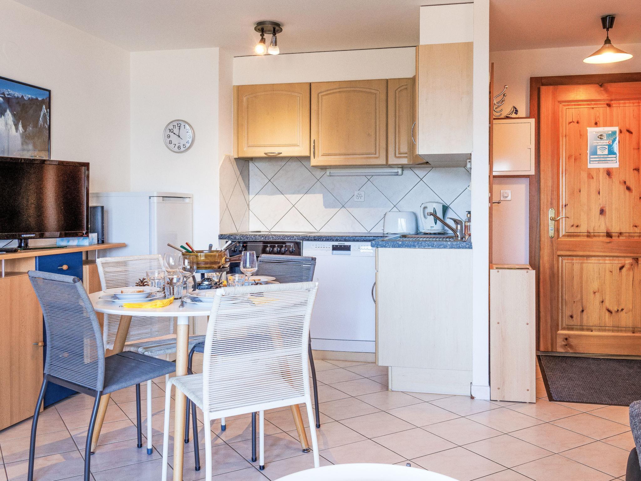 "Grand Panorama A11", 2-room apartment 45 m2 on 3rd floor. Object suitable for 2 adults + 2 children. Bright, beautiful furnishings: living/dining room with 1 double fold-away bed (140 cm, length 190 cm), cable TV. Exit to the balcony, north facing position. 1 room with 1 french bed (160 cm, length 200 cm). Exit to the balcony, north facing position. Open kitchen (oven, dishwasher, 4 ceramic glass hob hotplates, toaster, raclette grill, fondue Set (cheese)). Shower/WC. Balcony furniture. Very beautiful view of the mountains. Facilities: children's high chair, baby cot, hair dryer. Internet (WiFi, free). Parking space n A11 (roofed) at the house. Please note: non-smokers only. Maximum 1 pet/ dog allowed.