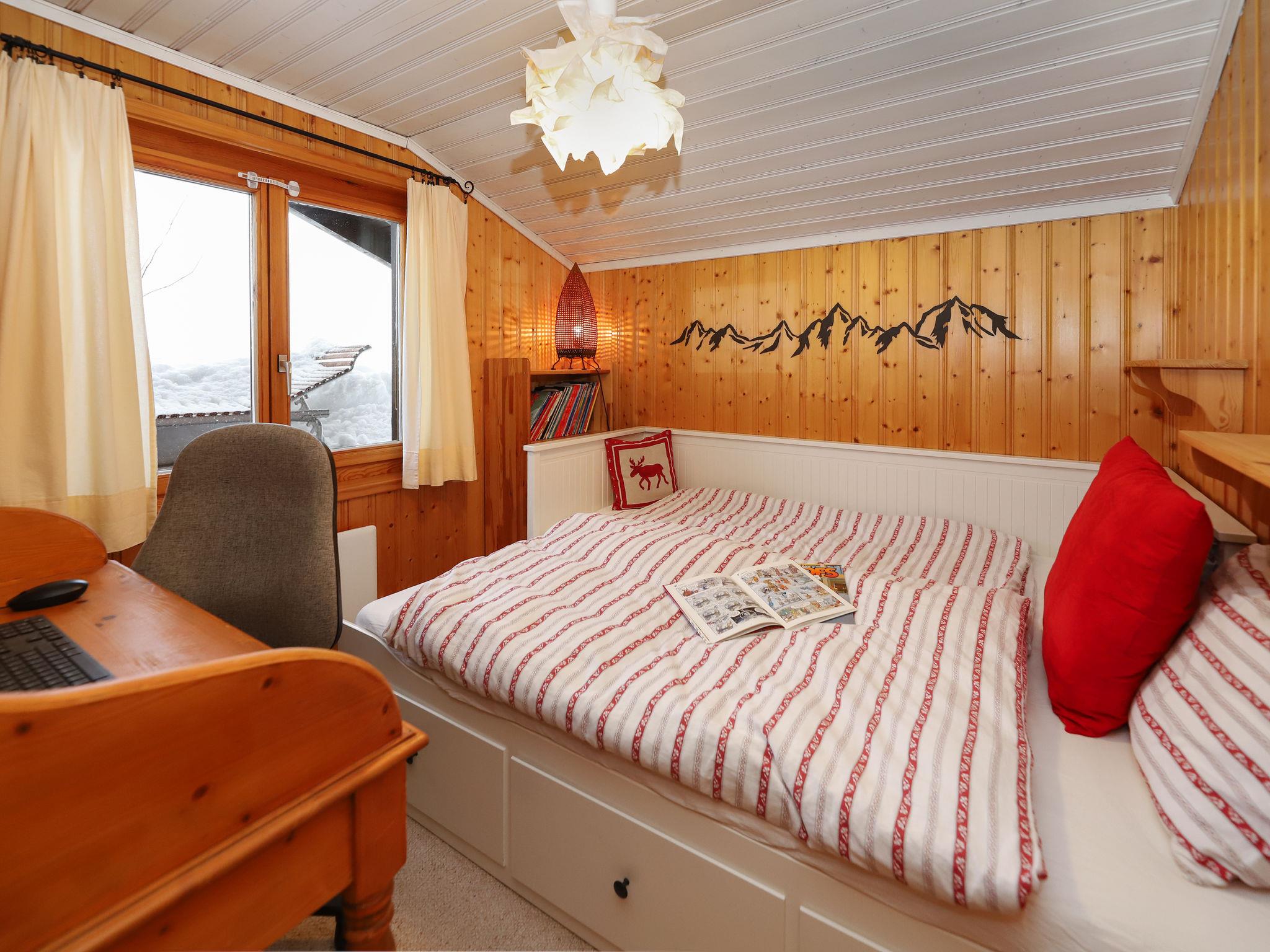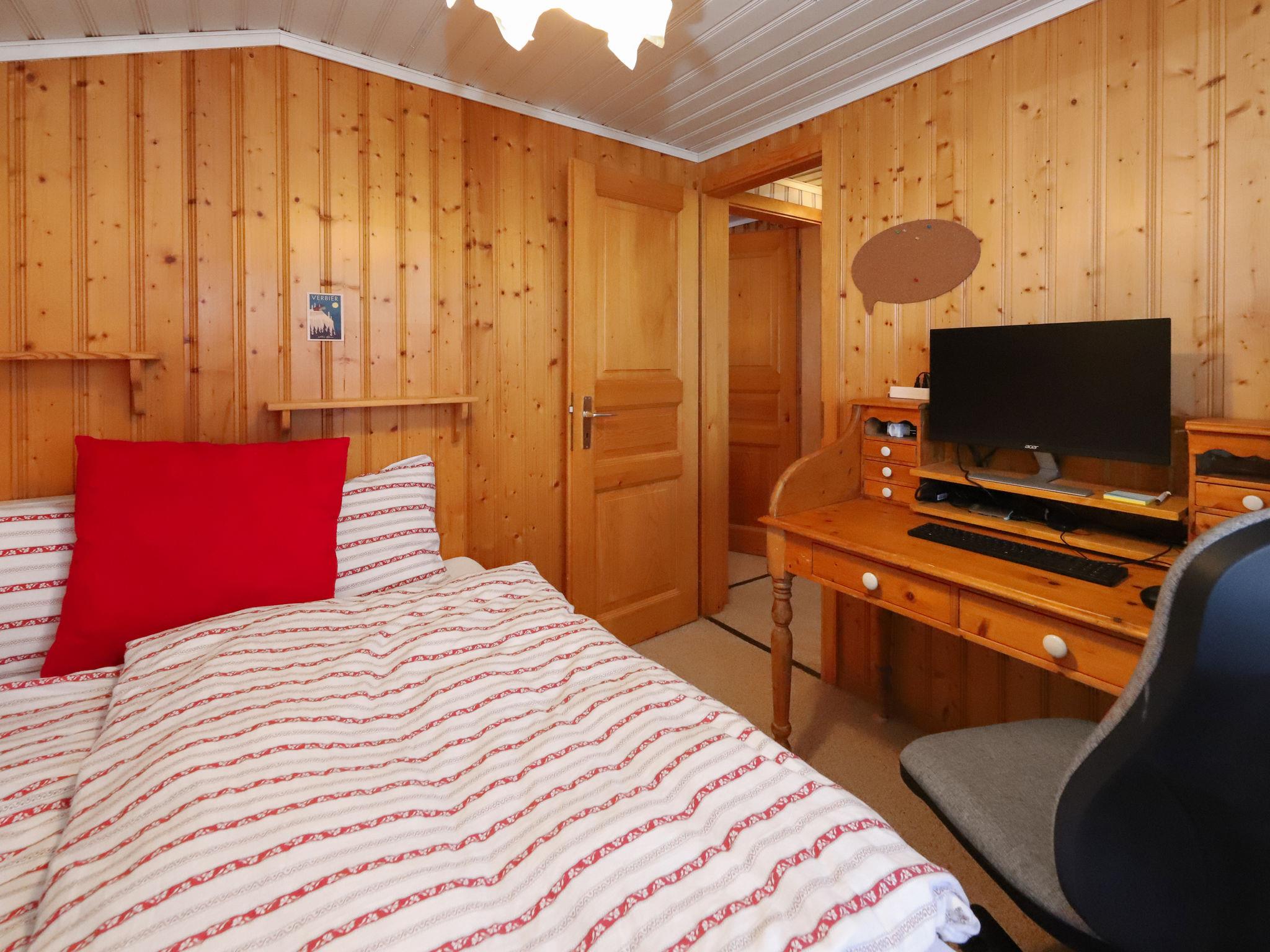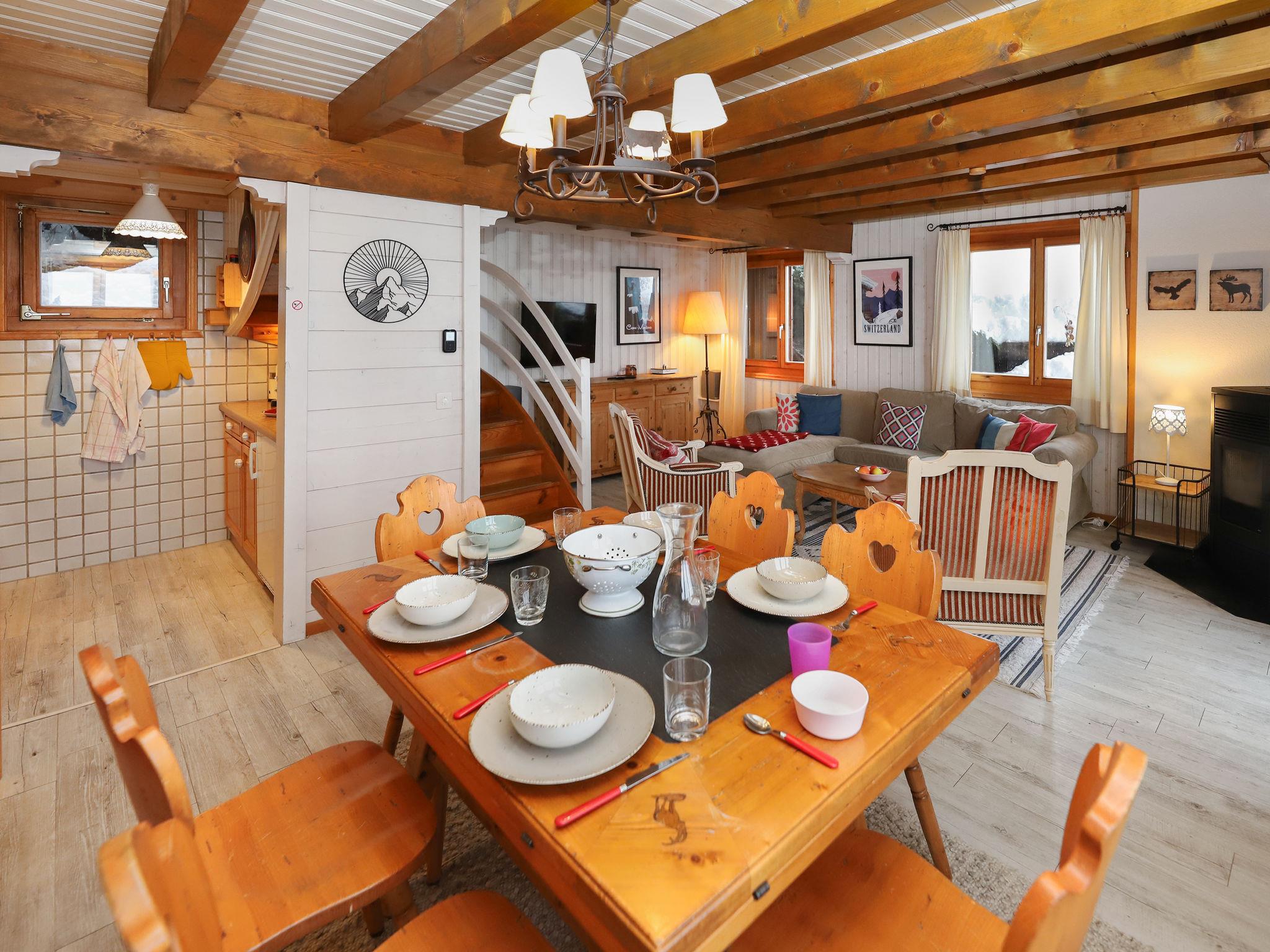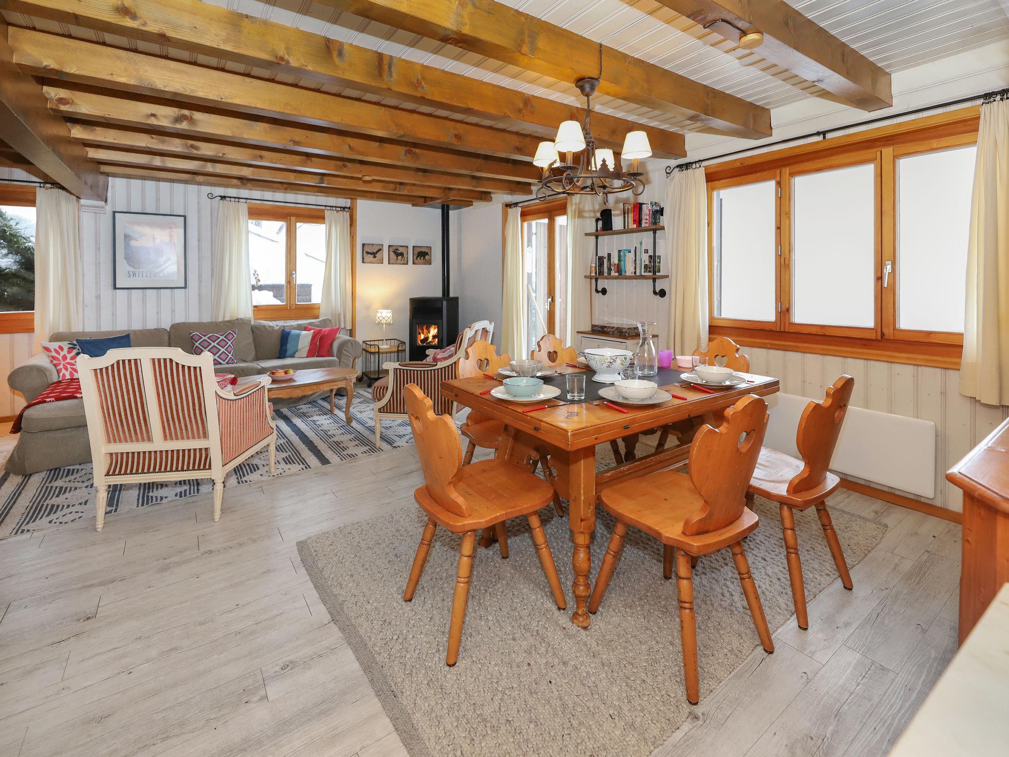 "Cheechako", 4-room chalet 100 m2 on 2 levels. Comfortable and beautiful furnishings: small entrance hall. Living/dining room with Scandinavian wood stove and cable TV. Exit to the terrace, north facing position and west facing position. Kitchenette (oven, dishwasher, 4 ceramic glass hob hotplates, toaster, kettle, electric coffee machine, Capsules for coffee machine (Nespresso) extra, raclette grill, fondue Set (chinoise, cheese)). Shower/WC. Electric heating. Upper floor: 1 room with 1 french bed (180 cm, length 200 cm). Exit to the balcony, north facing position. 1 room with 1 double bed (2 x 90 cm, length 190 cm). Exit to the balcony, north facing position. 1 room with 1 pull-out bed (2 x 80 cm, length 200 cm). Bath/WC. Garden, north facing position and west facing position. Terrace furniture, barbecue, deck chairs (4). Very beautiful view of the mountains and the valley. Facilities: washing machine, hair dryer. Internet (WiFi, free). Parking (1 car).