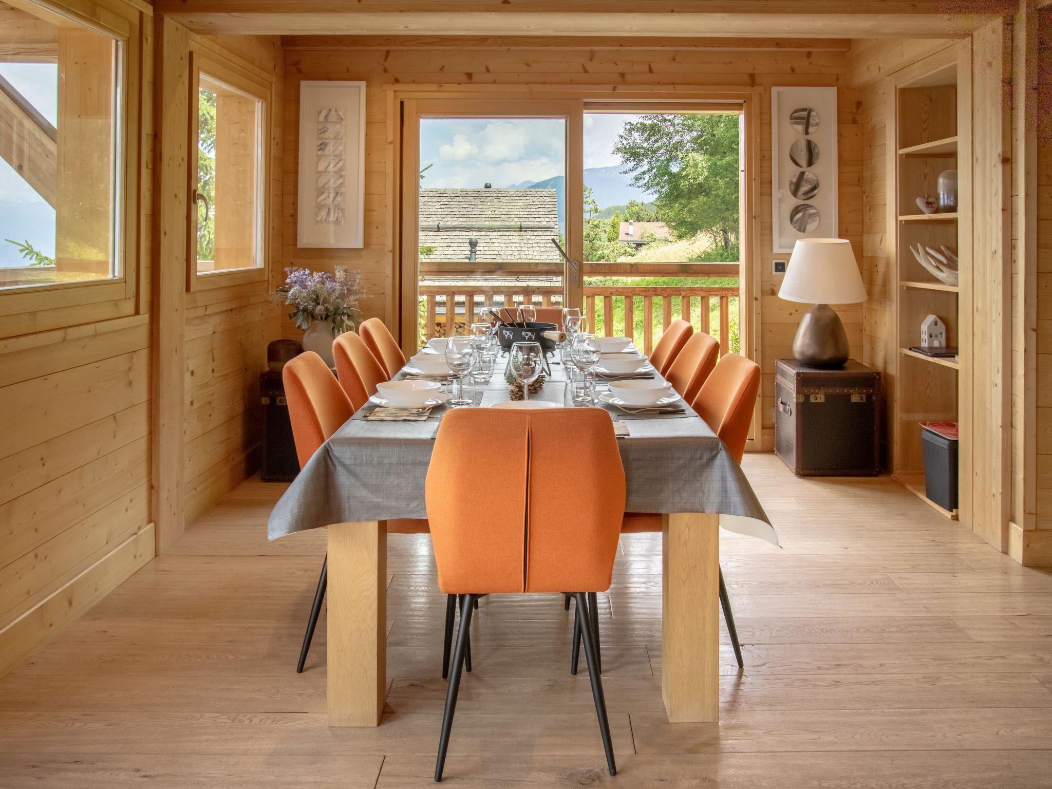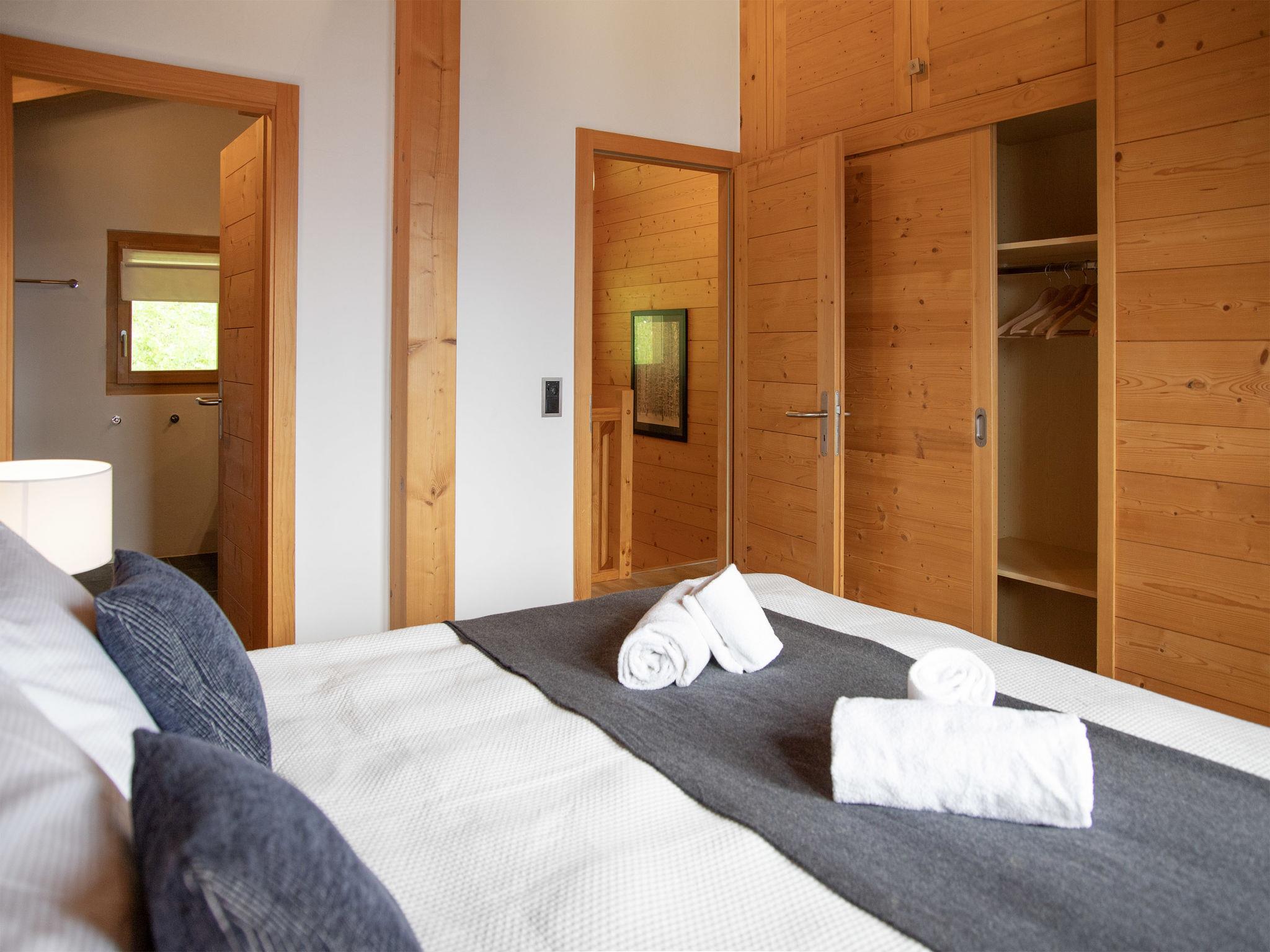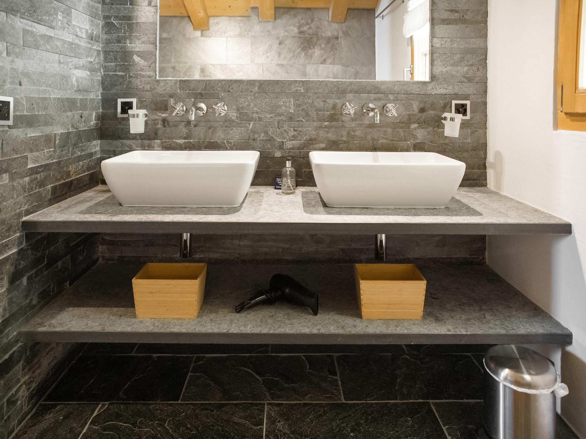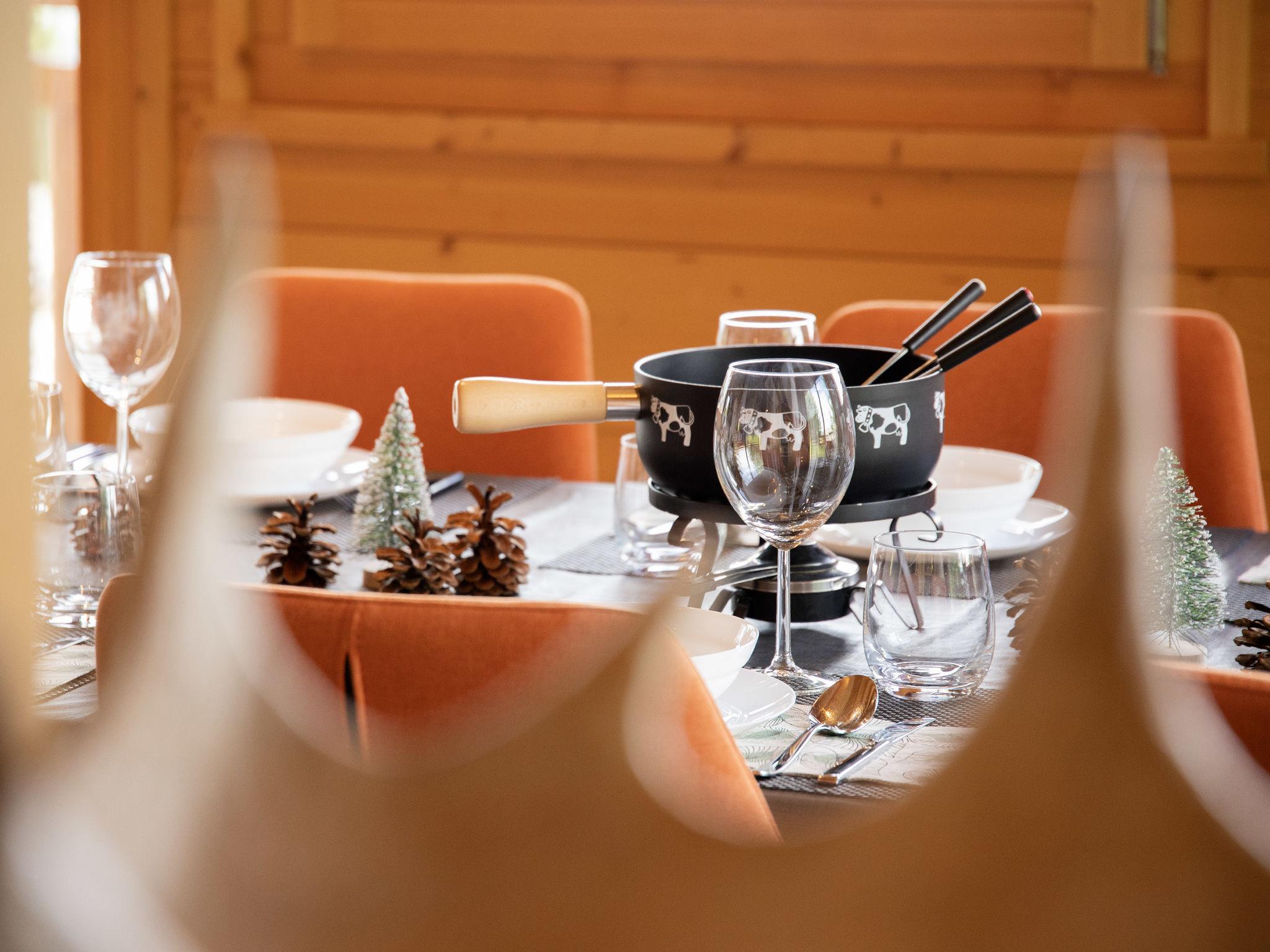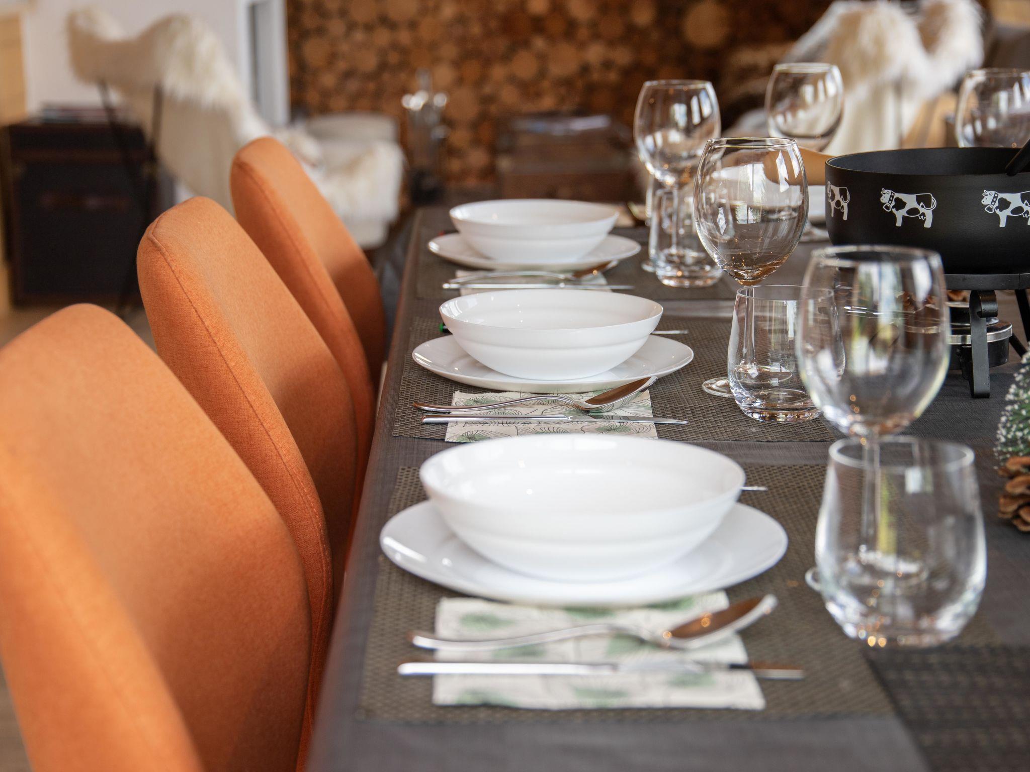 "Etoile", 6-room chalet 220 m2 on 3 levels. Spacious, comfortable and tasteful furnishings: living room with open-hearth fireplace and cable TV. Exit to the terrace, east facing position. Living/dining room with open-hearth fireplace and cable TV. Exit to the balcony, north facing position. Open kitchen (oven, dishwasher, 4 induction hot plates, toaster, kettle, microwave, electric coffee machine, Capsules for coffee machine (Nespresso) extra, raclette grill, fondue Set (chinoise, cheese)). On the lower ground floor: entrance hall. 2 rooms, each room with 2 beds (90 cm, length 200 cm), shower/WC. Sep. WC. Underfloor heating. Upper floor: 2 rooms, each room with 1 double bed (2 x 90 cm, length 200 cm), bath/shower/WC and double hand-basin. Exit to the balcony, north facing position. Balcony, terrace. Terrace furniture, barbecue. Marvellous panoramic view of the mountains. Facilities: washing machine, dryer, iron, hair dryer. Internet (WiFi, free). Parking (2 cars), in winter at 500 m. Please note: non-smokers only.