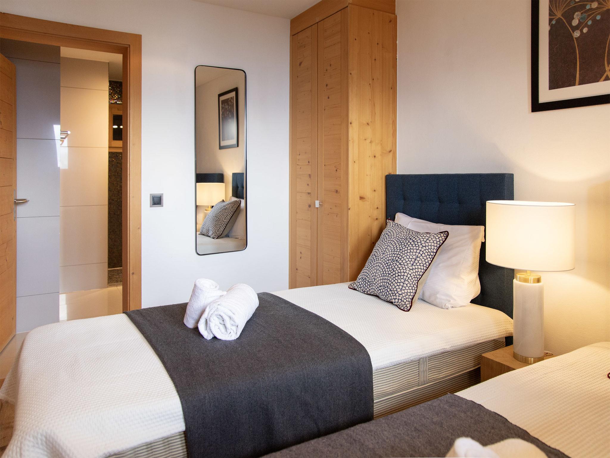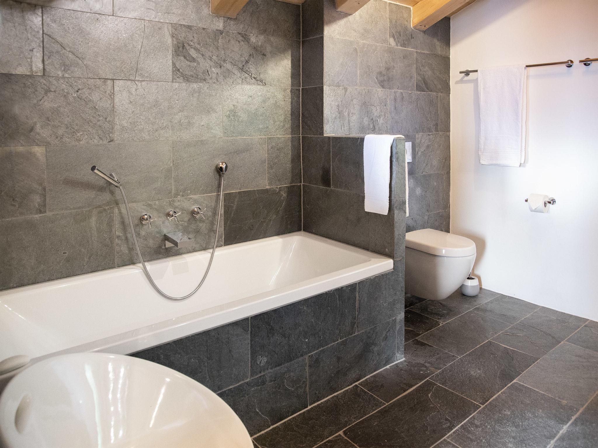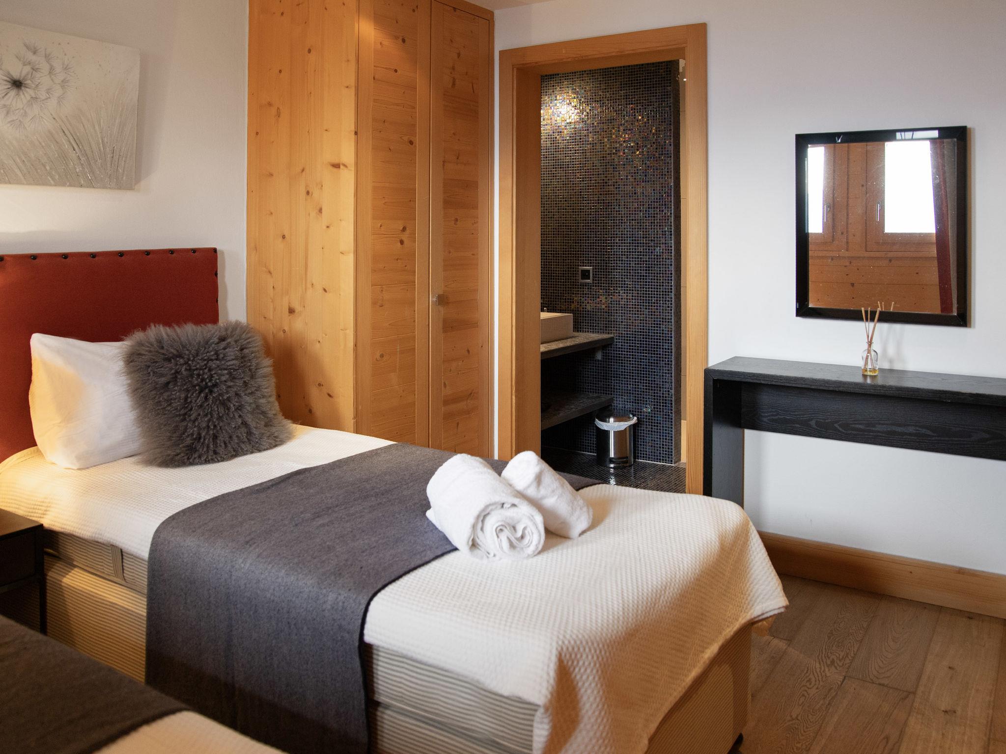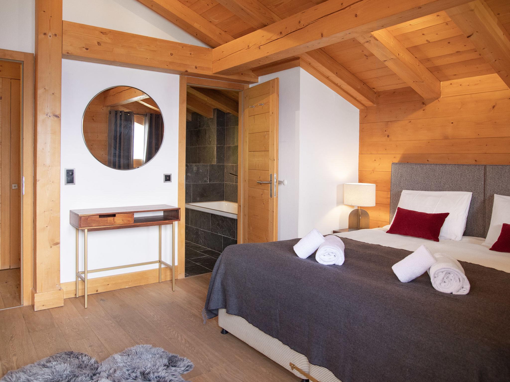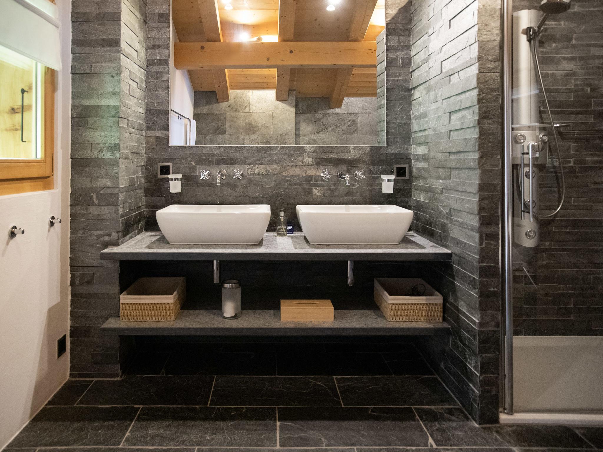"Etoile", 6-room chalet 220 m2 on 3 levels. Spacious, comfortable and tasteful furnishings: living room with open-hearth fireplace and cable TV. Exit to the terrace, east facing position. Living/dining room with open-hearth fireplace and cable TV. Exit to the balcony, north facing position. Open kitchen (oven, dishwasher, 4 induction hot plates, toaster, kettle, microwave, electric coffee machine, Capsules for coffee machine (Nespresso) extra, raclette grill, fondue Set (chinoise, cheese)). On the lower ground floor: entrance hall. 2 rooms, each room with 2 beds (90 cm, length 200 cm), shower/WC. Sep. WC. Underfloor heating. Upper floor: 2 rooms, each room with 1 double bed (2 x 90 cm, length 200 cm), bath/shower/WC and double hand-basin. Exit to the balcony, north facing position. Balcony, terrace. Terrace furniture, barbecue. Marvellous panoramic view of the mountains. Facilities: washing machine, dryer, iron, hair dryer. Internet (WiFi, free). Parking (2 cars), in winter at 500 m. Please note: non-smokers only.