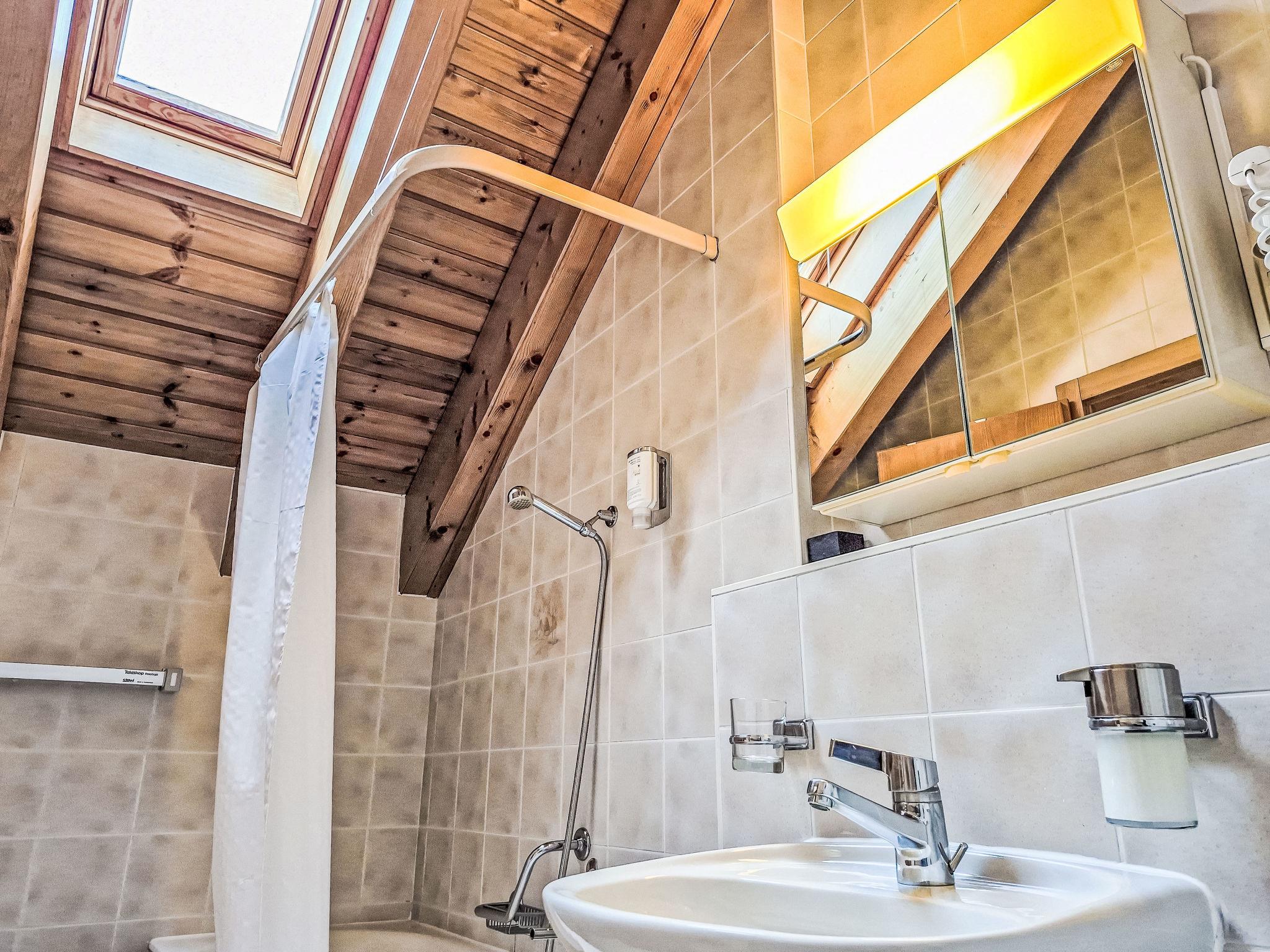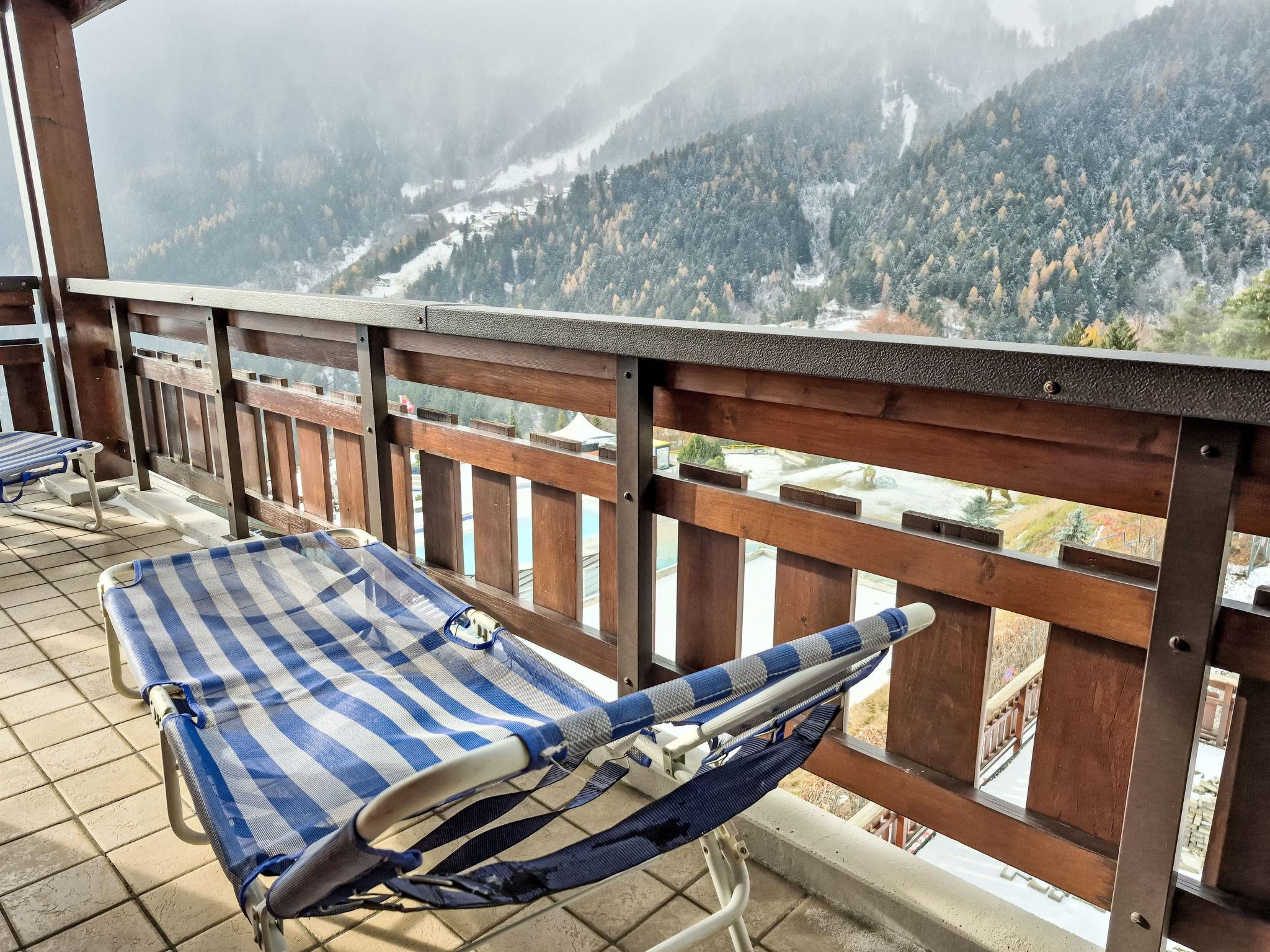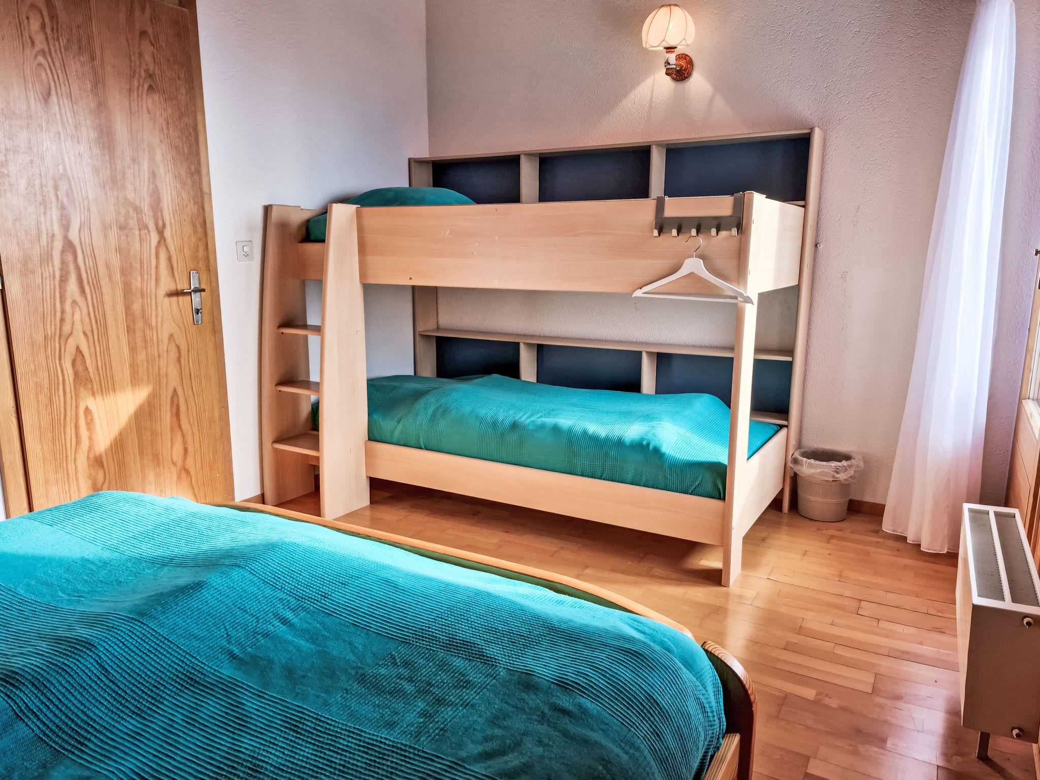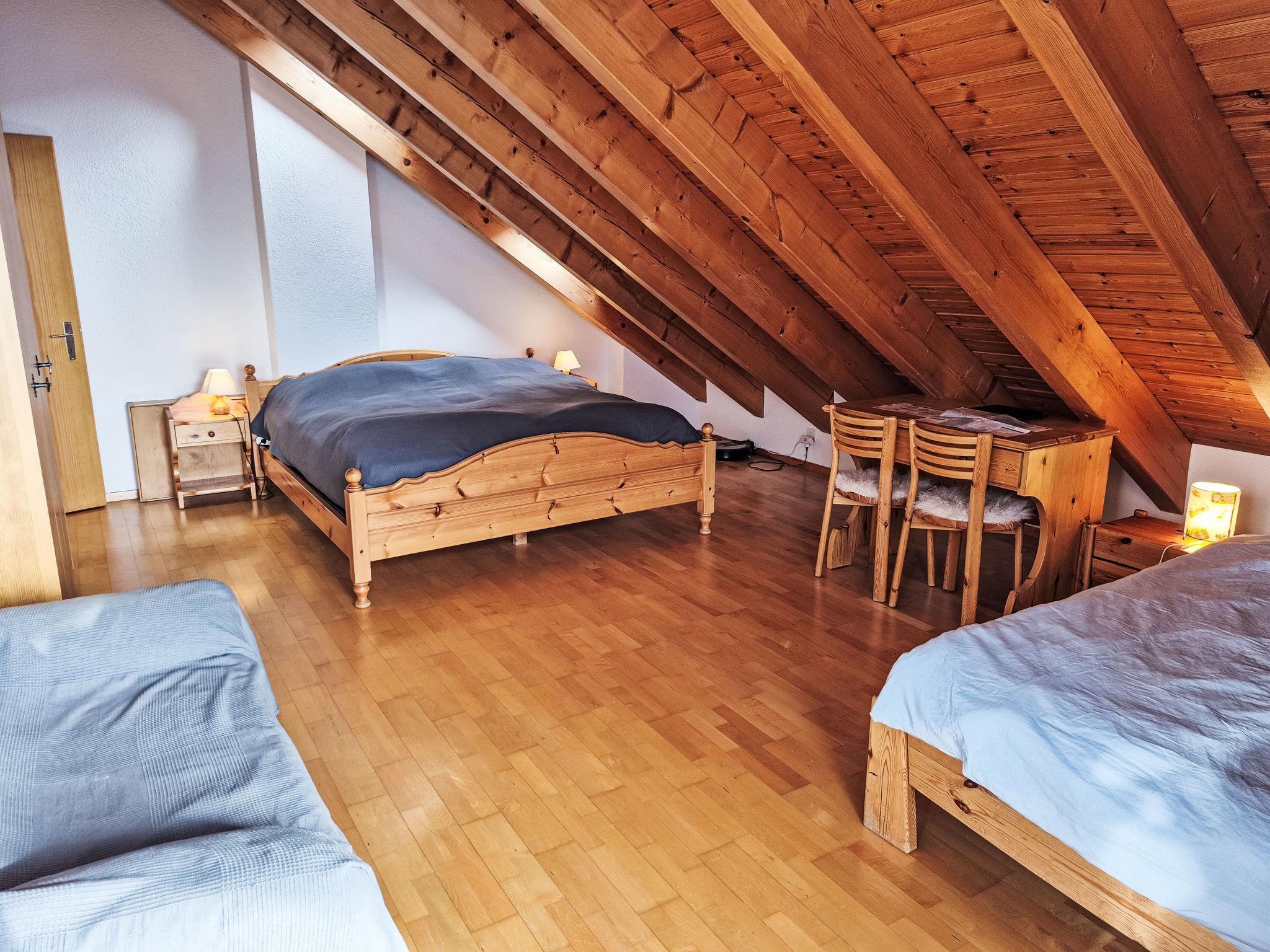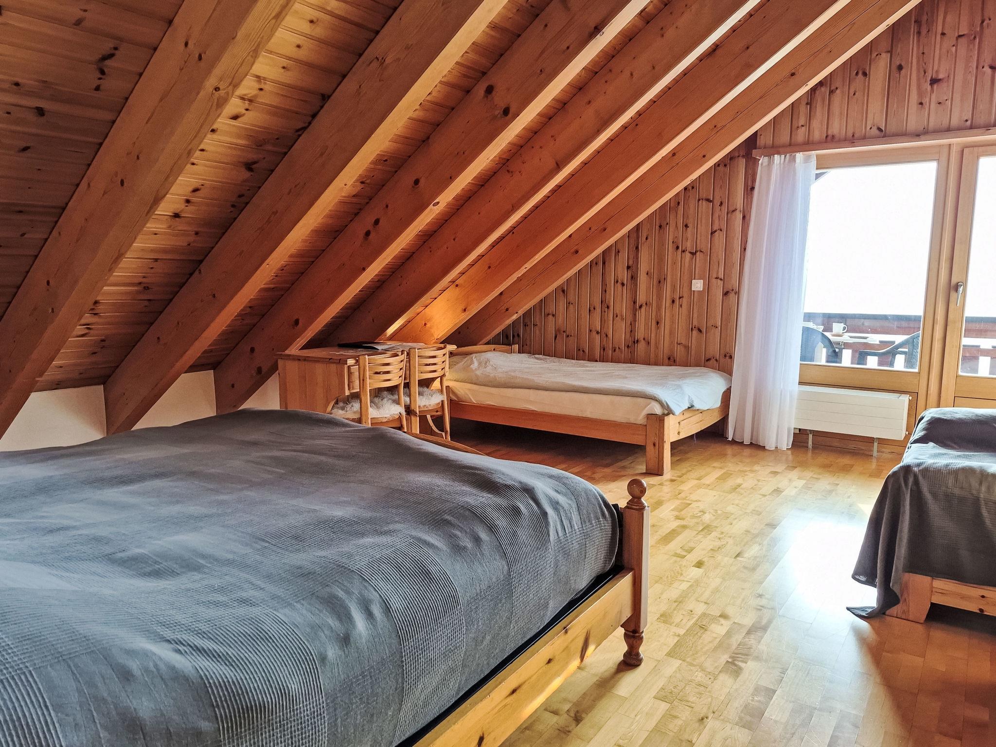 "Les Thermalies 202", 3-room apartment 79 m2 on 2 levels on 2nd floor, south facing position. Bright, partly renovated in 2025, comfortable and tasteful furnishings: living/dining room with cable TV. Exit to the balcony. Open kitchen (oven, dishwasher, 4 ceramic glass hob hotplates, toaster, kettle, electric coffee machine, Capsules for coffee machine (Nespresso) extra, raclette grill, fondue Set (chinoise, cheese)). Sep. WC. Upper floor: 1 large room with sloping ceilings with 1 french bed (180 cm, length 200 cm). Exit to the balcony. 1 room with sloping ceilings with 1 x 2 bunk beds (90 cm, length 200 cm), 1 french bed (160 cm, length 200 cm). Exit to the balcony. Bath/WC. 2 balconies 15 m2, south-west facing position. Balcony furniture, deck chairs (6), sitting area. Marvellous view of the mountains, the swimming pool and the forest. Facilities: iron, children's high chair, baby cot, hair dryer. Internet (WiFi, free). Garage space n 202 (1 car), height 215 cm, width 250 cm. Please note: suitable for families. Fridge without freezer, non-smokers only.