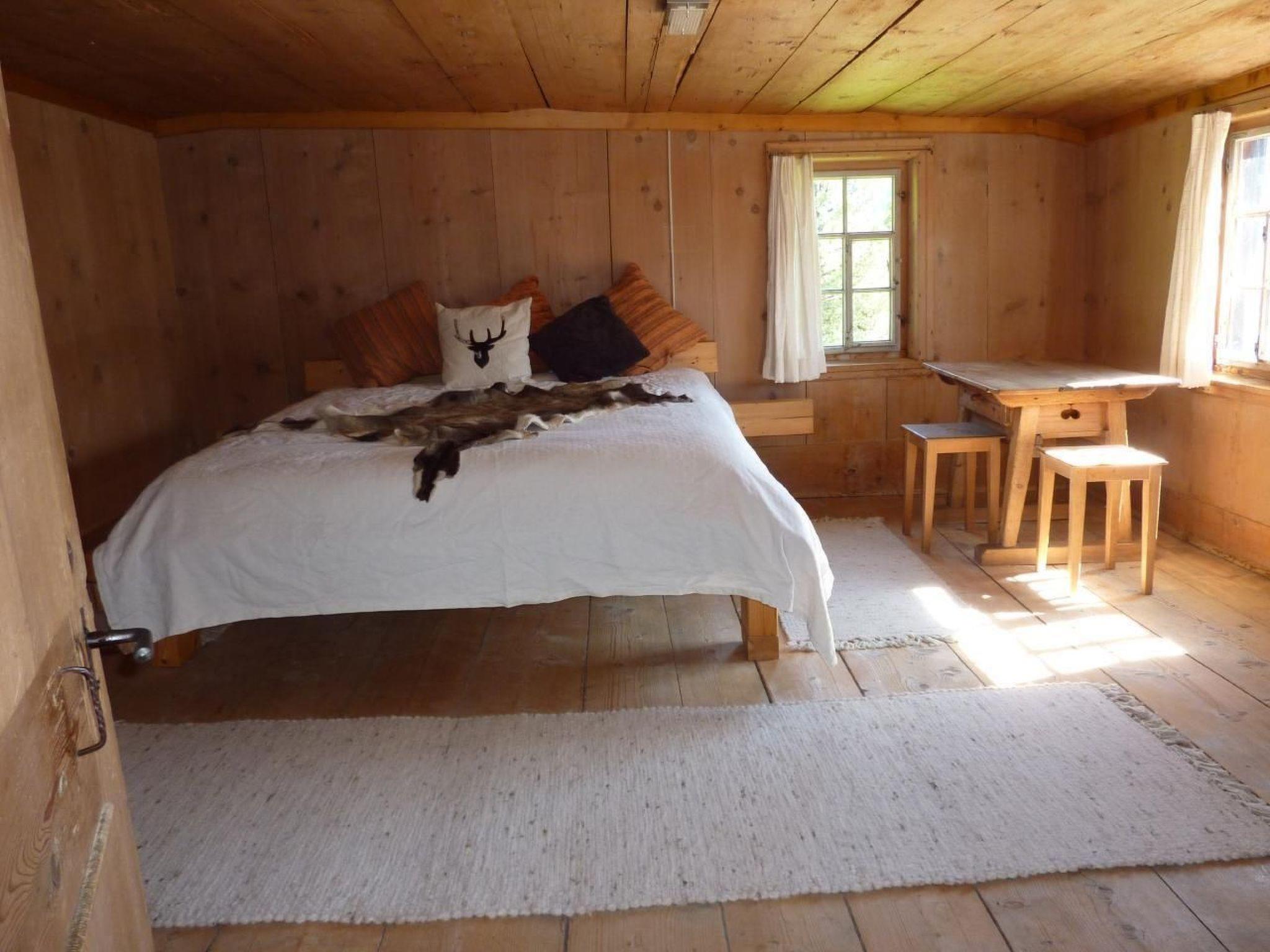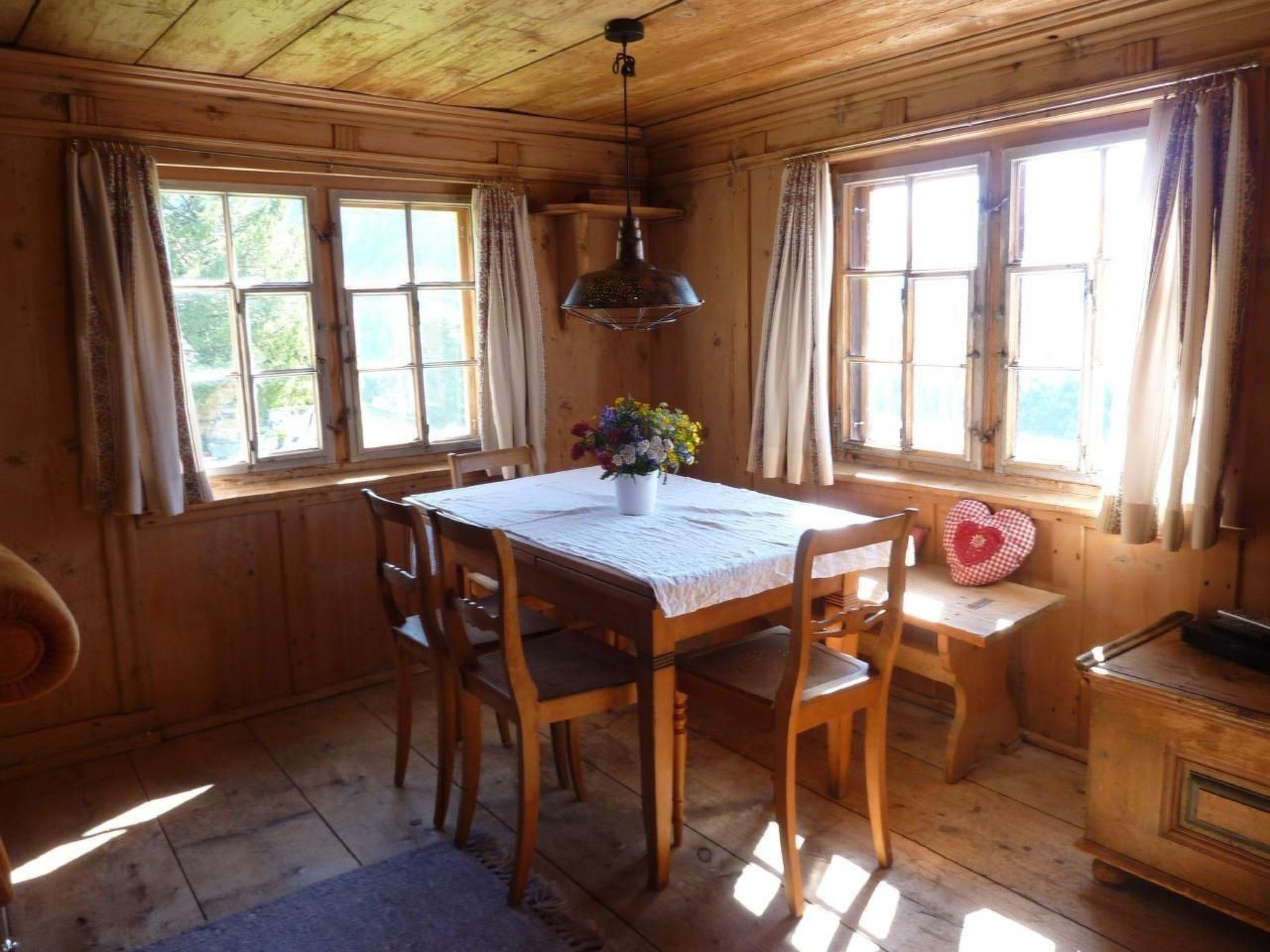 We rent out a historic farmhouse from the 16th century in a sunny, quiet location with a marvellous view over the Prättigau. The house was formerly used as a farmhouse, it has been partially renovated and much is still in its original state. After a day's skiing or a long hike, you can warm up in the cosy parlour by the green tiled stove on the stove bench. (Electric stoves are also available). Next door there is an adjoining room where you can retreat. The staircase leading upstairs and the upper corridor are also particularly rustic. The large bedroom exudes a special charm, making you feel like you've been transported back in time. The special thing about the building is that it was built around a rock, which is visible in the entrance area, in the kitchen, in the bathroom and on the outside wall. There is a spacious cellar in the basement. Outside, the covered terrace invites you to linger. There is also a spacious lawn at your disposal. The old Gonda also has a stable, which is inhabited by sheep, cats and rabbits. The swimming pool, ski lift and grocery shop are all within a 15-minute walk.