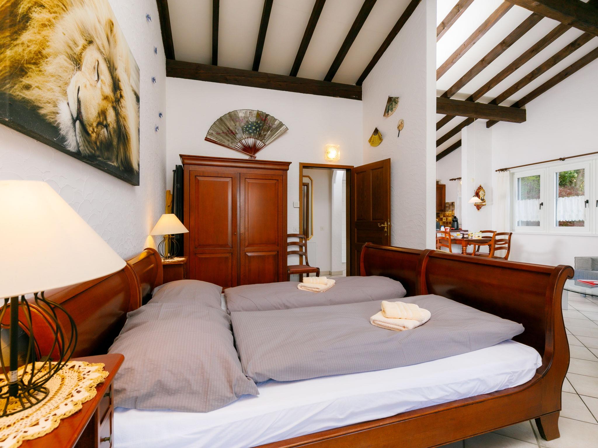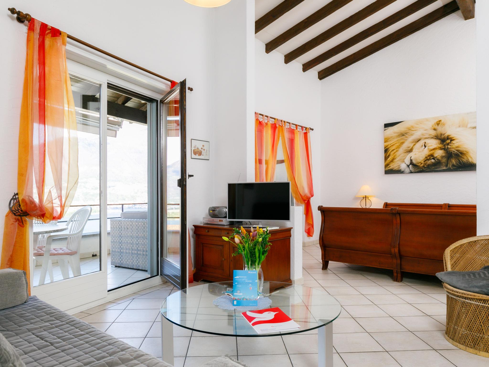 "Residenza Miralago Apt. A8", 1-room apartment 68 m2 on 1st floor. Living/dining room with TV and radio. Alcove with 2 beds. Kitchenette (oven, 4 ceramic glass hob hotplates, electric coffee machine, Capsules for coffee machine (Dolce Gusto (Coop)) extra). Bath/WC. Balcony. Terrace furniture. View of the lake. Maximum 1 pet/ dog allowed. Instead of an enclosed bedroom, some sleeping areas are located in an open-plan area (gallery, alcove, etc.). NL-00003543