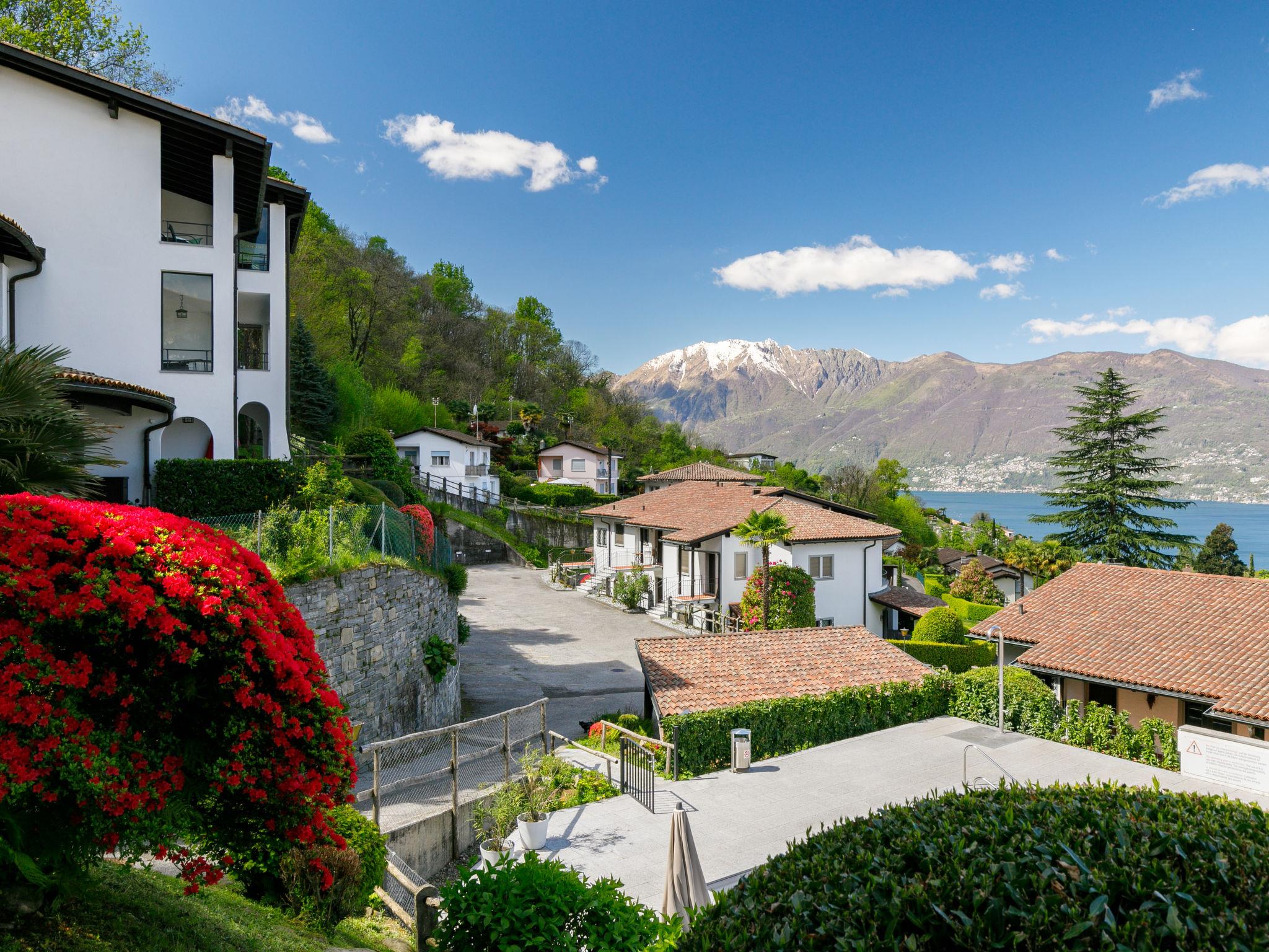Piazzogna 19 km from Ascona: Modern, comfortable residence "Miralago", surrounded by trees and meadows. 4 houses in the residence. 39 apartments in the residence. Above Vira (3 km), in the district Gambarogno, in a quiet, sunny, elevated position on a slope, along the wooded area, 3 km from the lake, in a cul-de-sac, south-east facing position. For shared use: lawn for sunbathing, swimming pool angular heated (depth 170 - 170 cm, seasonal availability: 15.Apr. - 15.Oct.) with internal staircase and shutter cover. Outdoor shower, terrace, garden furniture. In the complex: reception, lounge, central heating system, washing machine (for shared use, extra). Motor access to the house the grounds. Parking. Grocery, restaurant 300 m, bus stop 50 m. Minigolf 4.5 km, walking paths from the house 100 m. Nearby attractions: Parco Botanico, Piazzogna 300 m, Mercato Luino IT, Mercato Ponte Tresa IT, Bellinzona Unesco-Mercato, Swissminiature, Melide, Schokomuseum, Caslano. Well-known lakes can easily be reached: Lago Maggiore, Lago di Lugano, Lago di Como, Lago Orta. Hiking paths: Gambarogno, Indemini, Monte Tamaro und Splash and SPA, Rivera, Locarno - Ascona Cardada. The 4 typical Ticino houses offer a magnificent panoramic view of the lake. 1 parking space per apartment is included in the price, each additional space is CHF 35/week.