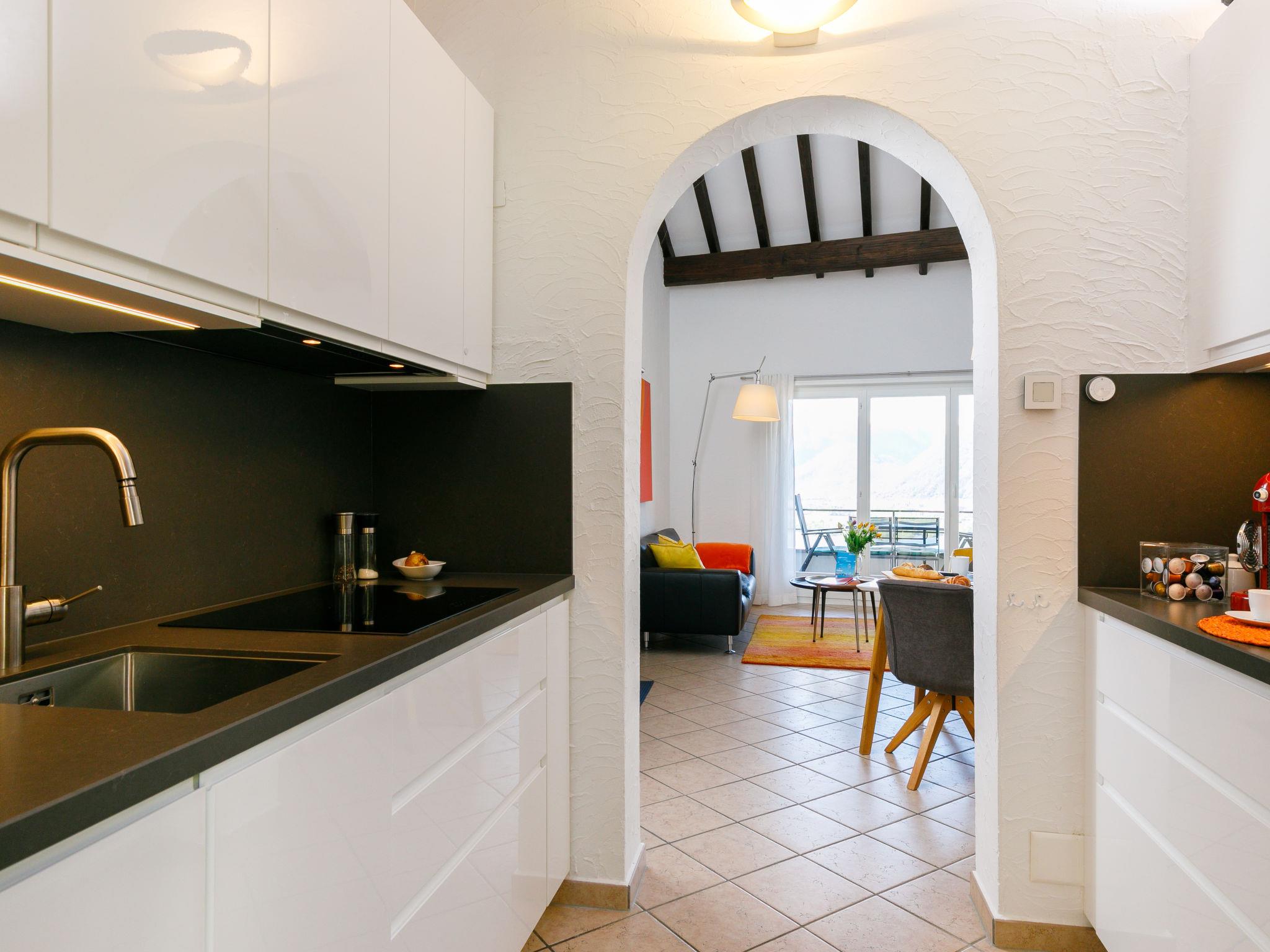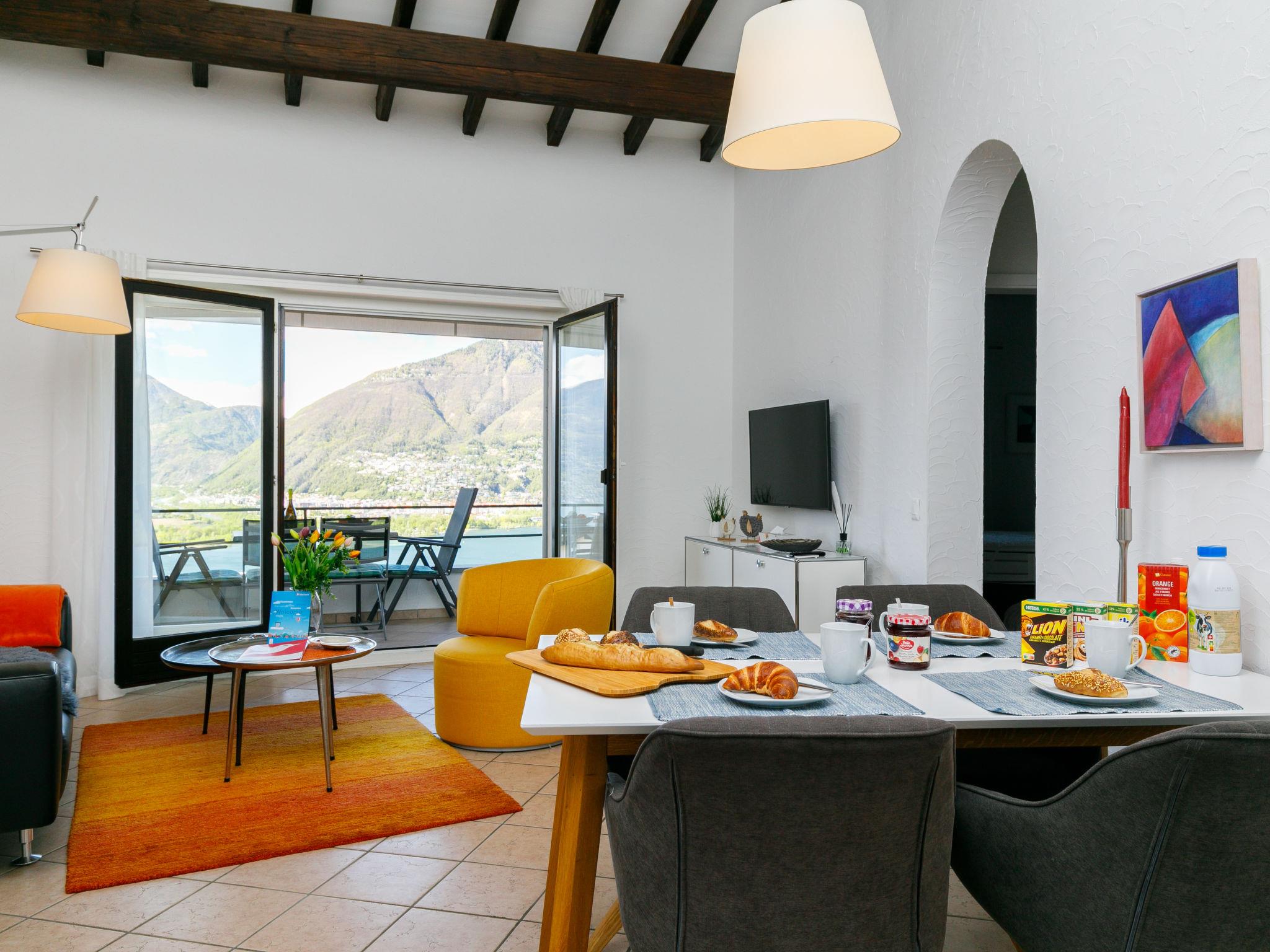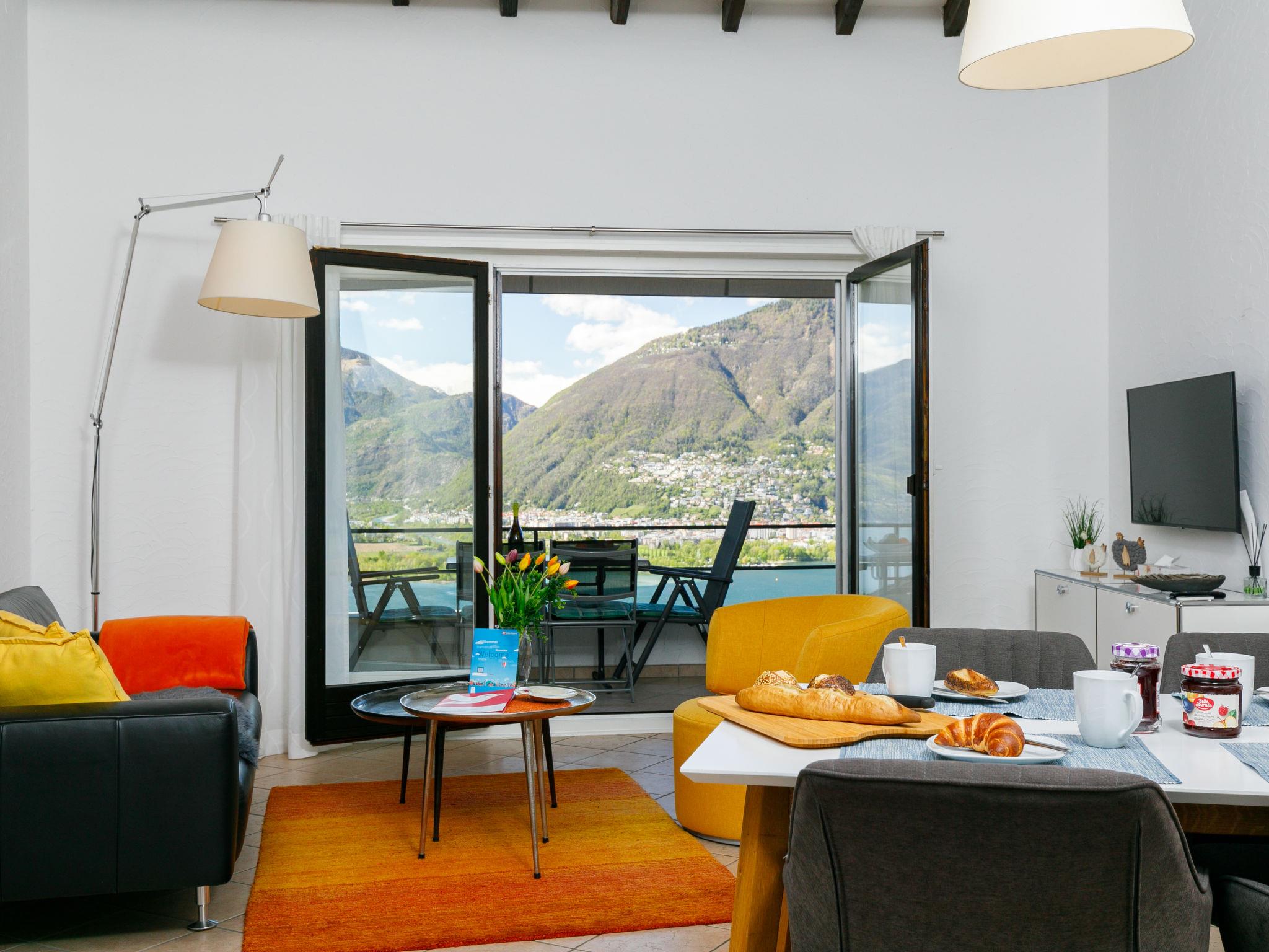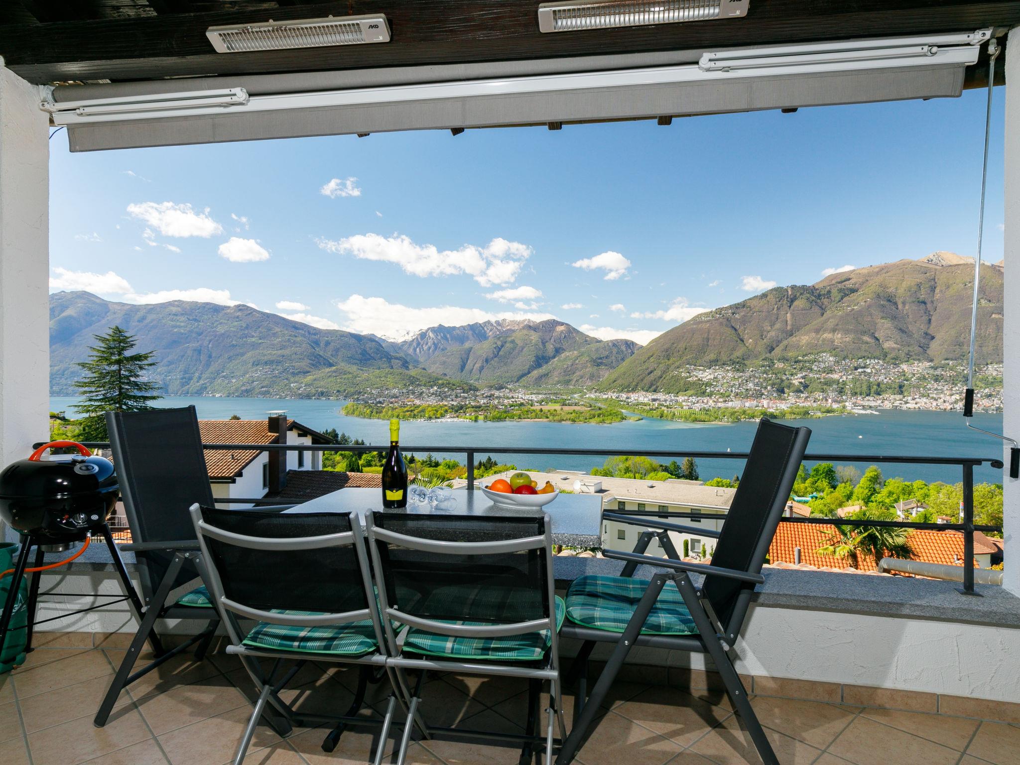 "Residenza Miralago Apt. A5", 3-room apartment 66 m2 on 1st floor, south facing position. Object suitable for 2 adults + 1 child. Spacious and bright, fully renovated in 2019, tasteful and cosy furnishings: open living/dining room with dining table and satellite TV (flat screen), radio and CD-player. Exit to the balcony. 1 double bedroom with 1 double bed (160 cm, length 200 cm). Exit to the balcony. 1 children's room with 1 bed (90 cm, length 200 cm). Open kitchen in the entrance (oven, dishwasher, 4 induction hot plates, electric coffee machine, Capsules for coffee machine (Nespresso) extra). Shower/WC. Heating. Balcony. Balcony furniture. Marvellous panoramic view of the lake, the mountains and the countryside. Please note: non-smokers only. NL-00003540