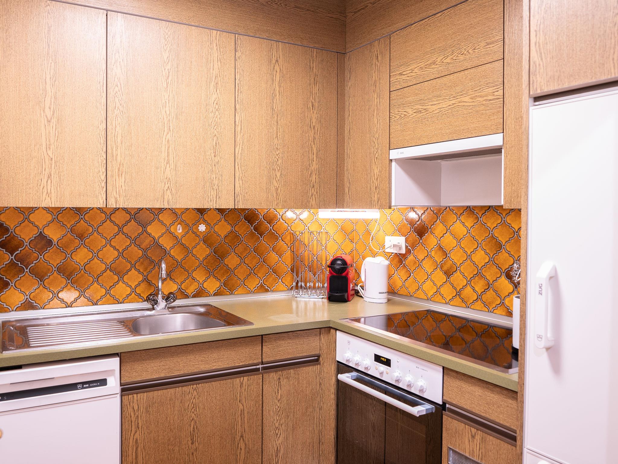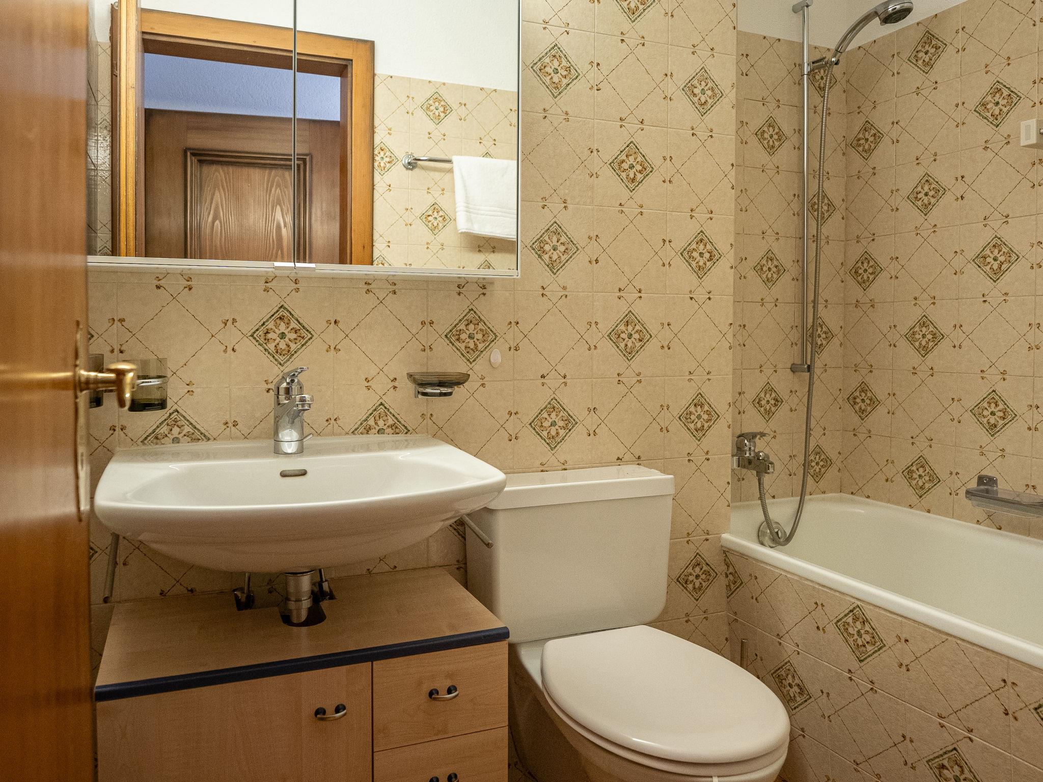 "Chesa Palüdin 10 - Pontresina", 2-room apartment 50 m2 on 1st floor. Bright, partly renovated in 2023, simple and cosy furnishings: 1 double bedroom with 1 double bed (1 x 160 cm, length 200 cm). Open living/dining room with 1 sofabed (160 cm, length 200 cm), open-hearth fireplace, dining table, TV and flat screen. Exit to the balcony. Small kitchen (oven, dishwasher, 4 ceramic glass hob hotplates, toaster, kettle, electric coffee machine, Capsules for coffee machine (Nespresso) extra, raclette grill, fondue Set (chinoise, cheese)). Bath/WC. Heating. Small balcony. Balcony furniture. Beautiful view of the mountains and the countryside. Facilities: hair dryer. Internet (WiFi, free). Garage space n 10 (parking lift) on the property (1 car), height 205 cm, width 190 cm. Please note: non-smokers only, non-smoking house. No lift. Garage lift with limited width and length - larger vehicles must be parked in a paid public car park on site. From July 2026, the apartment will be completely renovated (kitchen, bathroom, floors, etc.).