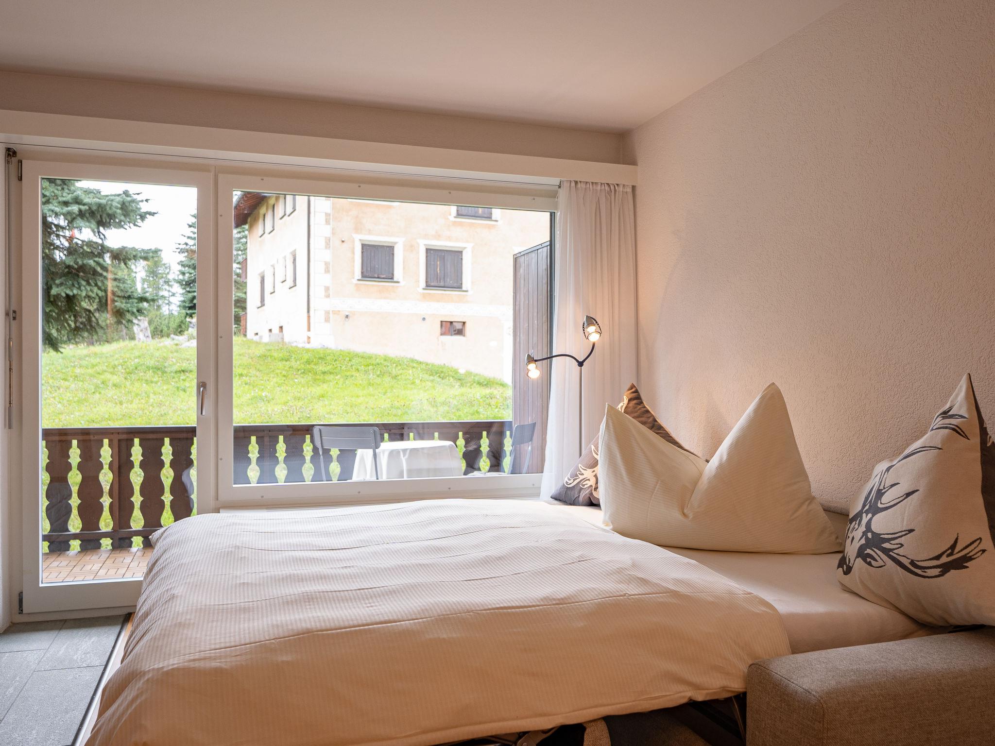 Pontresina 7 km from St. Moritz: Apartment house "Chesa Palüdin - Pontresina", 3 storeys, detached, surrounded by meadows. On the outskirts, 2 km from the centre of Pontresina, in the district Muragl, in a sunny position in the residential district. For shared use: garden (not fenced). In the house: storage room for bicycles, storage room for skis, washing machine, tumble dryer (for shared use, extra). 4x4 car recommended in winter. Communal covered parking. Shop 1 km, supermarket 1.8 km, restaurant 1 km, bakery 1 km, café 1.8 km, bus stop 500 m. Surf school 15 km, tennis 1.1 km, indoor tennis centre 7.4 km, minigolf 7.2 km, walking paths from the house 50 m, cycle lane 500 m, cable car 4.4 km, ski lift 2 km, ski rental 2.1 km, ski school 1.8 km, children's ski school 1.8 km, sled run 1.3 km, cross country ski track 500 m, ice rink 1 km, children's playground 1 km. Nearby attractions: Museum Alpin 1.9 km, Kirche St. Maria 2.6 km, Alp-Schaukäserei Morteratsch (Sommer) 8 km. Well-known ski regions can easily be reached: Corviglia Piz Nair 4.4 km, Diavolezza - Lagalb 14 km, Corvatsch - Furtschellas 13 km. Well-known lakes can easily be reached: St. Moritzer See 6 km, Silvaplana See 11.6 km, Silser See 15.5 km. Hiking paths: Stazerwald&Stazersee, Muottas Muragl, Val Roseg & Val Morteratsch. Please note: no lift. Additional accommodations can be booked. Neighbourhood highly sensitive to noise. Quietness and good behaviour expected.