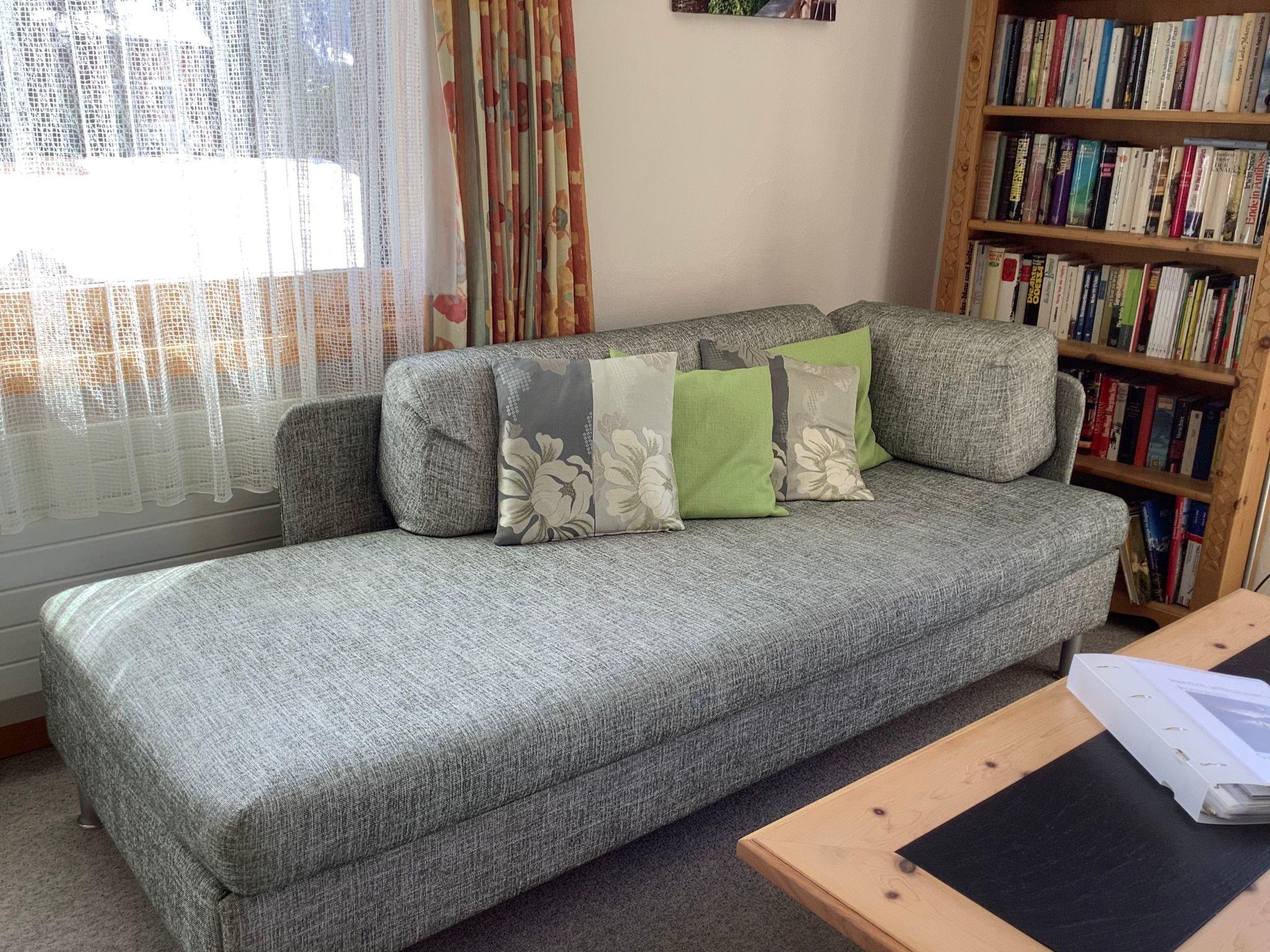 Inside, a comfortable living room with a sunny balcony awaits you, where you can enjoy relaxing hours outdoors with a view of the 180-degree mountain panorama. The flat has all modern amenities such as WLAN, TV and a separate kitchen equipped with a ceramic hob, dishwasher, large fridge, oven, microwave and a Nespresso coffee machine. You will also find a fondue set and a kettle. For a good night's sleep, the bedroom has a comfortable double bed.
