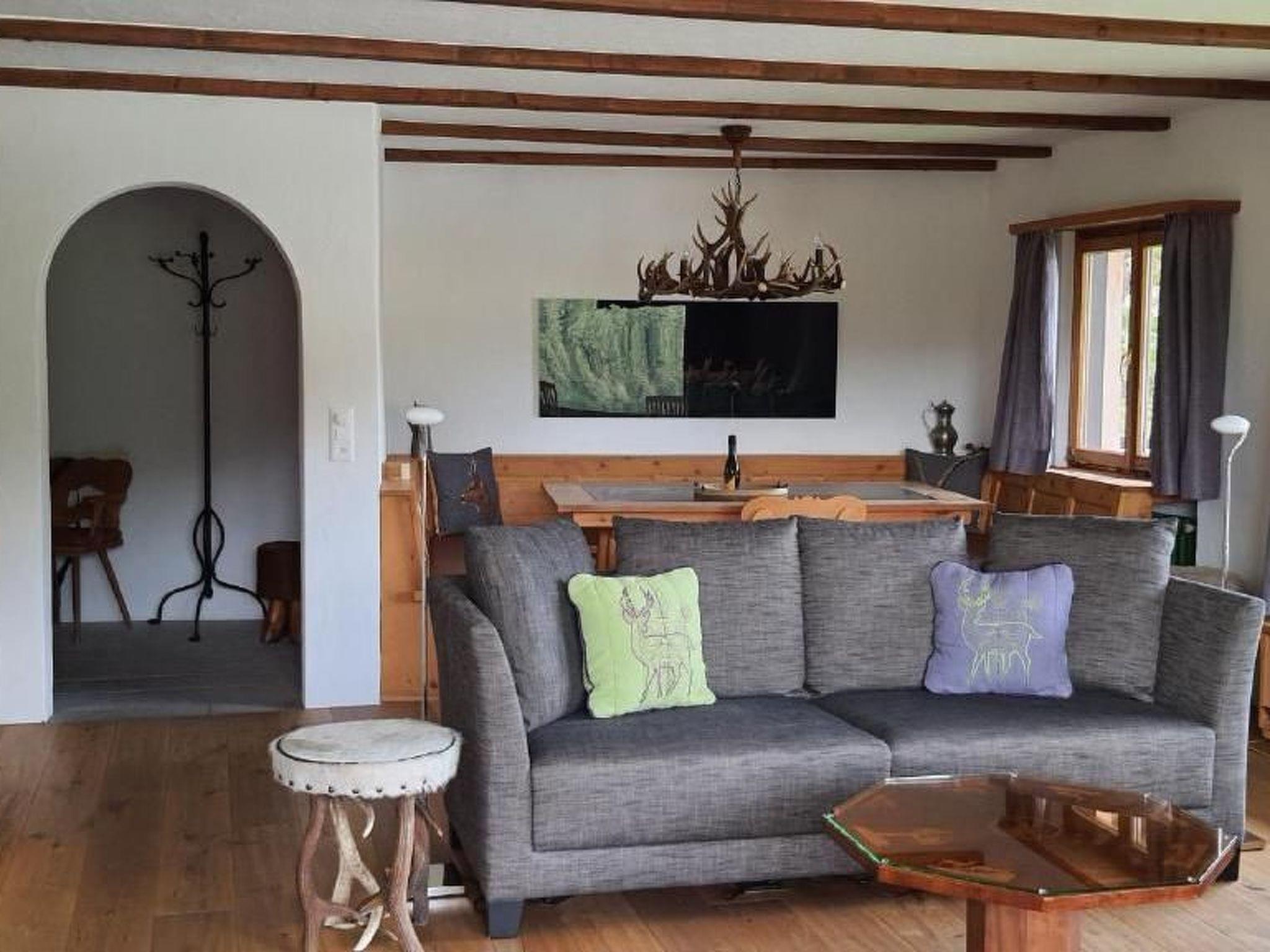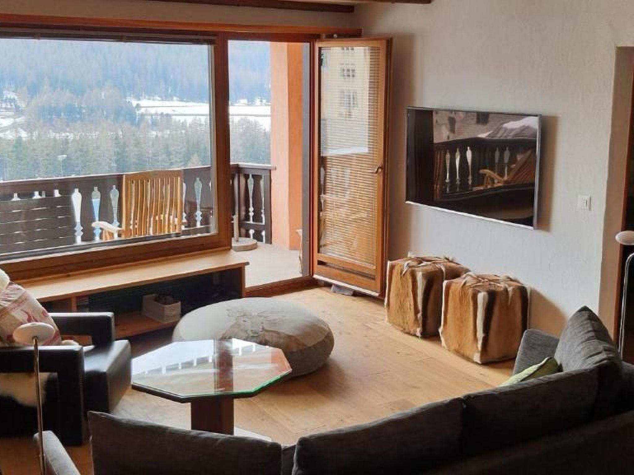 Other living room furnishings (living room 1): cosy Swiss stone pine dining table with corner bench on three sides, cosy couch corner with magnificent, unobstructed view of the mountains, access to the south-facing balcony