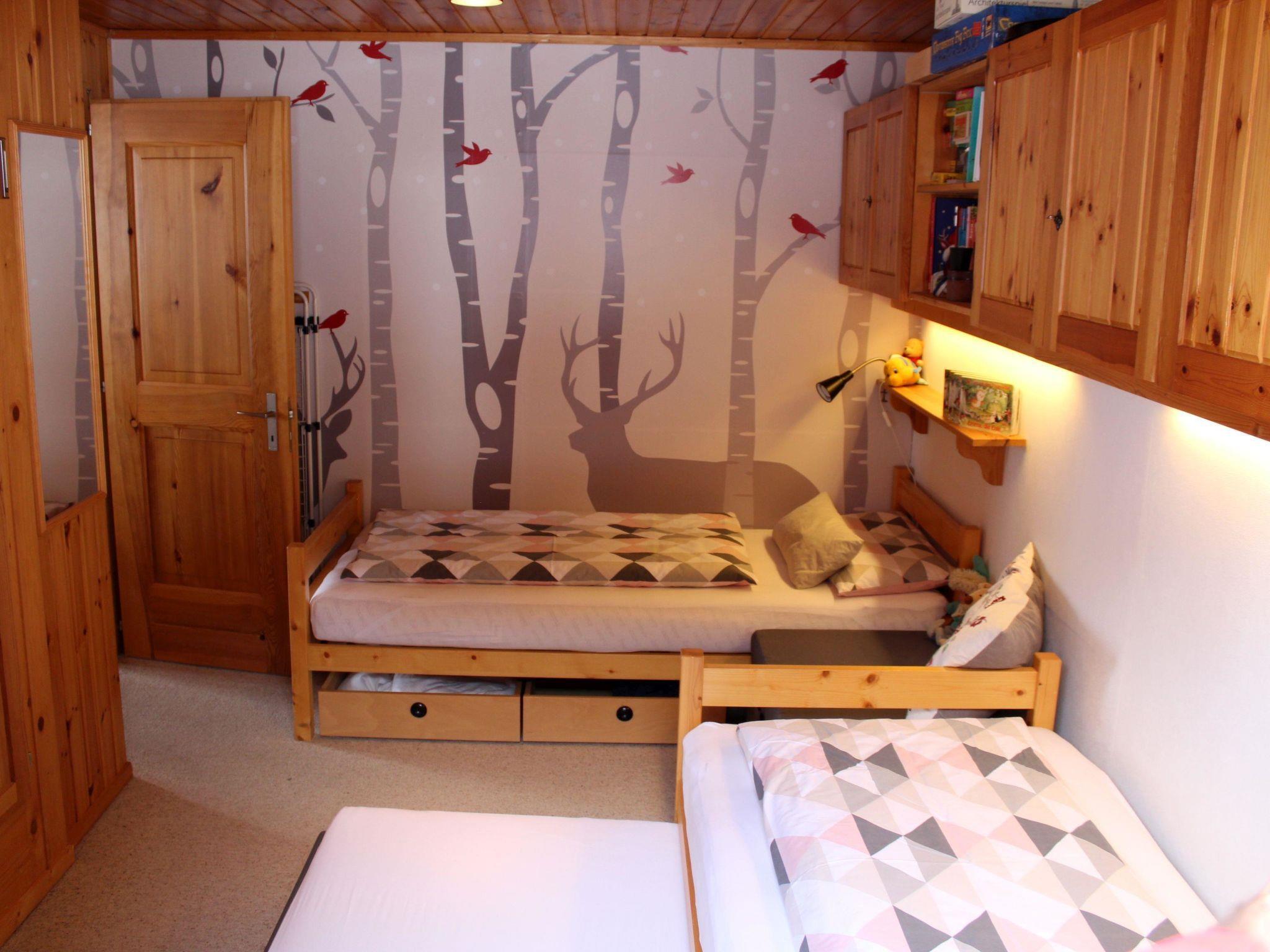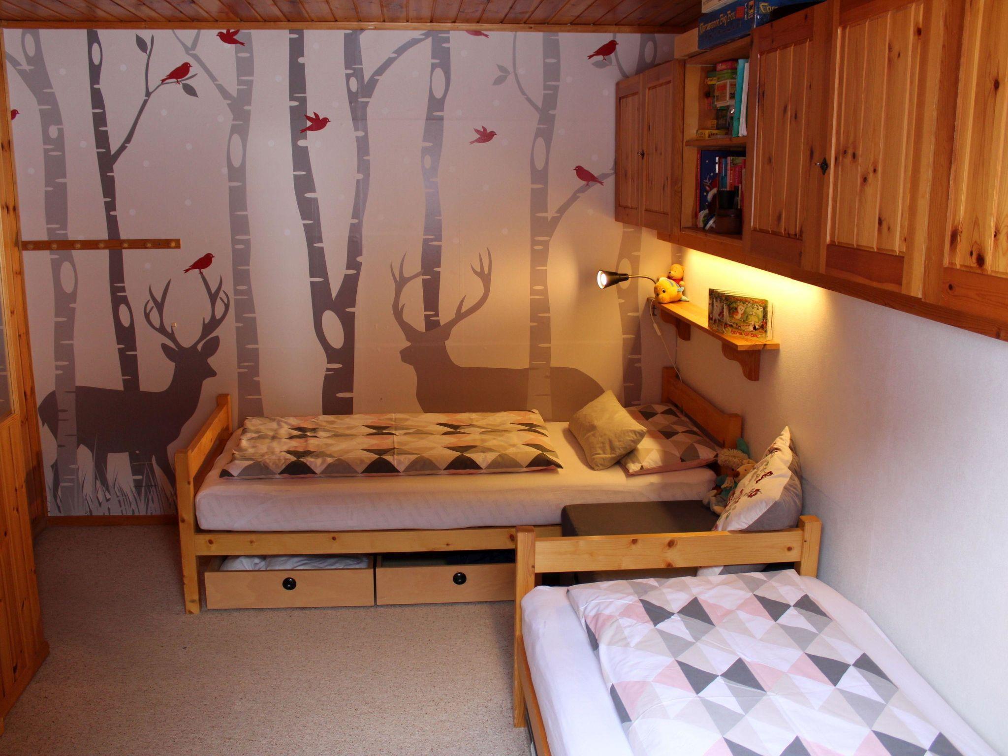 This ground-floor apartment has 3 and a half rooms with two bedrooms. One is equipped with three single beds, the other with a comfortable sofa bed. The living room with dining area and open-plan kitchen has a convivial feel. The bathroom has infrared ceiling heating. The apartment has a large, partially covered terrace with a solid wood table, adjoining a flat lawn for playing or relaxing. Three sledges are available, as well as a cellar for skis and bikes.