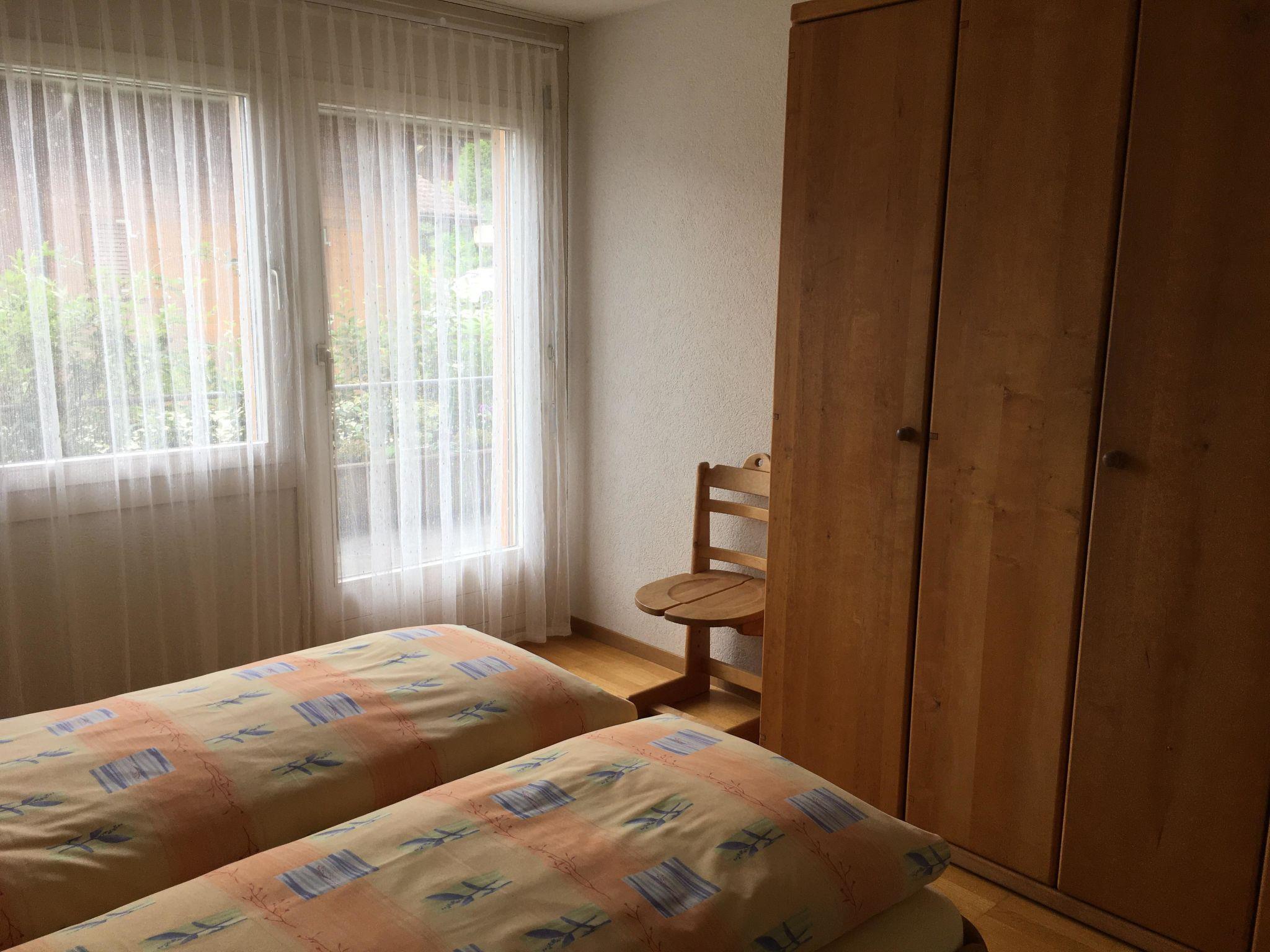 Apartment no. 1 Blumenweg 6 3852 Ringgenberg This apartment is situated in the Guesthouse with apartments no 1 - 4 at the Blumenweg 6 in Ringgenberg. 3½-room-apartment, 68m², 4-6 people (2 bedrooms, 1 bathroom) Living-/dining room with fireplace with wood burning stove, sofa, dining table with corner seat. Open kitchen with dishwasher. 1 bedroom with double bed, 1 bedroom with 2 bunk beds for 4 people. 1 bathroom with shower/toilet/double sink. Balcony 35m2 with beautiful view.