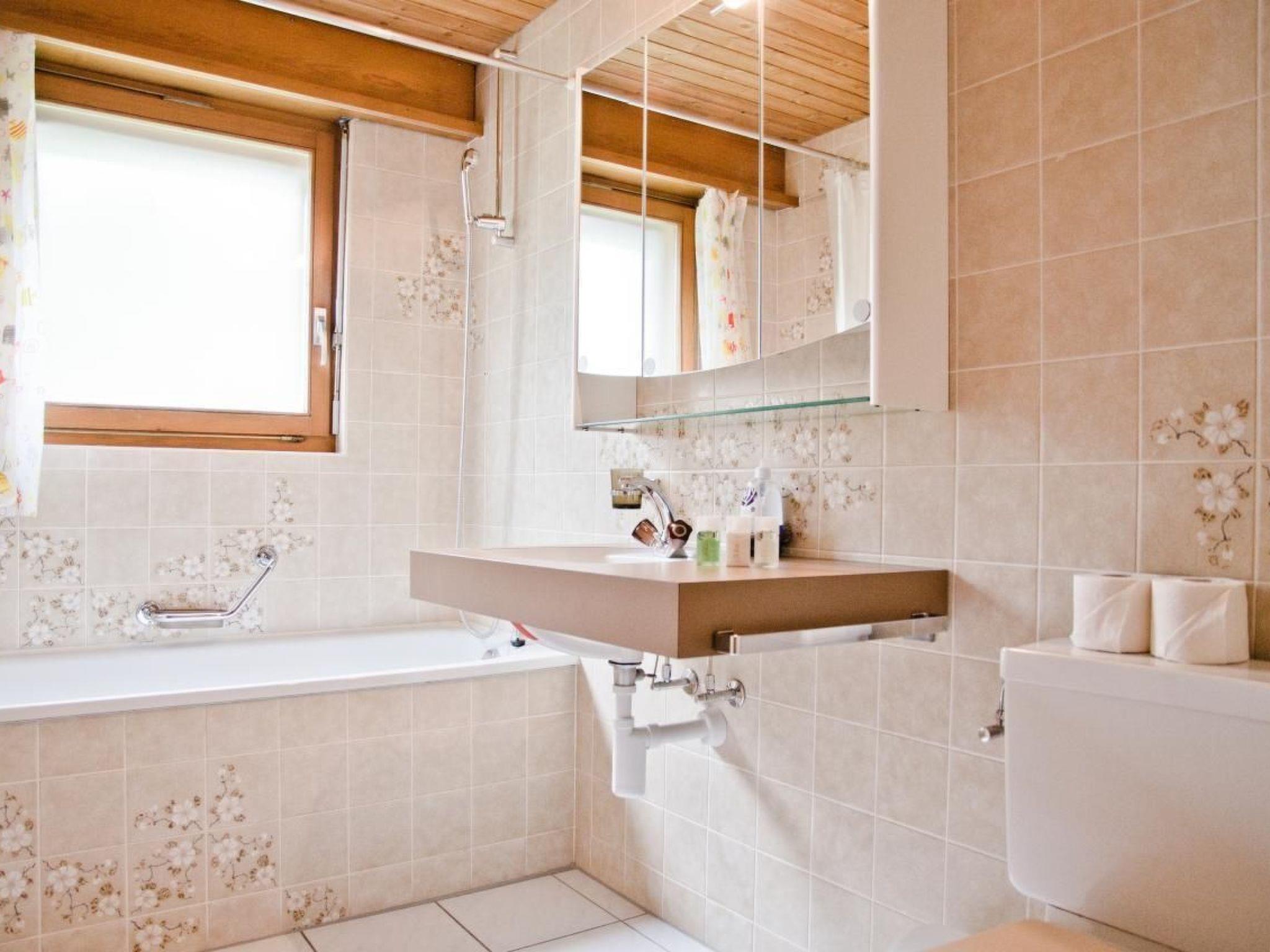 The cosy 88m2 3.5-room apartment has one bedroom with double bed, one bedroom with two single beds and a bathroom with bath and toilet. The kitchen is well-equipped and opens onto a bright dining/living area. From the balcony you have a great view above Interlaken and the surrounding mountains. The apartment is located on the 1st floor of the building.