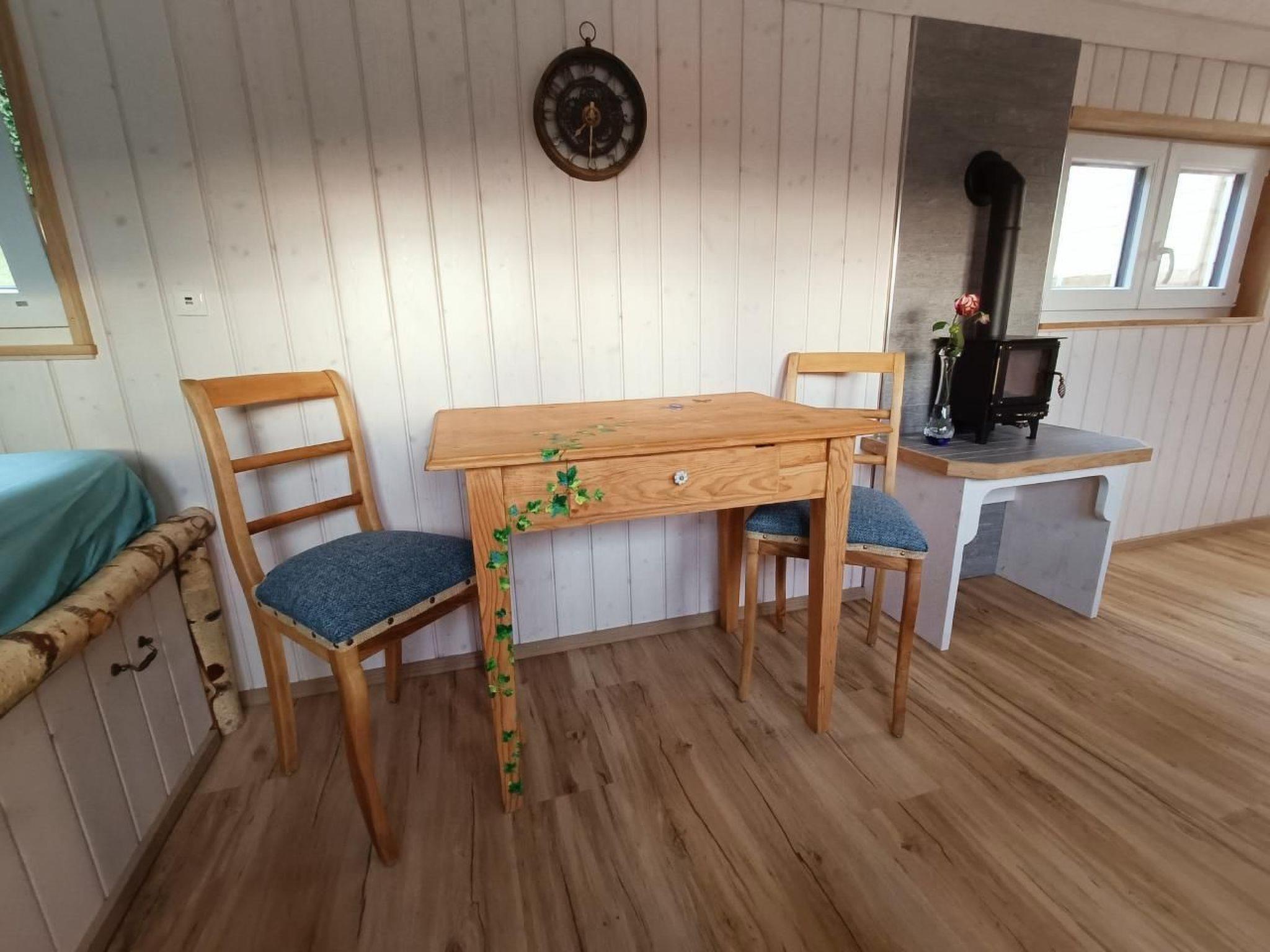 Inside, the mobile home impresses with practical amenities that will make your stay comfortable. It has a cosy bedroom where you can relax after an eventful day. The existing dry separation toilet provides additional comfort and is a sustainable solution. To prepare simple meals, you will find a camping gas cooker in the outdoor area as well as the option to light a campfire. If you want to explore the local cuisine, there are several restaurants in the surrounding area to enjoy.
