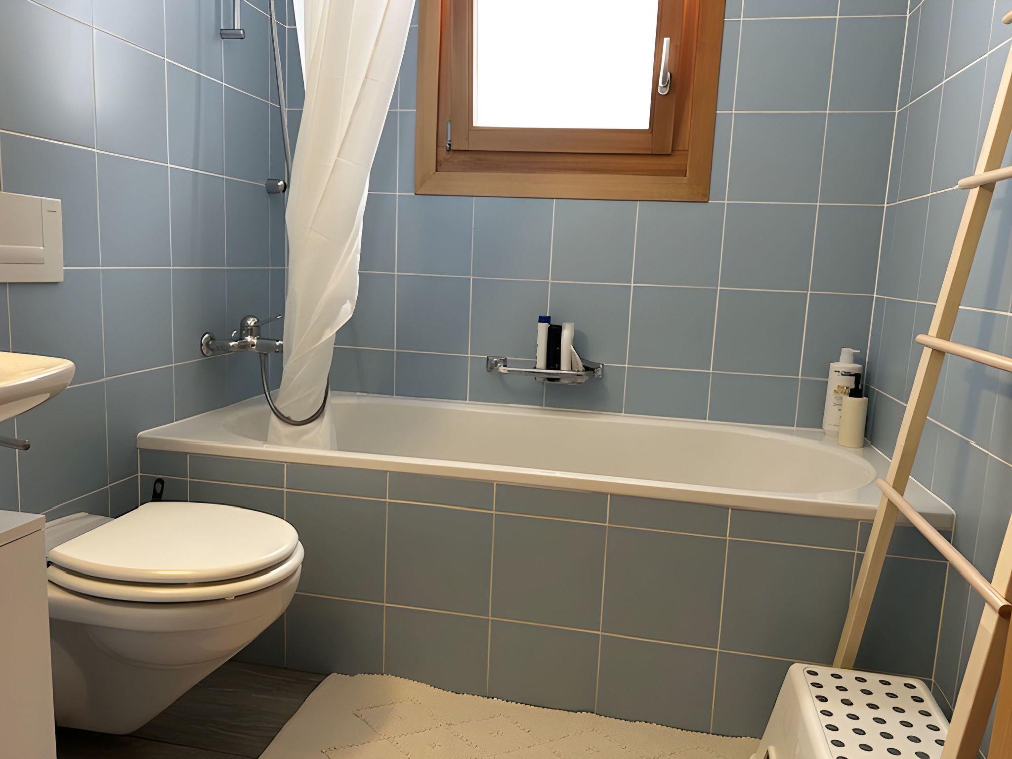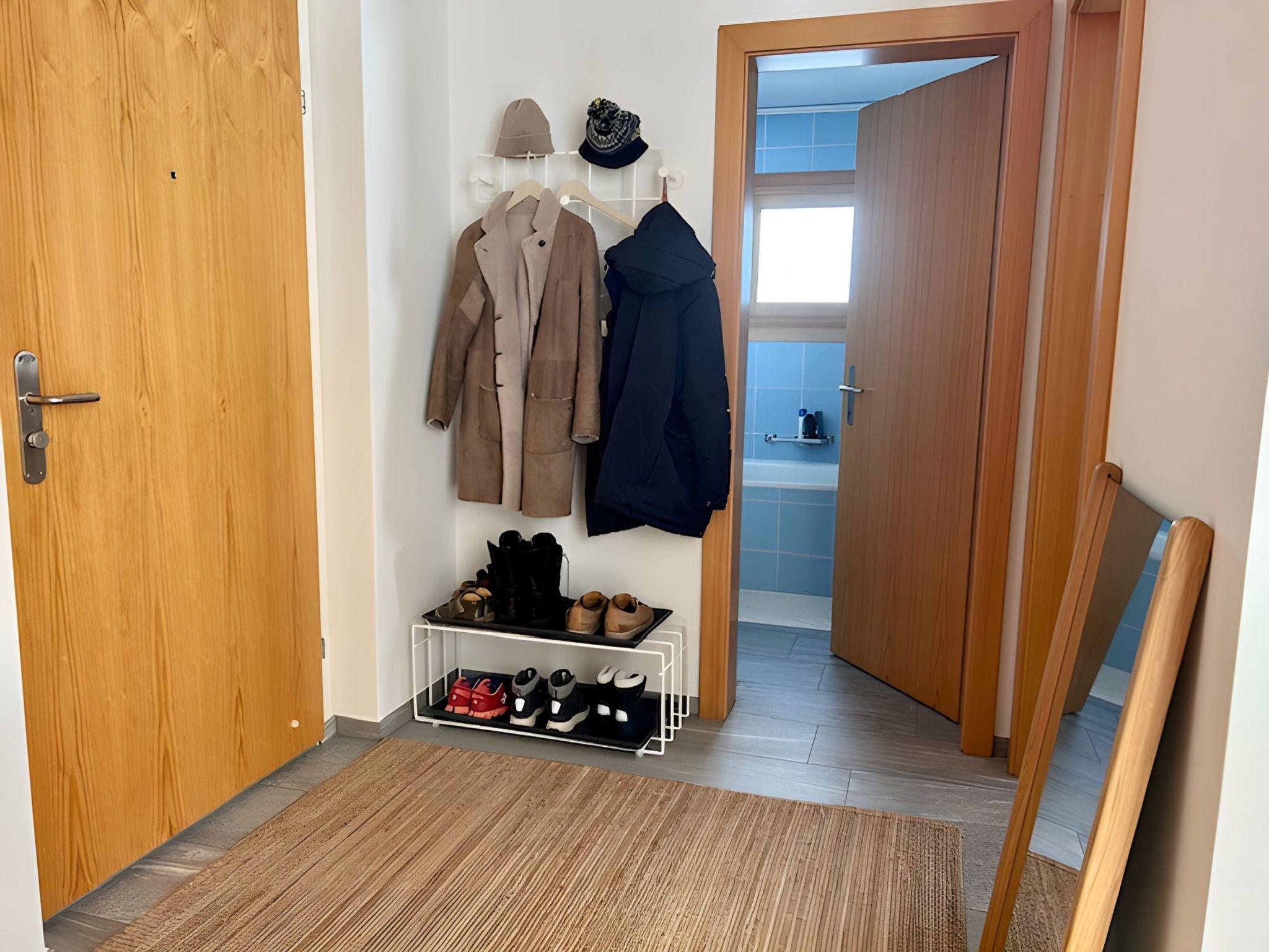 The interior includes a spacious living room with an open-plan, fully equipped kitchen, ideal for a family of four. The sofa doubles as a sofa bed. A 43" TV and Netflix streaming service are available for your entertainment, complemented by a small active speaker for musical accompaniment. The bedroom has a double bed, an extendable children's/teenager's bed and plenty of storage space. Our bathroom, functionally furnished with standard cleanliness, and a work area with a height-adjustable table and comprehensive technical equipment complete the interior design of our cosy flat.