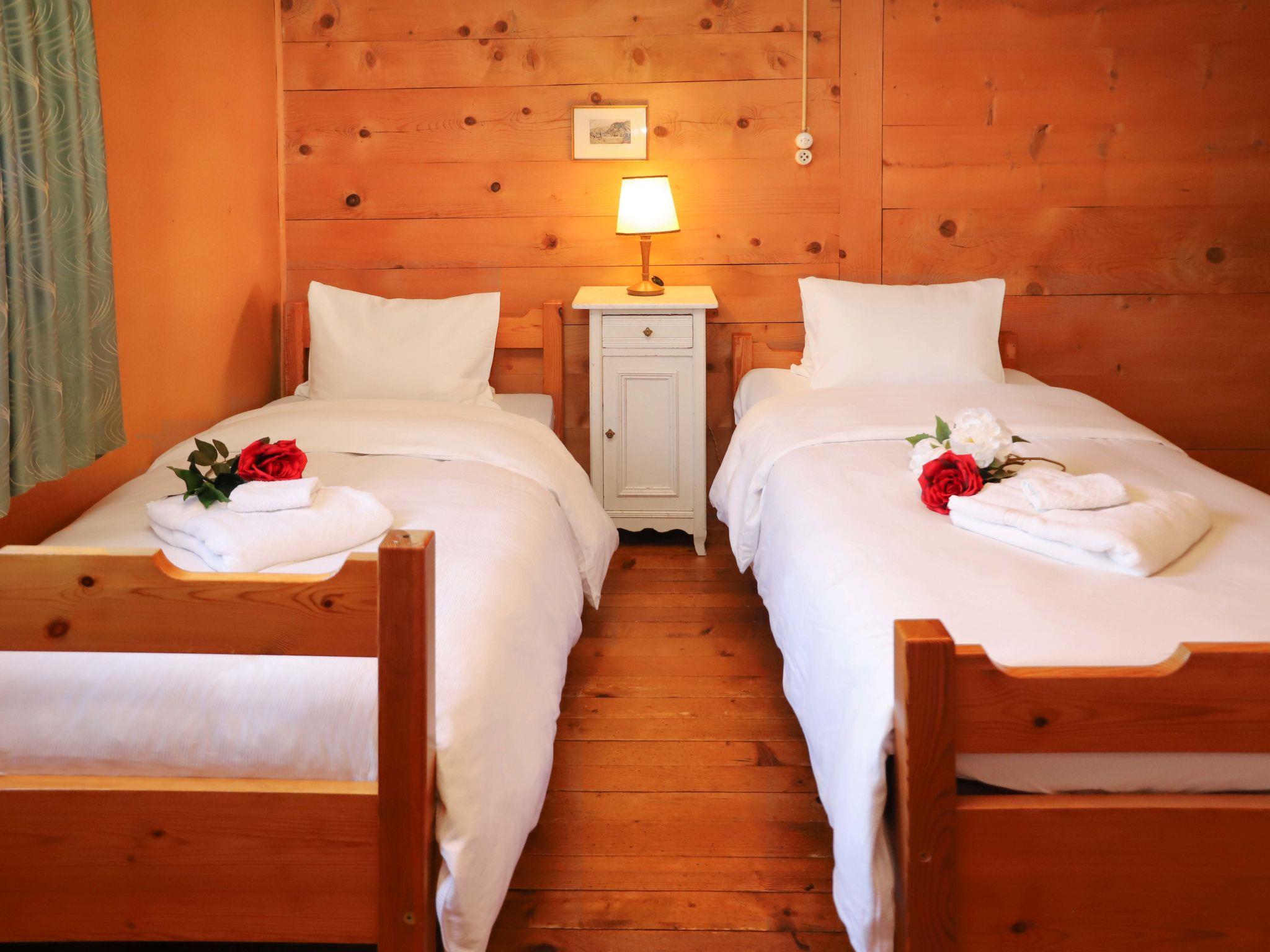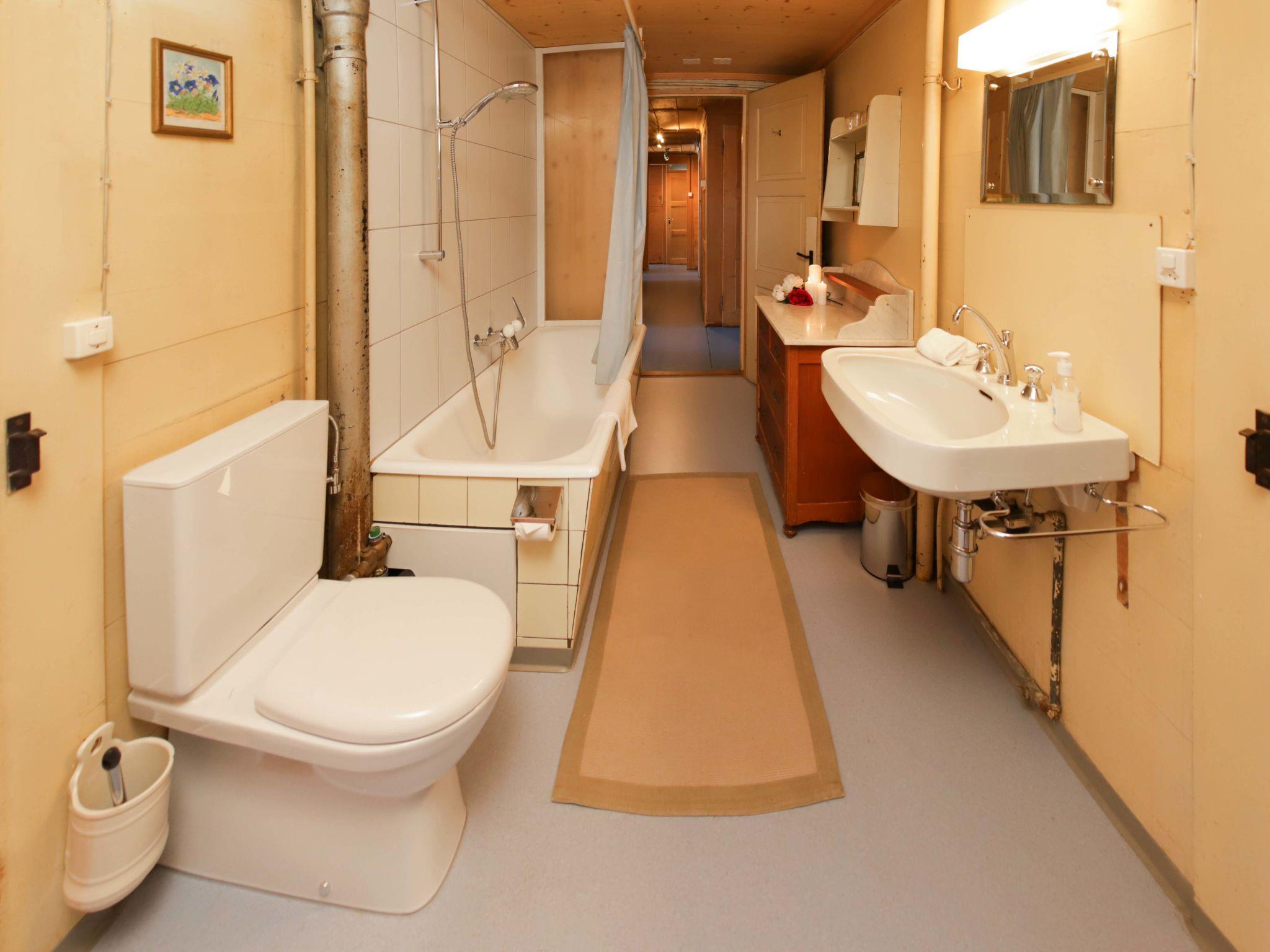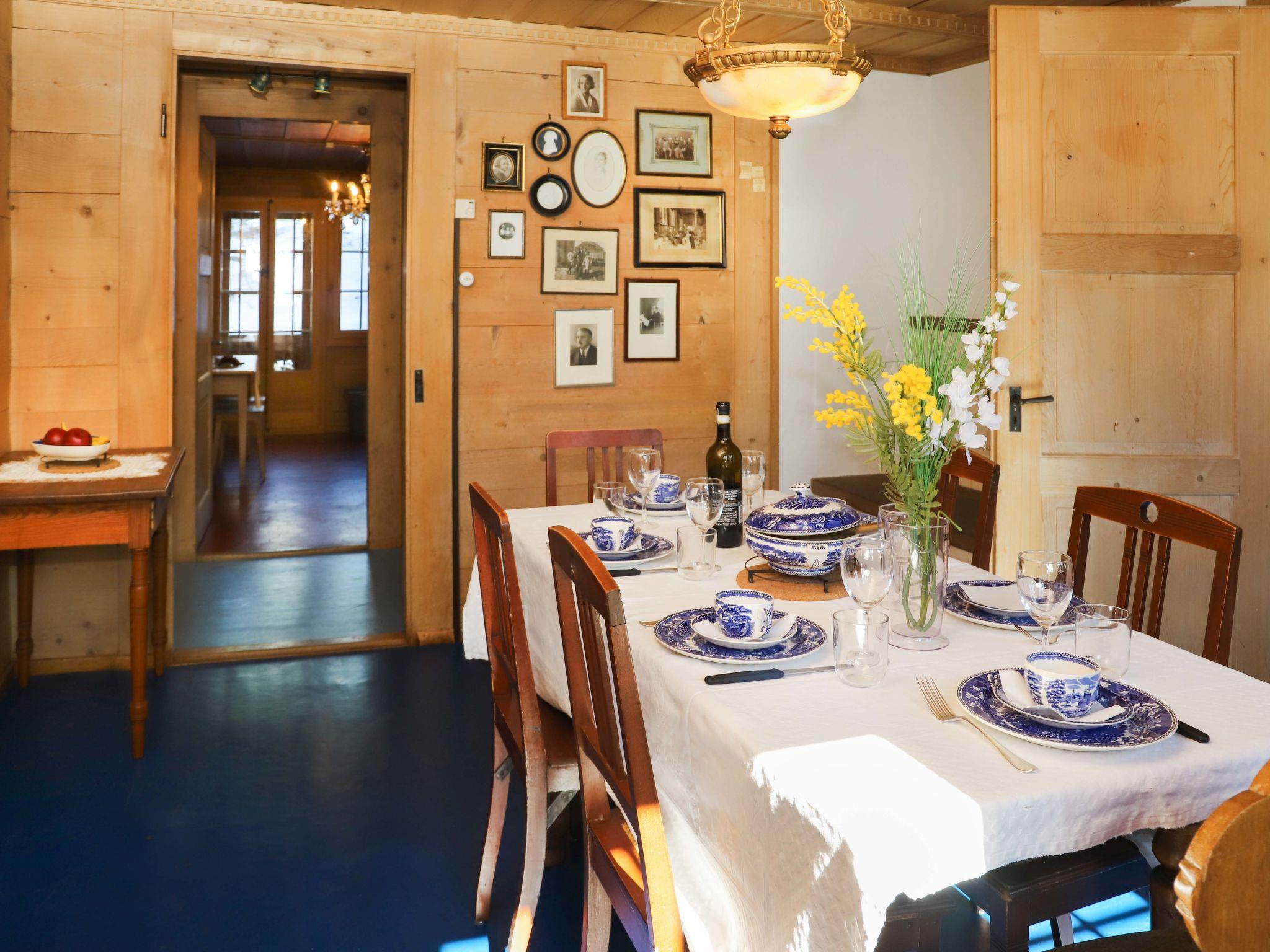 4-room apartment 90 m2 on 1st floor. Spacious, simple and tasteful furnishings: living room with tiled stove. Dining room with dining table. 1 room with 1 double bed (2 x 90 cm, length 200 cm). 1 large room with 2 beds (90 cm, length 200 cm), 1 x 2 bunk beds (90 cm, length 200 cm). Large kitchen (4 hot plates, oven, toaster, kettle, electric coffee machine, raclette grill, fondue Set (cheese)). Exit to the patio. Sep. WC, bath/shower/WC. Wood heating. Heating not available in all rooms. Wooden floors. Patio, west facing position. Box-room. Marvellous view of the mountains, the ski run and the countryside. Facilities: baby cot (extra), hair dryer, logs (extra). Internet (WiFi, free). Parking (1 car) at the house, in winter at 40 m. Please note: suitable for families. Non-smoking house. Smoke alarm, fire extinguisher.