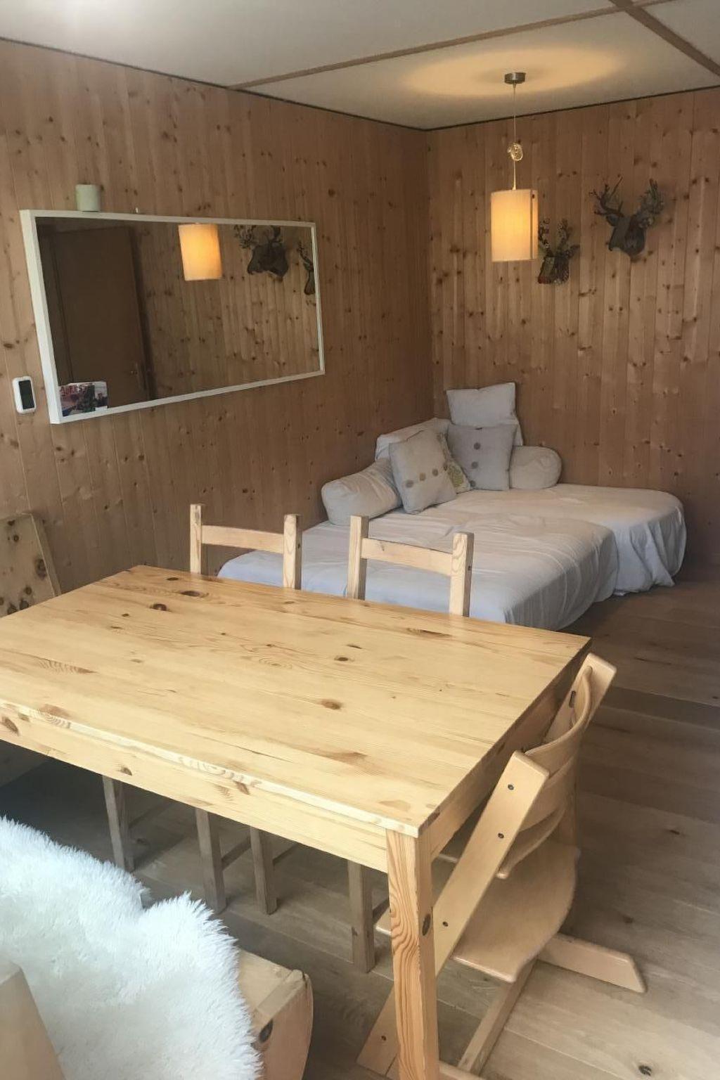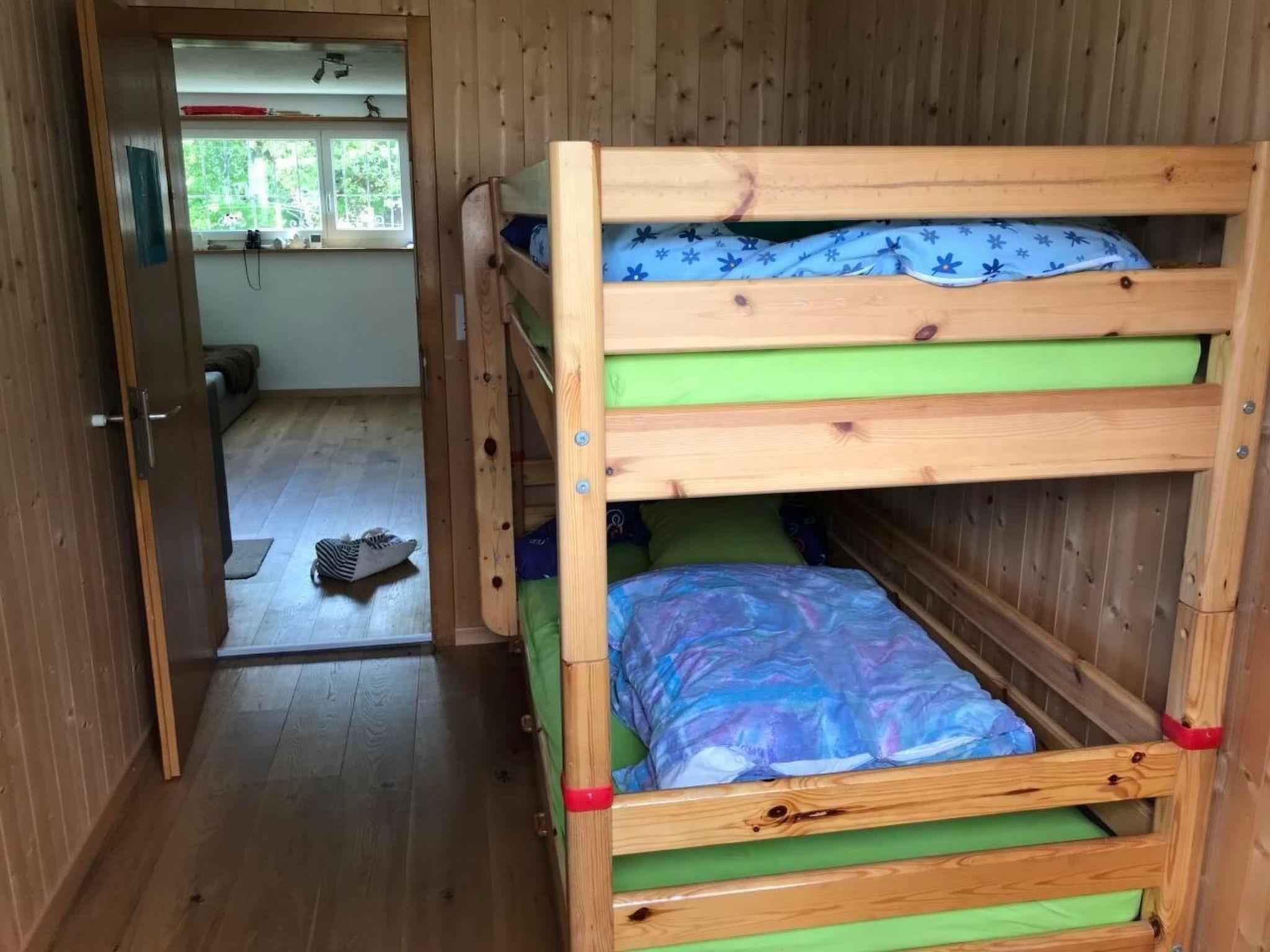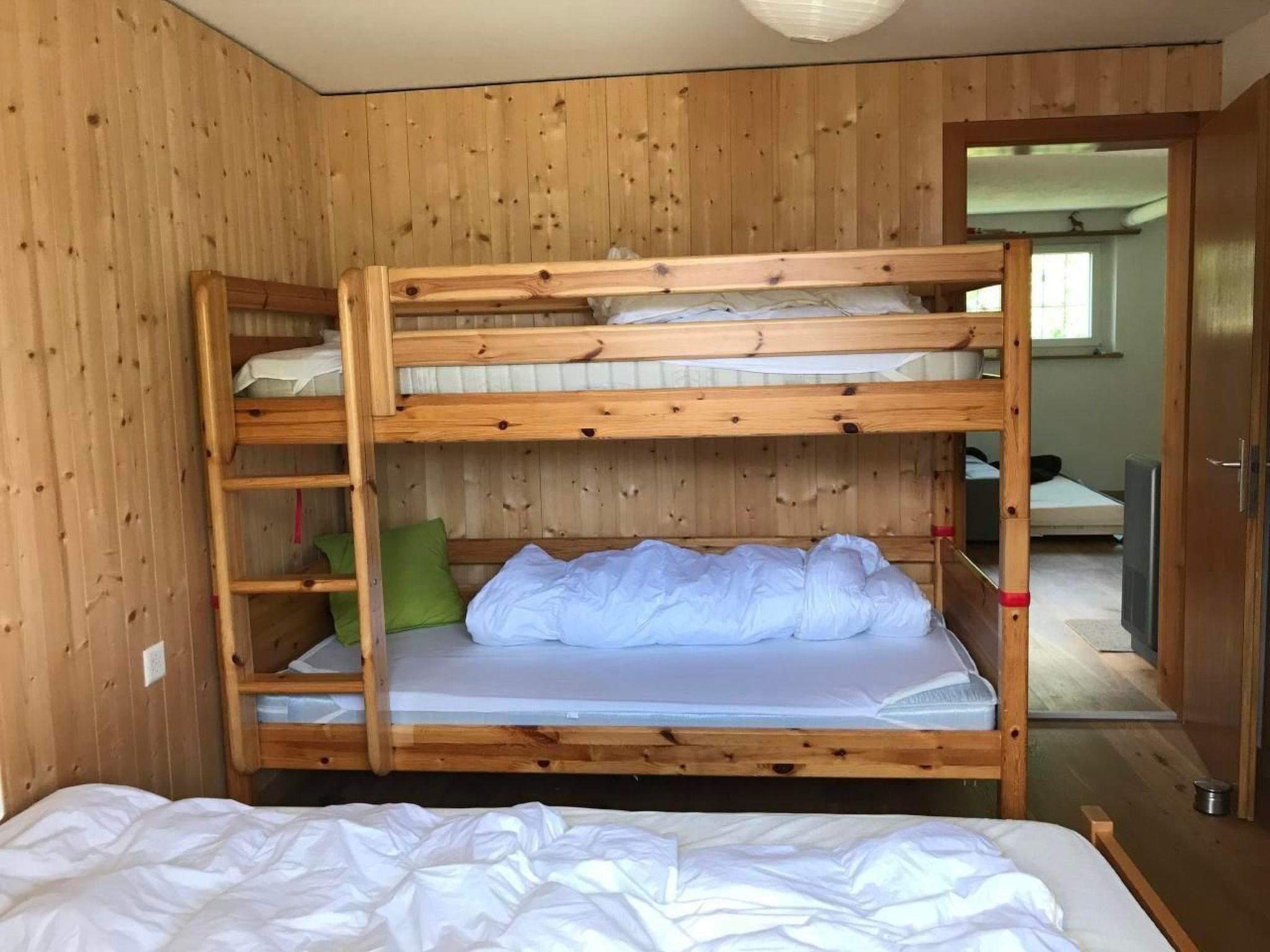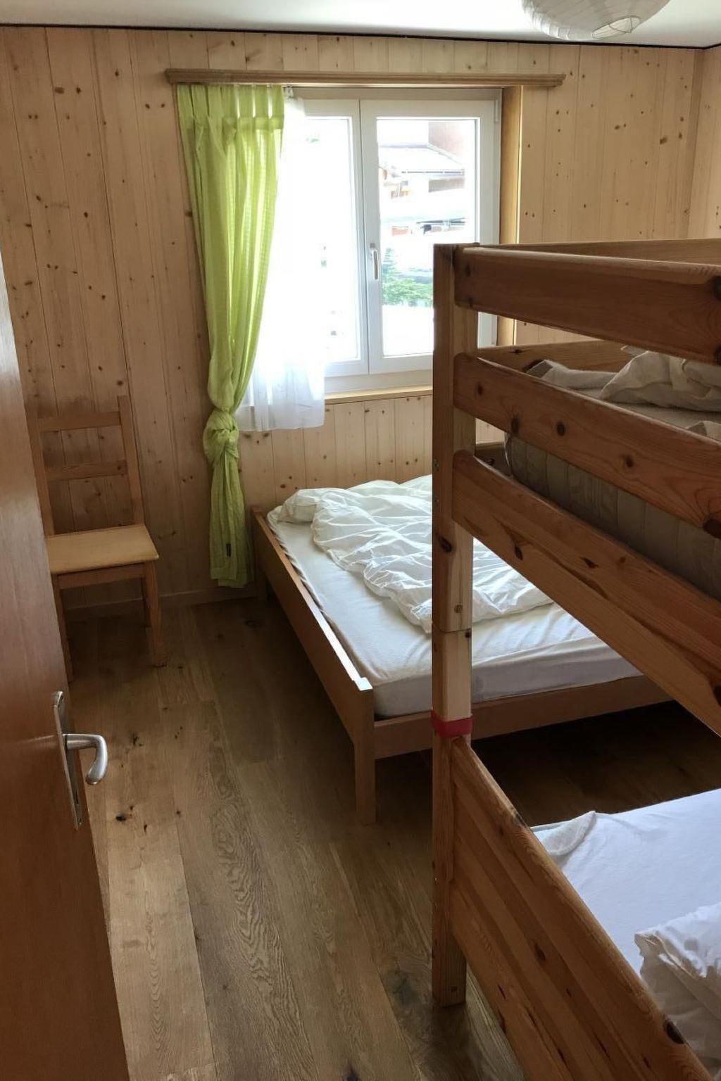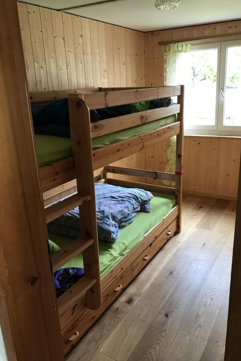 5 room house Arnika is two-storey (approx. 90m2) in a two-family house; exceptionally pleasant room climate thanks to the installation of acoustic ceilings, three car parking spaces; large terrace with lots of sunshine and wonderful views; garden furniture and barbecue available; additional balcony; storage facilities for sports equipment; separate kitchen with oven, four hotplates, large fridge with freezer compartment, coffee machine, kettle, fondue and raclette; WC with shower; 1 bedroom with double bed, 1 bedroom with bunk bed, 1 bedroom with bunk bed and 1 double bed; lounge with sofa bed, living/dining room with sofa and dining area for up to 10 people, cosy pellet stove; washing machine, pets not allowed; non-smoking flat.