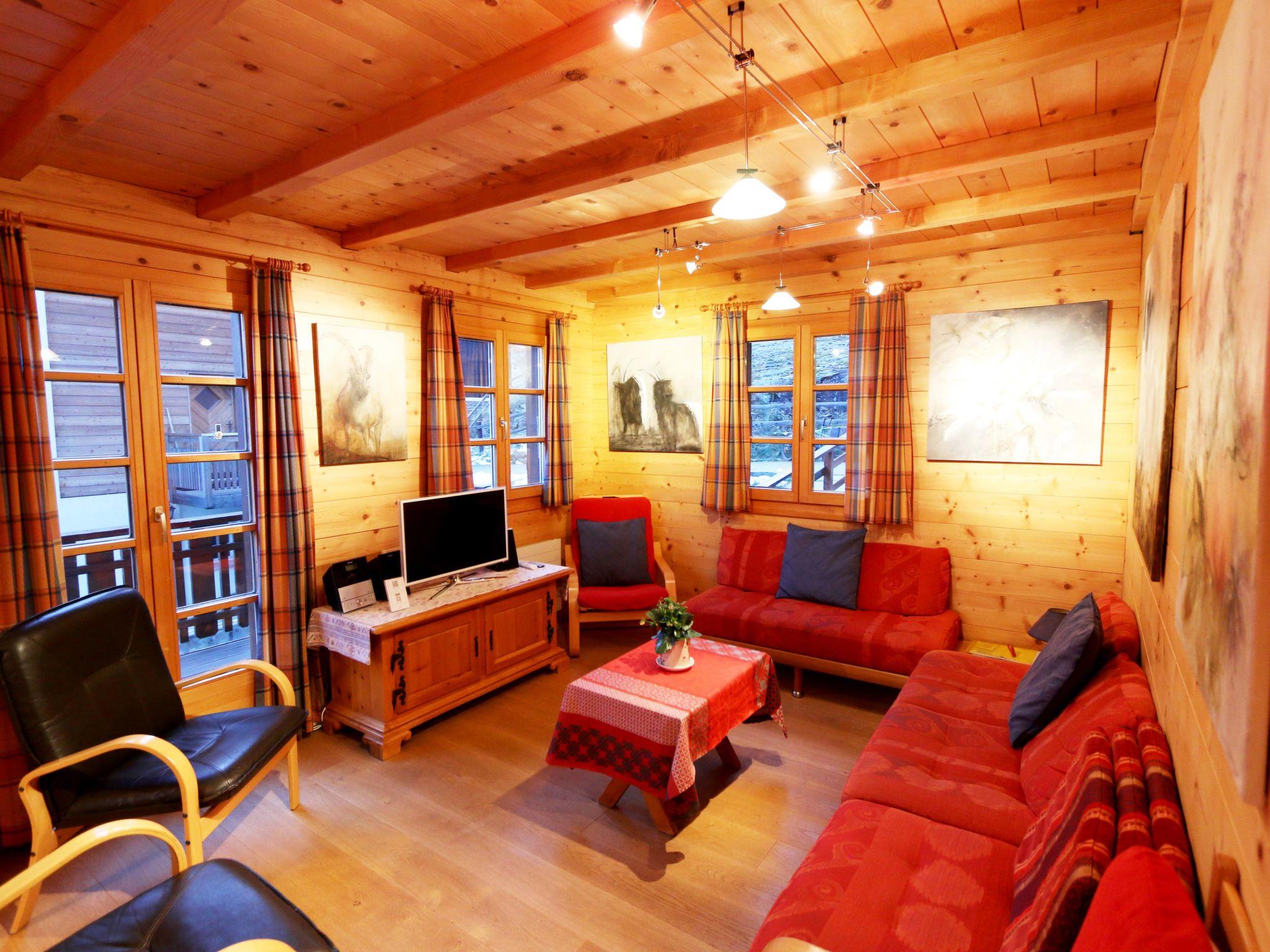 Very large (180m2) individual chalet on 3 floors located in quiet area with beautiful views over the valley. Consisting of 4 bedrooms, 1 living room with eating corner, modern kitchen, 1 shower, 1 bath shower WC, 2 WC's and south-facing balcony. Bus station just in front of the chalet, driving every 10 minutes to the slopes! 15min by foot to the centre & ski station. Free Wifi!