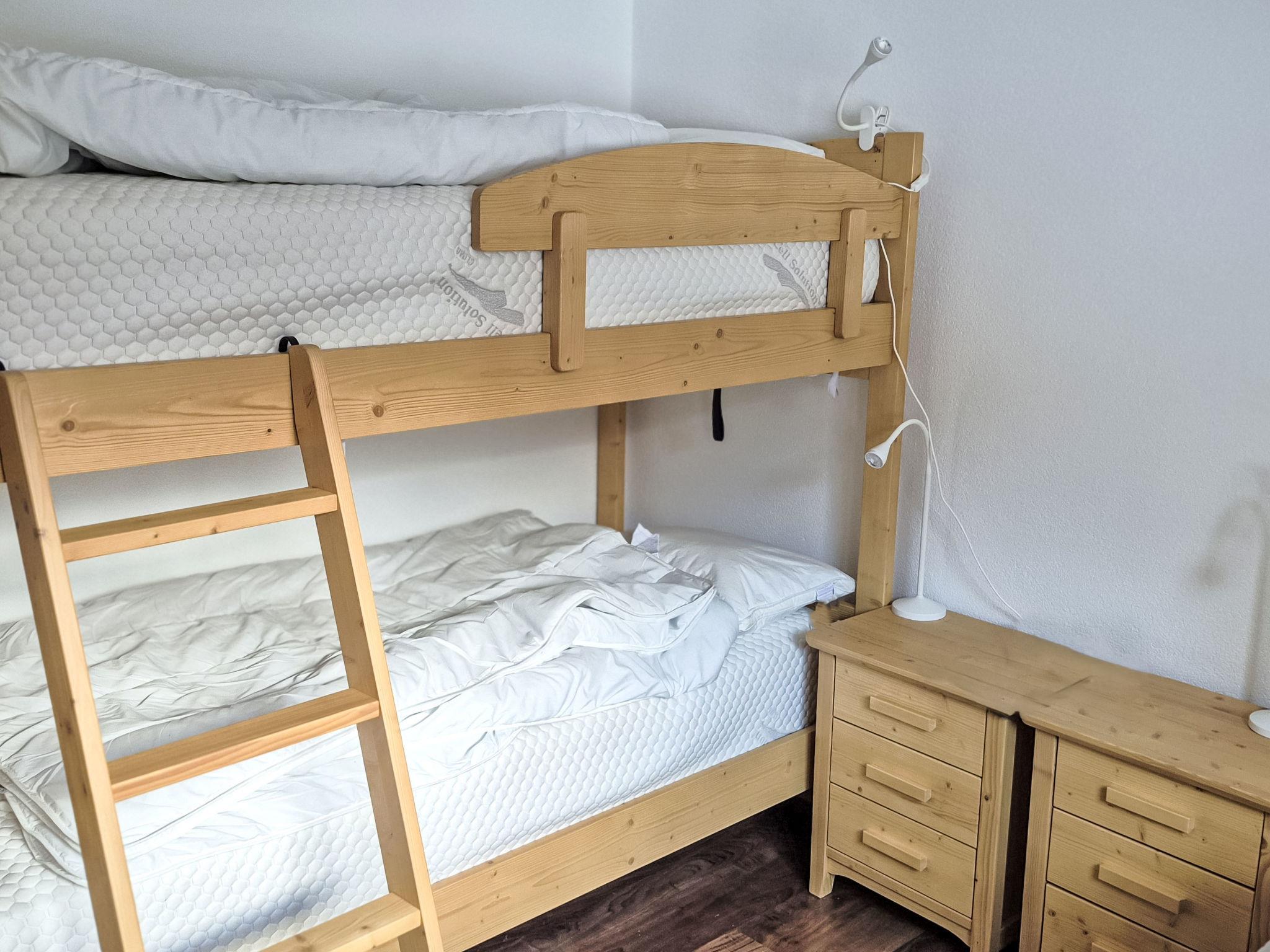 "Perrine", 4-room apartment 100 m2 on 1st floor. Bright, beautiful and tasteful furnishings: living/dining room with digital TV. Exit to the balcony. 1 double bedroom with 1 double bed (2 x 90 cm, length 195 cm). 1 double bedroom with 1 double bed (2 x 90 cm, length 195 cm). 1 room with 1 bed (90 cm, length 195 cm), 1 x 2 bunk beds (90 cm, length 195 cm). Open kitchen (oven, dishwasher, 4 ceramic glass hob hotplates, raclette grill, fondue Set (cheese)) with dining table. Bath/WC, shower/WC. Balcony. Balcony furniture. Beautiful view of the mountains and the countryside. Facilities: Internet (WiFi, free). Please note: non-smokers only.
