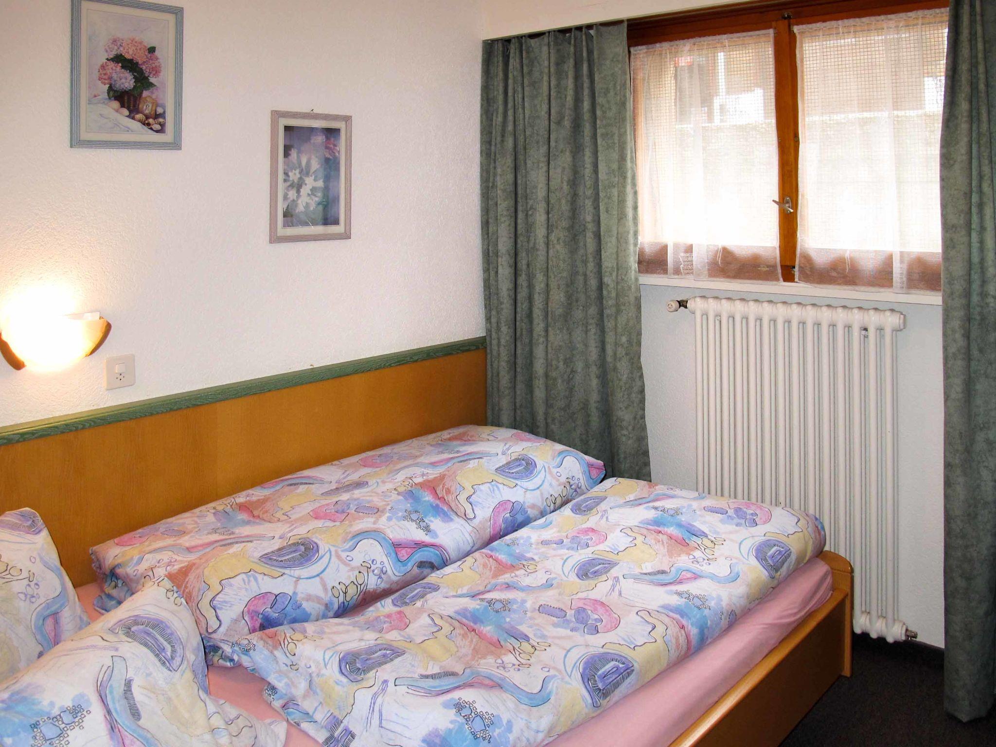 3-room apartment 48 m2, on the ground floor, south facing position. Cosy furnishings: living/sleeping room with 1 sofabed, dining table and satellite TV (flat screen), radio and DVD. Exit to the terrace. 1 double bedroom. 1 double bedroom with shower/WC. Kitchenette (3 hot plates, oven, kettle, microwave, electric coffee machine, fondue Set (cheese)) with dining table. Shower/WC. Oil heating. Terrace. Terrace furniture, deck chairs (2). Beautiful view of the mountains and the resort. Facilities: children's high chair. Internet (WiFi, free). Please note: non-smokers only.