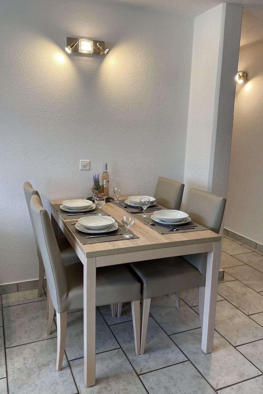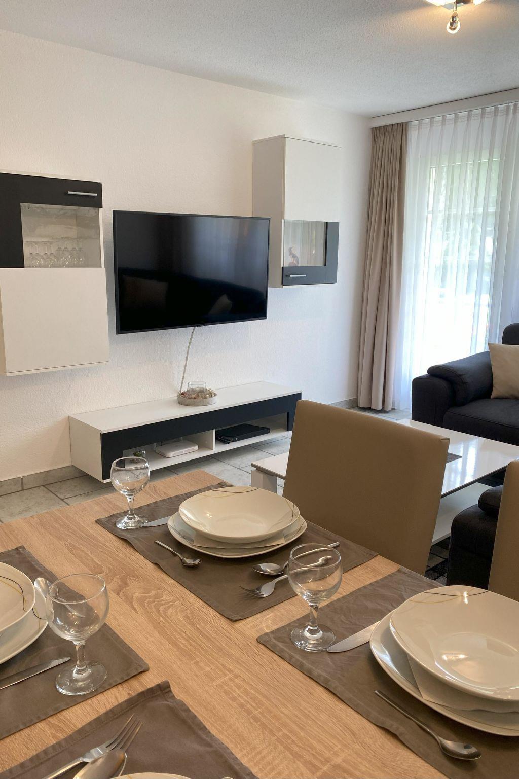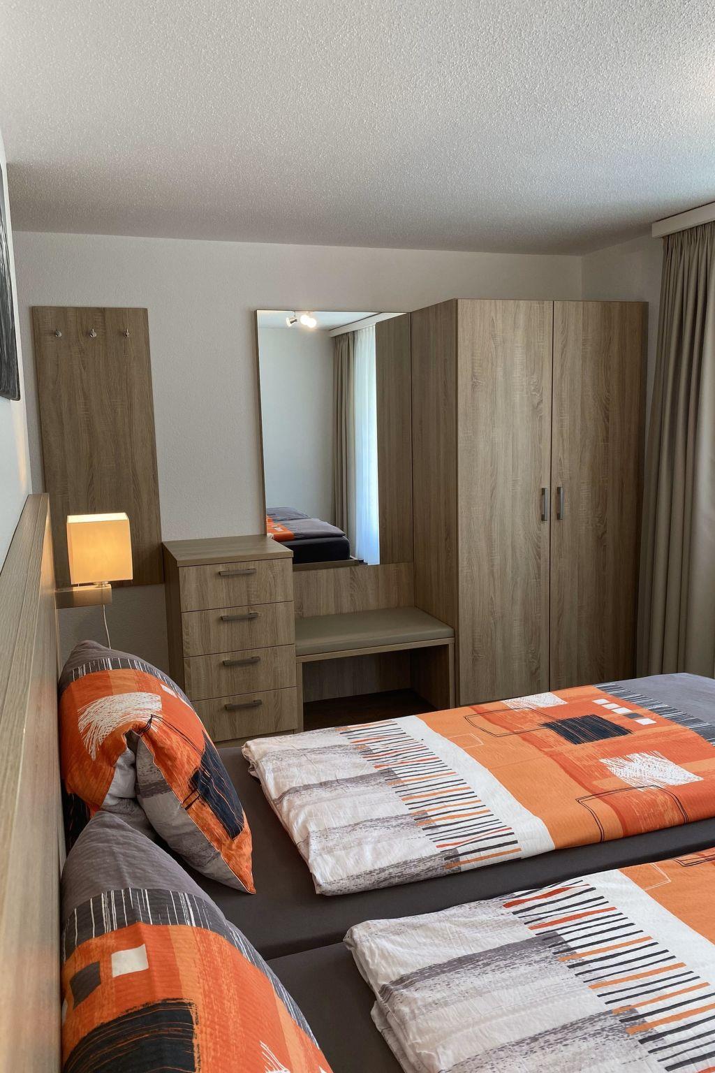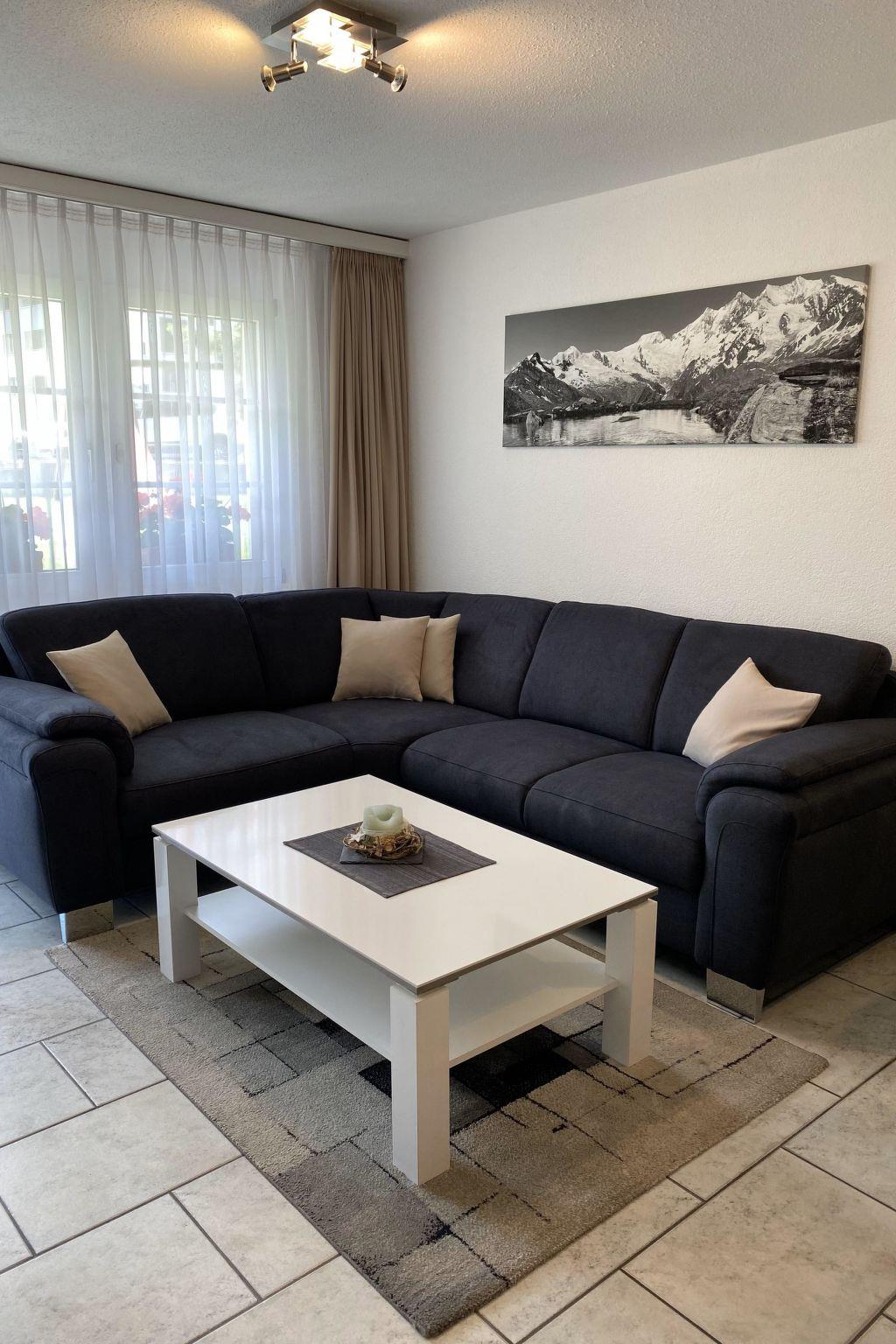 The holiday apartment is situated on the ground floor and faces south, allowing it to benefit from optimal sunlight exposure. The apartment features a spacious living area with an open kitchen, along with two comfortable double bedrooms. The bathroom is equipped with a shower and toilet. To ensure the highest level of comfort and modern conveniences, the holiday apartment is fully equipped. This includes a dishwasher, coffee maker, kettle, microwave, table grill with integrated raclette oven, fondue set, flat-screen TV, radio and complimentary Wi-Fi.Experience a stay in a stylish setting, combined with modern amenities that cater to your expectations of comfort and convenience. Within the house, there is a small fitness room, an infrared sauna and a small library with a play area. Just 50 meters from the house, you'll find the bus stop for postal services and the ski bus.
