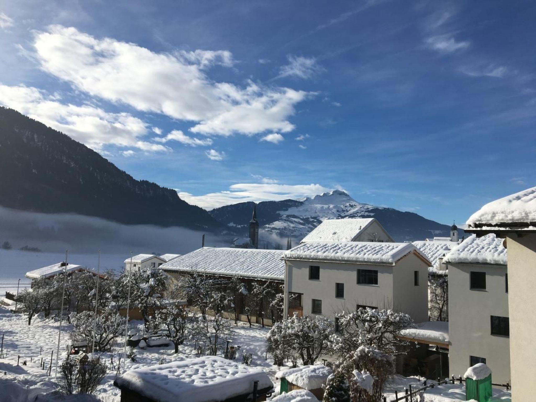 The bright and sunny creatively arranged apartment is situated in the middle of the historic village, with a view of the golf course and mount Piz Mundaun.