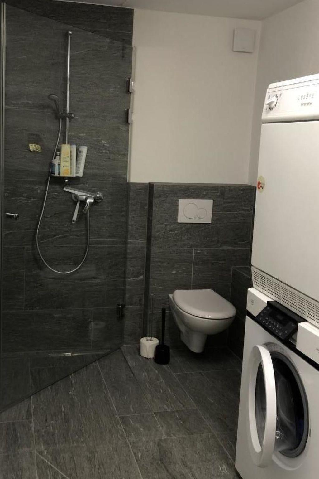 There is a large bathroom and a laundry room with washer and dryer. Store your shoes in a dedicated cabinet next to the entrance and your hiking or skiing gear in the basement wardrobe. The basement has also space next to the heater to store and dry the boots/skies and there is a work bench.
