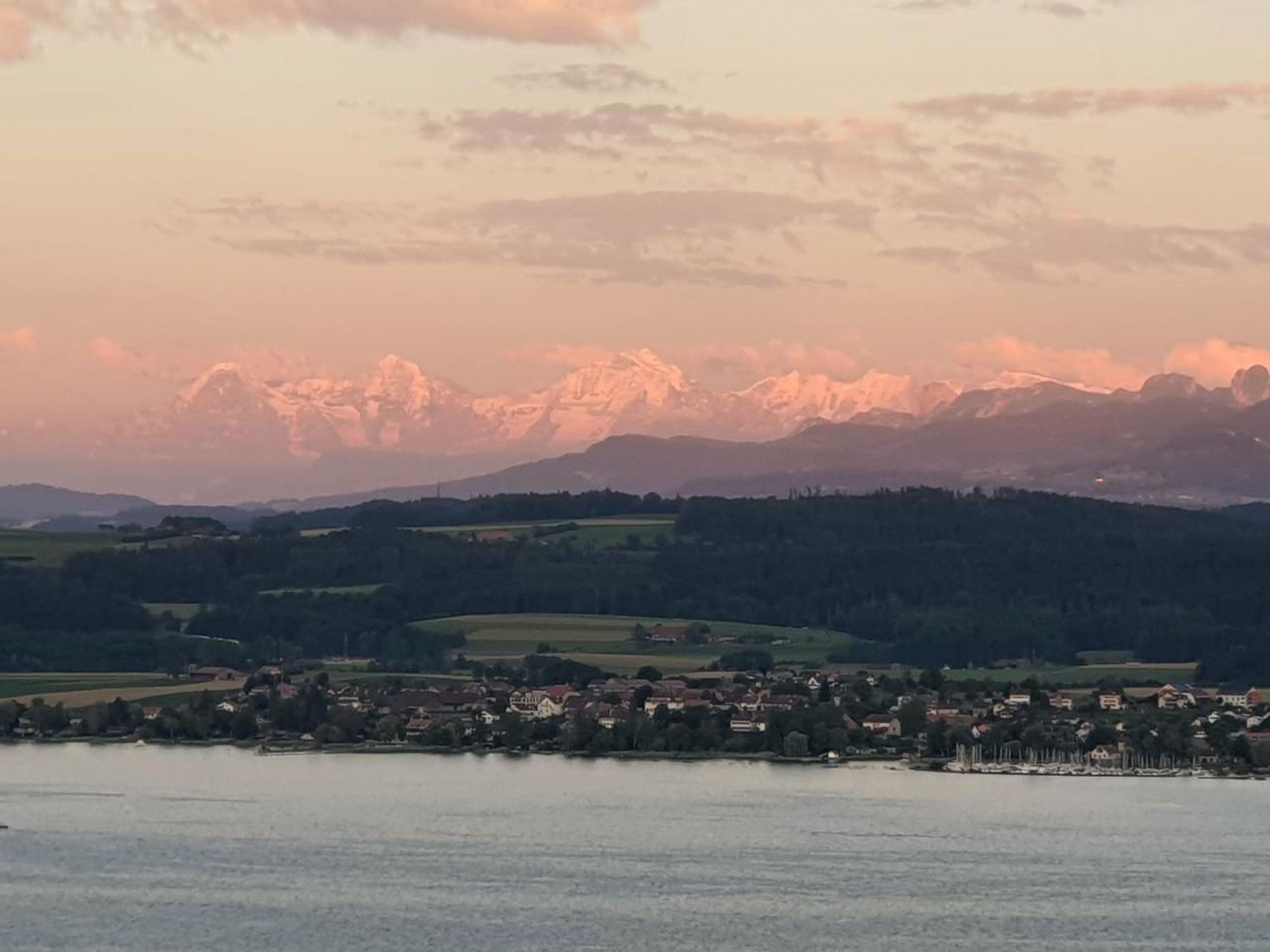 In the middle of the vineyards of the Mount Vully and 15 min. from Murten or Avenches, the holiday apartment “Riposo” is situated in the impasse des Cerisiers on the ground floor of a well-kept detached house with view of Lake Murten, the Alpes and the Broye. Pur relax!