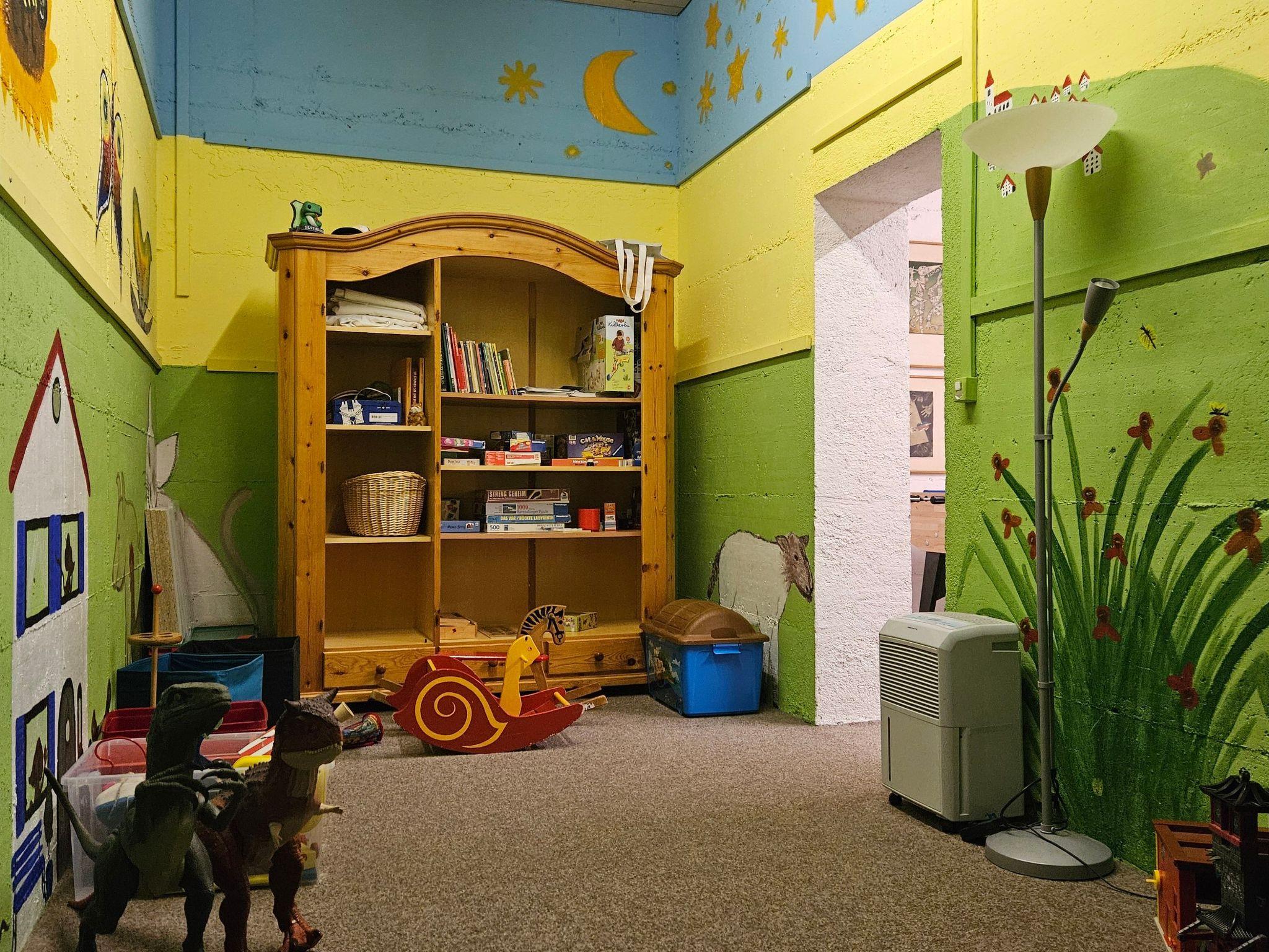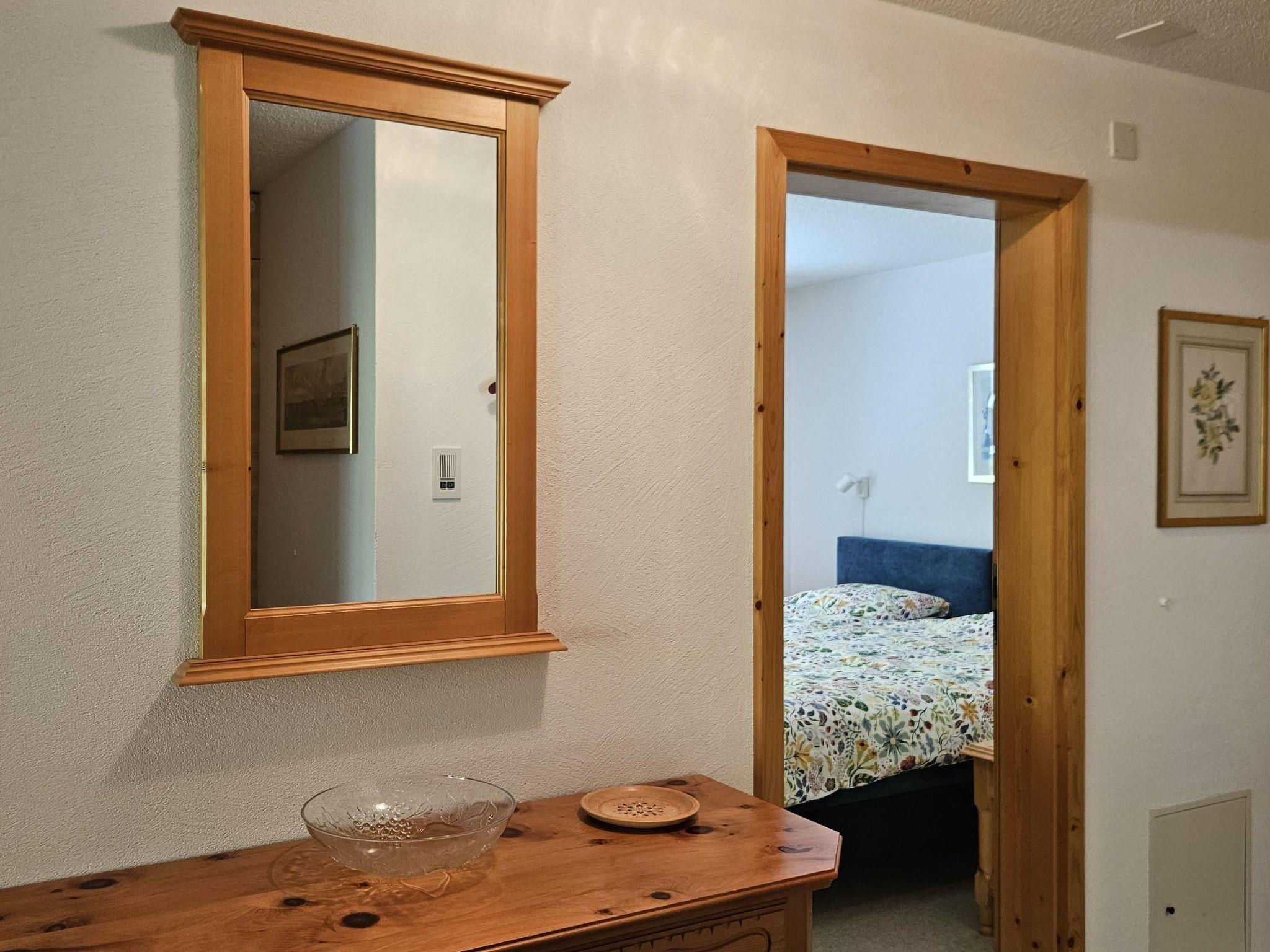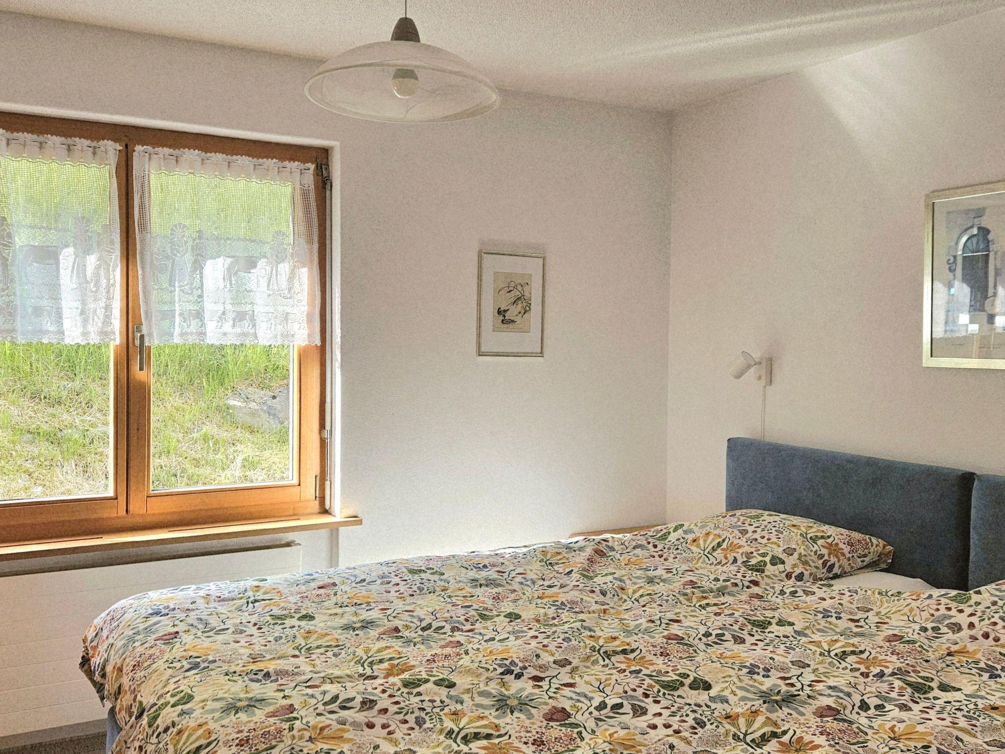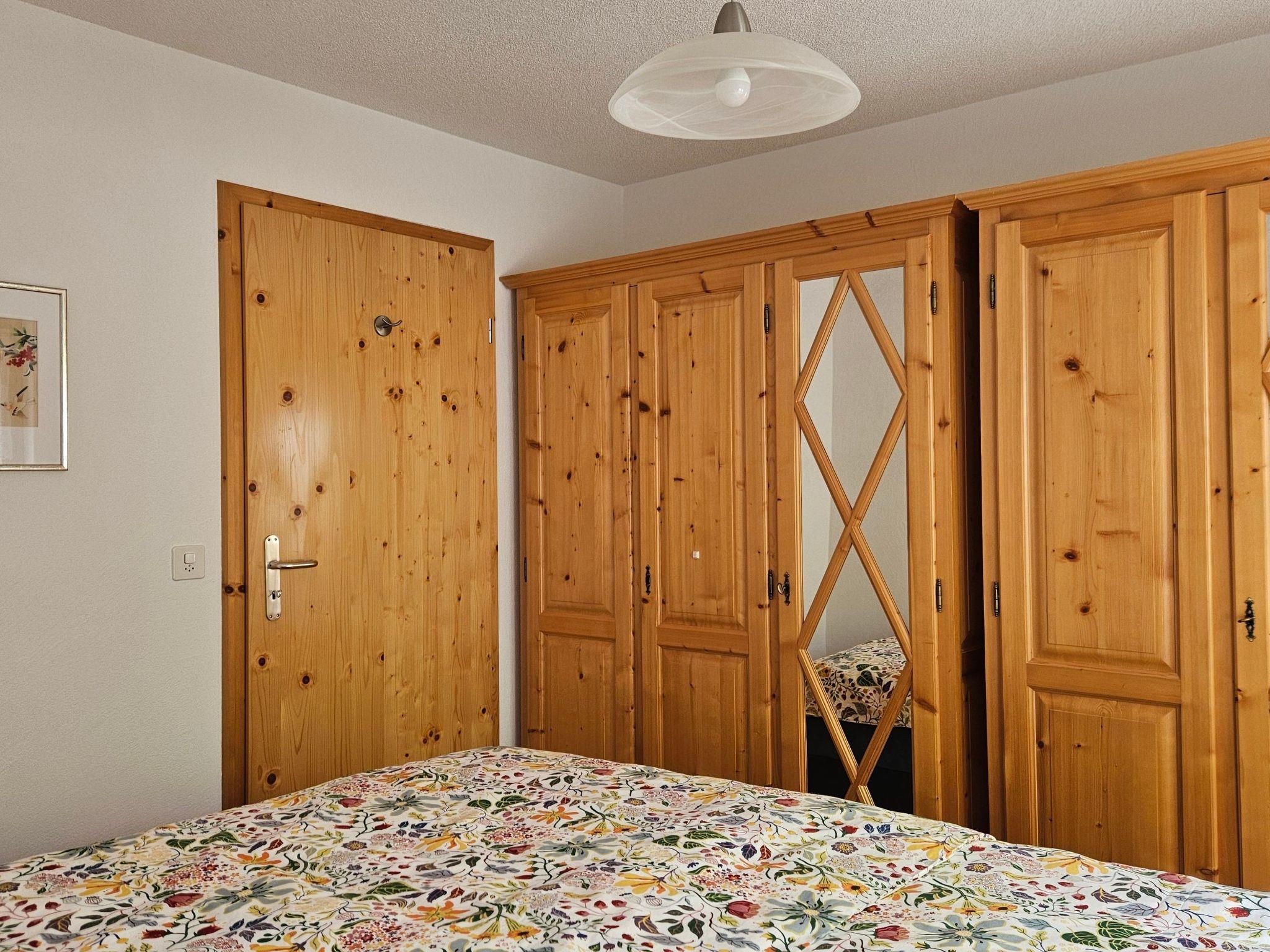 Inside the flat, a modern living room with a large TV, sofa bed, upholstered armchair and cocktail table provides comfort, complemented by direct access to the conservatory or garden seating area. A well-equipped kitchen with ceramic hob, oven, dishwasher, fondue rechaud, raclette oven, coffee machine and much more is available for use. A large Swiss stone pine dining table and comfortable wooden chairs invite you to eat together. The bedroom impresses with two large box-spring beds (2.2 m x 1.0 m), which guarantee a restful night's sleep, and two rustic Swiss stone pine wardrobes. The modern WC/bathroom with walk-in shower completes the whole.