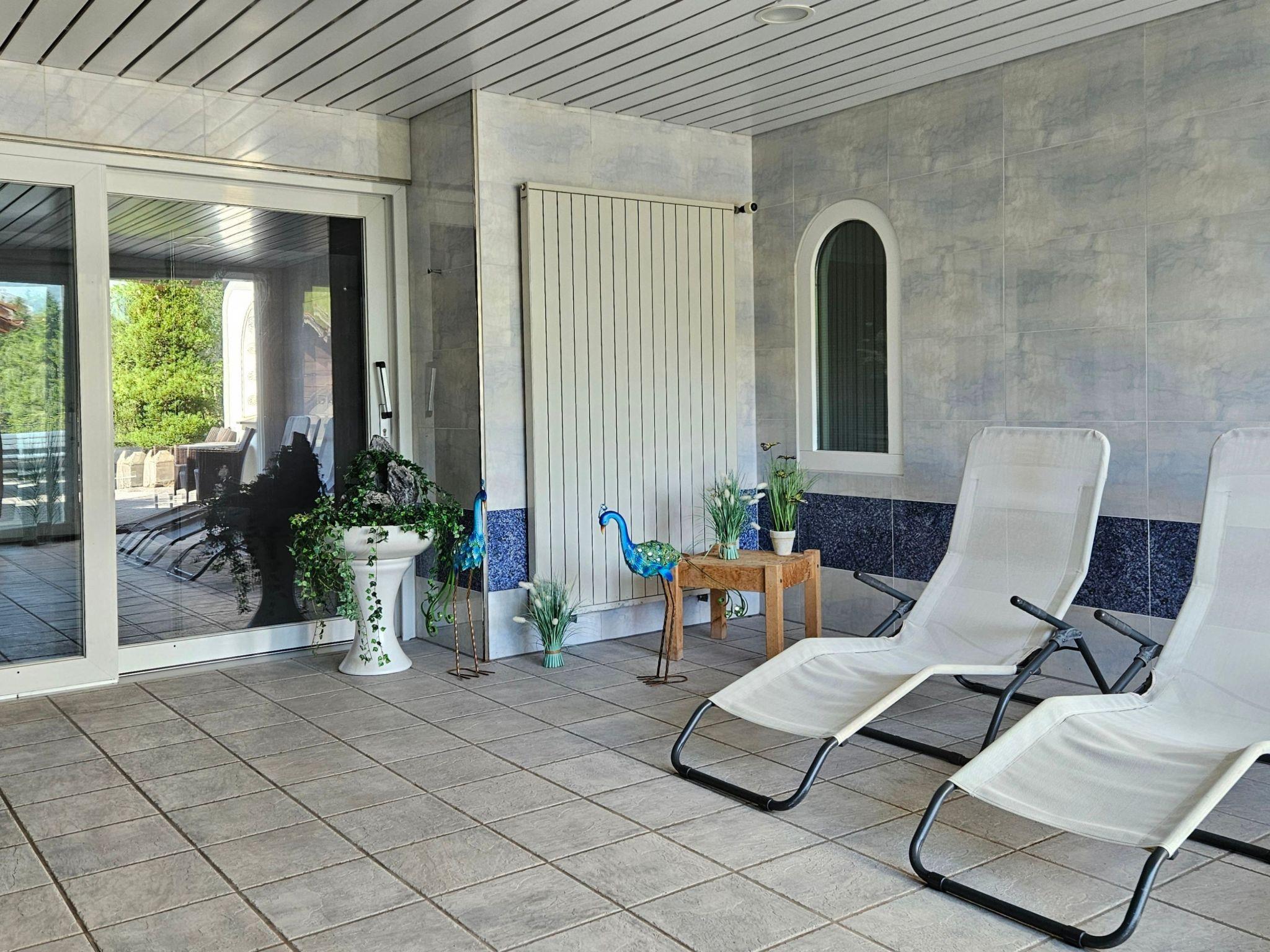The outdoor area offers the perfect infrastructure to enjoy the fresh mountain air and the calming tranquillity of nature with a garden seating area, garden chairs and loungers as well as a light-flooded conservatory with dining table and chairs. These areas invite you to unwind with a cup of coffee in the morning or a relaxing drink in the evening and admire the surrounding landscape.