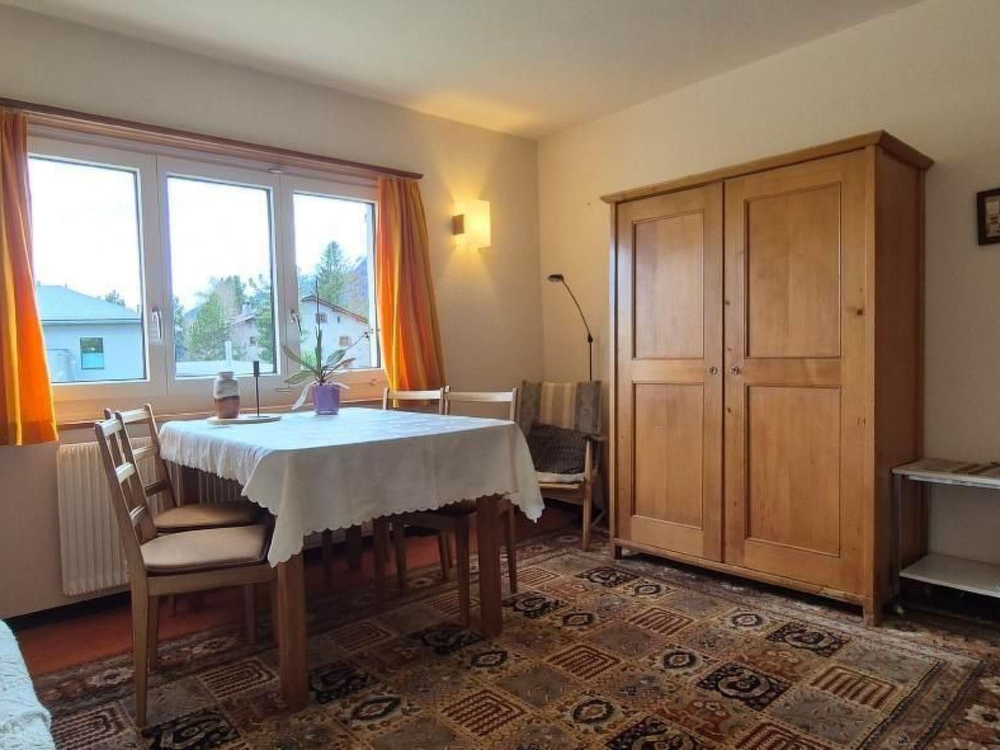 "Crusch 51", 2-room flat 40 m2 sous-sol. Public transport included (Upper Engadine region), in summer mountain railway included (also bikes), cosy and practical furnishings: Living/dining room with dining table, 2 sofas (can also be used as a bed) and TV (flat screen). Garden seating area with large meadow and unique view. 1 double bedroom with 2 beds (90 cm, length 200 cm). Small, simple kitchen (oven, 4 hot plates, small fridge, microwave, toaster, kettle, electric coffee machine, capsules for coffee machine (Nespresso), fully equipped kitchen). Small WC with shower. Heating. Parquet floors. View of the mountains (Bernina massif) and the resort. At your disposal: Washing machine, tumble dryer, iron, hair dryer. Internet (wireless LAN, free); for shared use: workshop (with waxing facilities) and cellar. Please note: Non-smoking accommodation, non-smoking house, no pets. A family with school-age children lives in the upper part - not always completely "inaudible" during the day