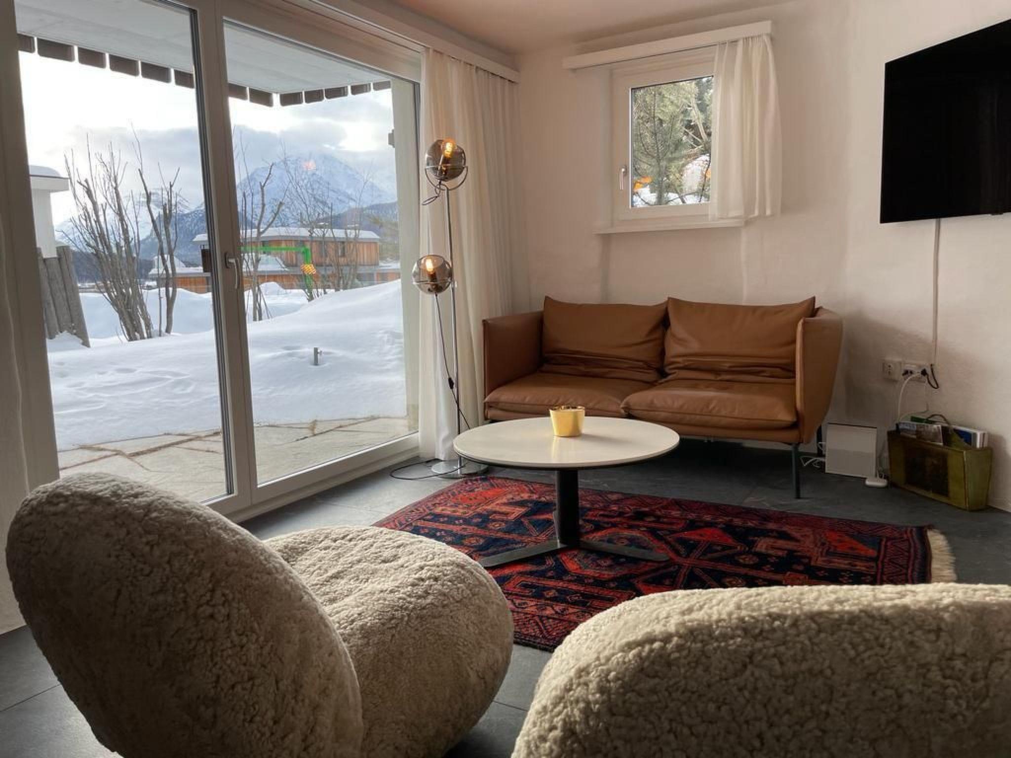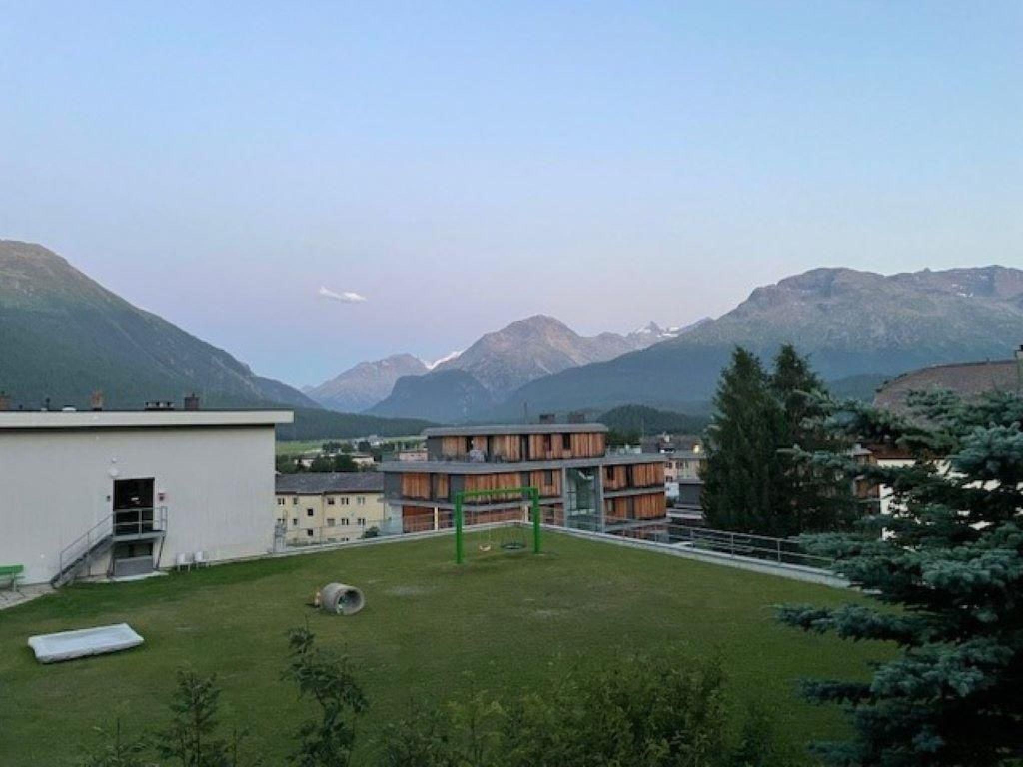 The flat has an open-plan kitchen, a living room, two bedrooms, a bathroom, a separate WC with shower, as well as a ski room and a table tennis room. There is also a parking space in the property's underground car park. The private seating area on the ground floor and balcony on the first floor offer a wonderful view of Samedan's local mountain, Muottas Muragl, and the Bernina group. The communal laundry room is for shared use. The bus stops, which offer direct connections to the ski areas, are just a few minutes' walk away. The valley run of the popular *Marguns* ski area ends right next to the property. Various shopping facilities can be reached on foot in 5 minutes.