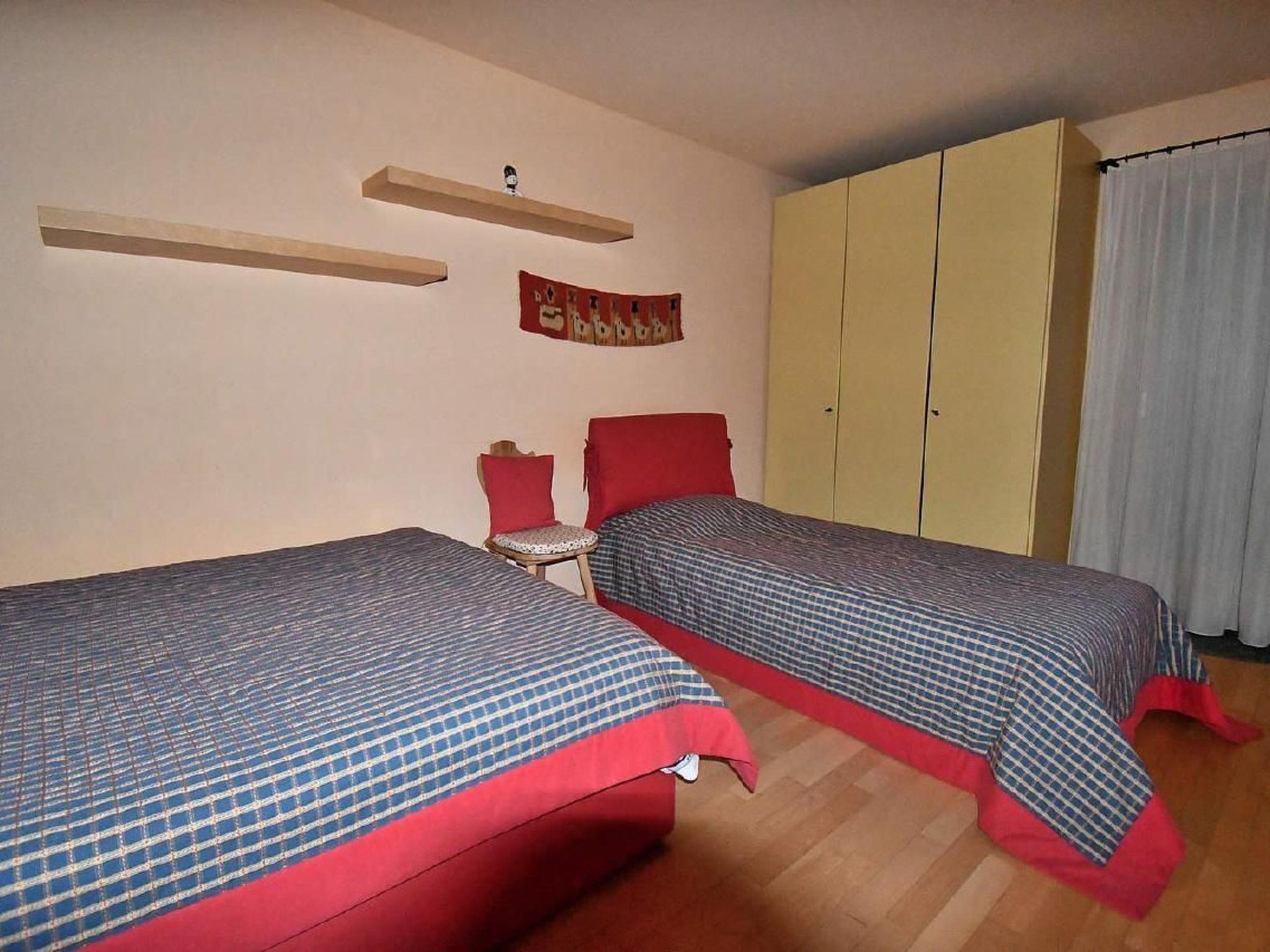 Inside, a spacious living and dining room awaits, complete with a balcony for picturesque views. Other amenities include a well-equipped kitchen with WC/shower, a separate WC and two bedrooms, one with a double bed and the other with two single beds; both bedrooms have balconies. The entire flat has real wood parquet flooring, while the wet rooms are tiled with ceramic tiles, creating a warm and inviting atmosphere.