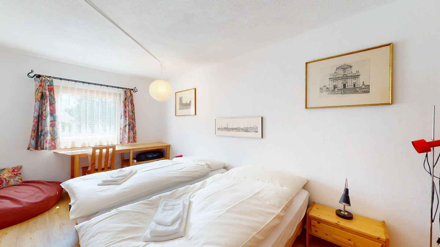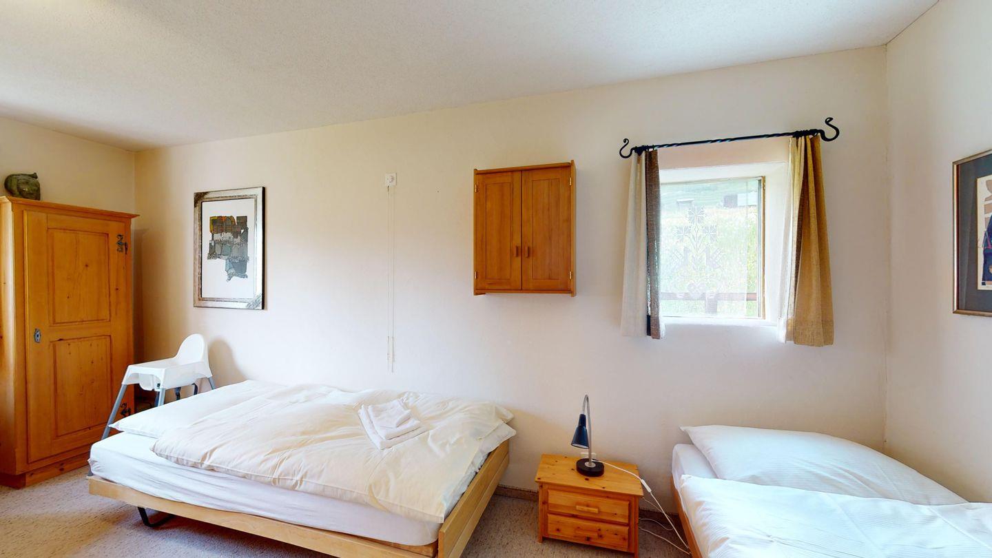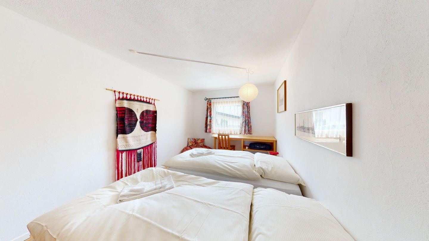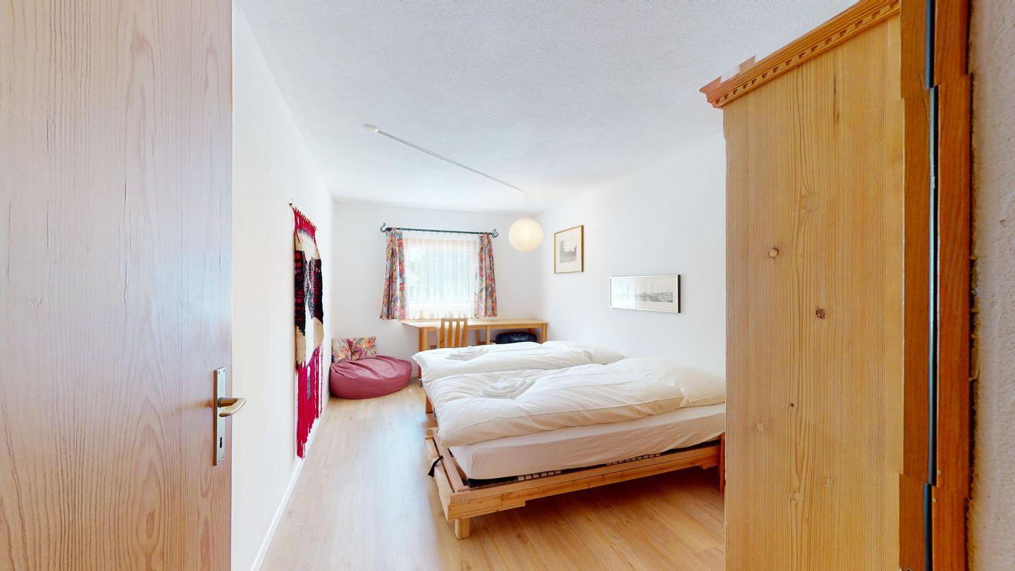 Grosse 4½-Zimmerwohnung (122m²) im Erdgeschoss an ruhiger Lage, direkt beim Skilift Samedan. Geräumige Küche mit Geschirrspüler, Mikrowelle, Gefrierschrank, Kaffeemaschine, Toaster. Helles Wohnzimmer mit Cheminée, TV/Radio/Internet und grossen Gartensitzplatz. Drei Schlafzimmer mit je 2 Einzelbetten. Ein Badezimmer mit WC/Duschen/Lavabo. Zweites Badezimmer mit WC/Duschen/Lavabo und Badewanne. Einen Parkplatz in der Garage und einen Aussenparkplatz. Genügend Platz für Velos vorhanden. Haustiere sind nicht erlaubt.