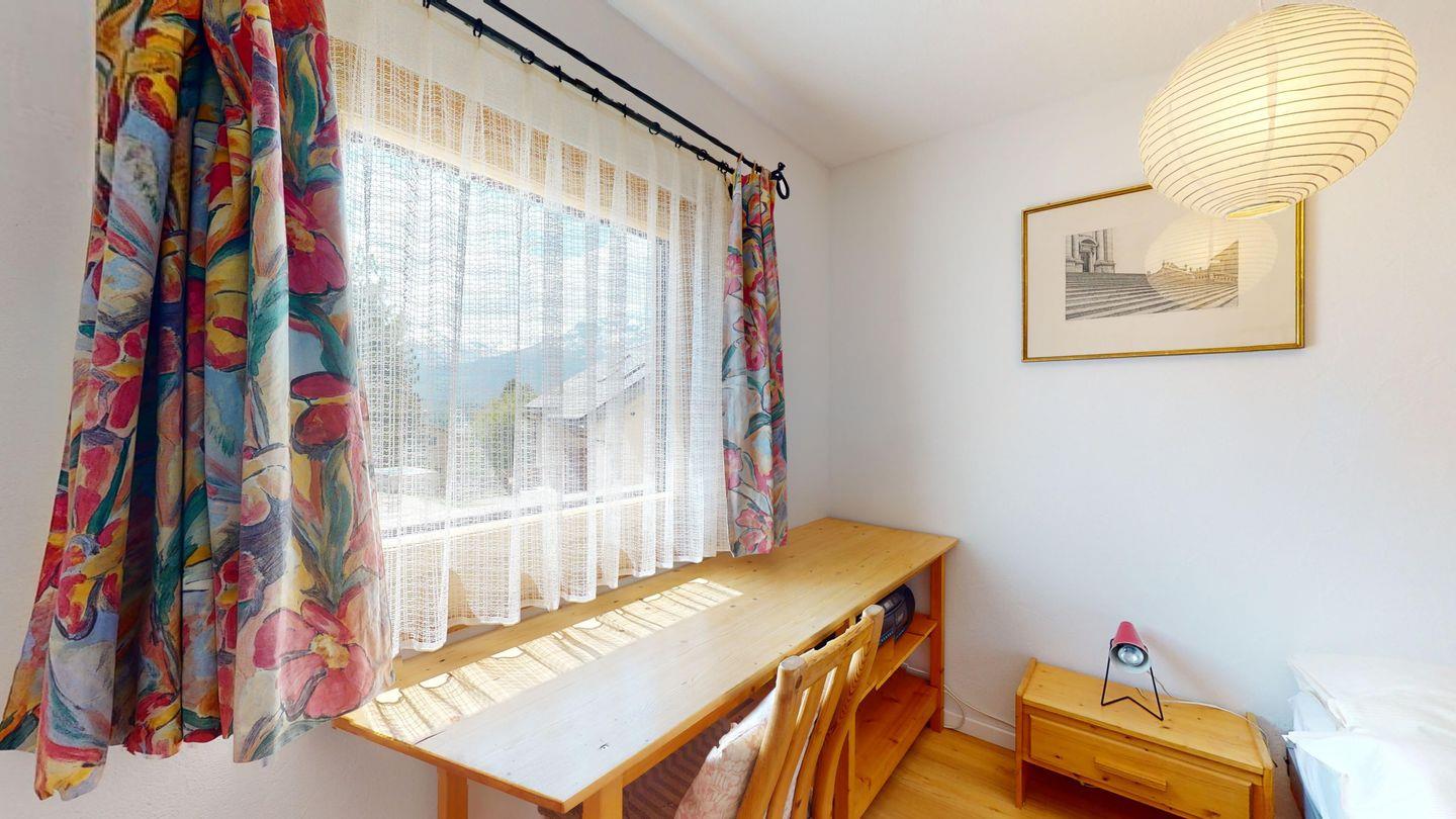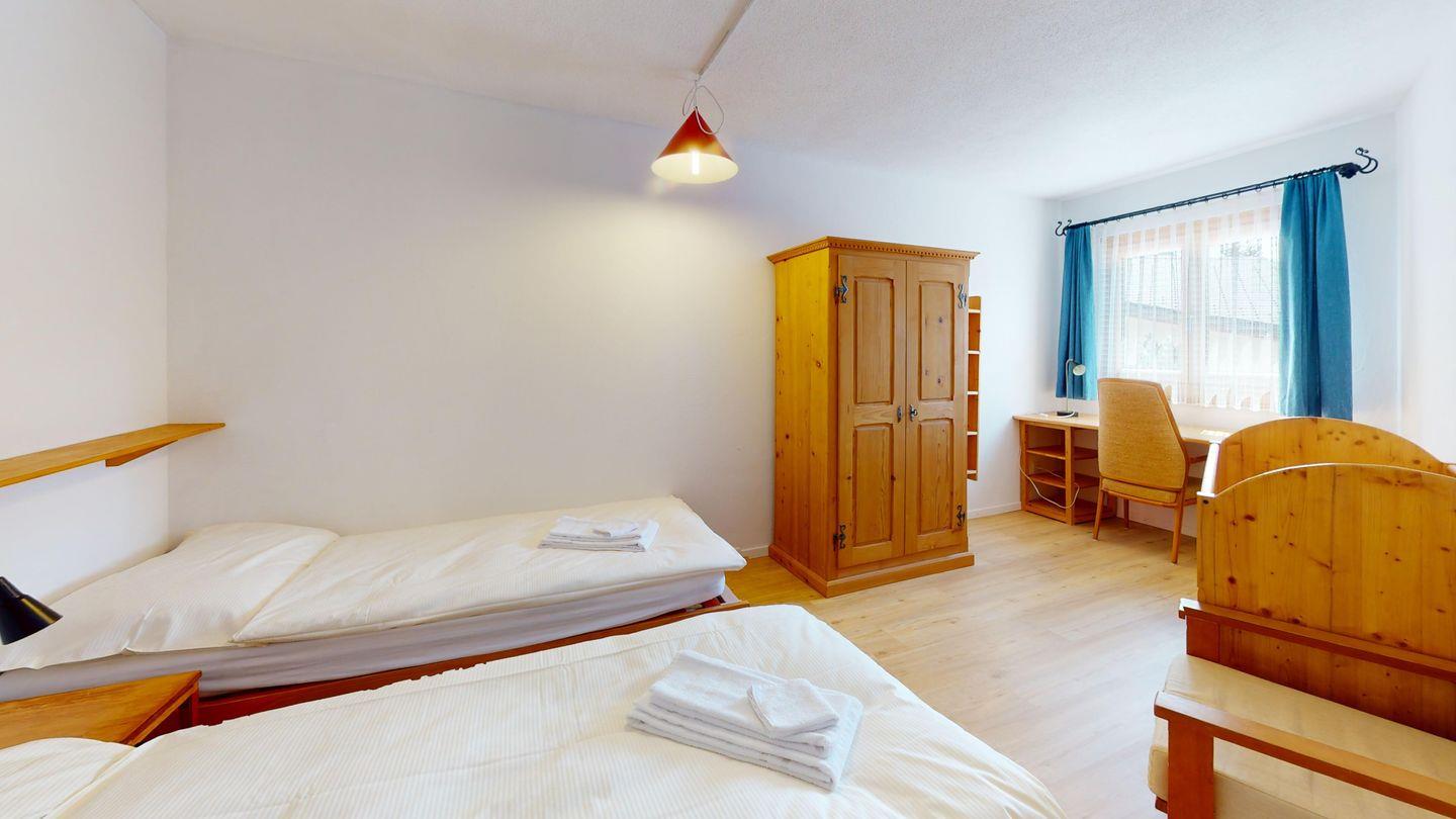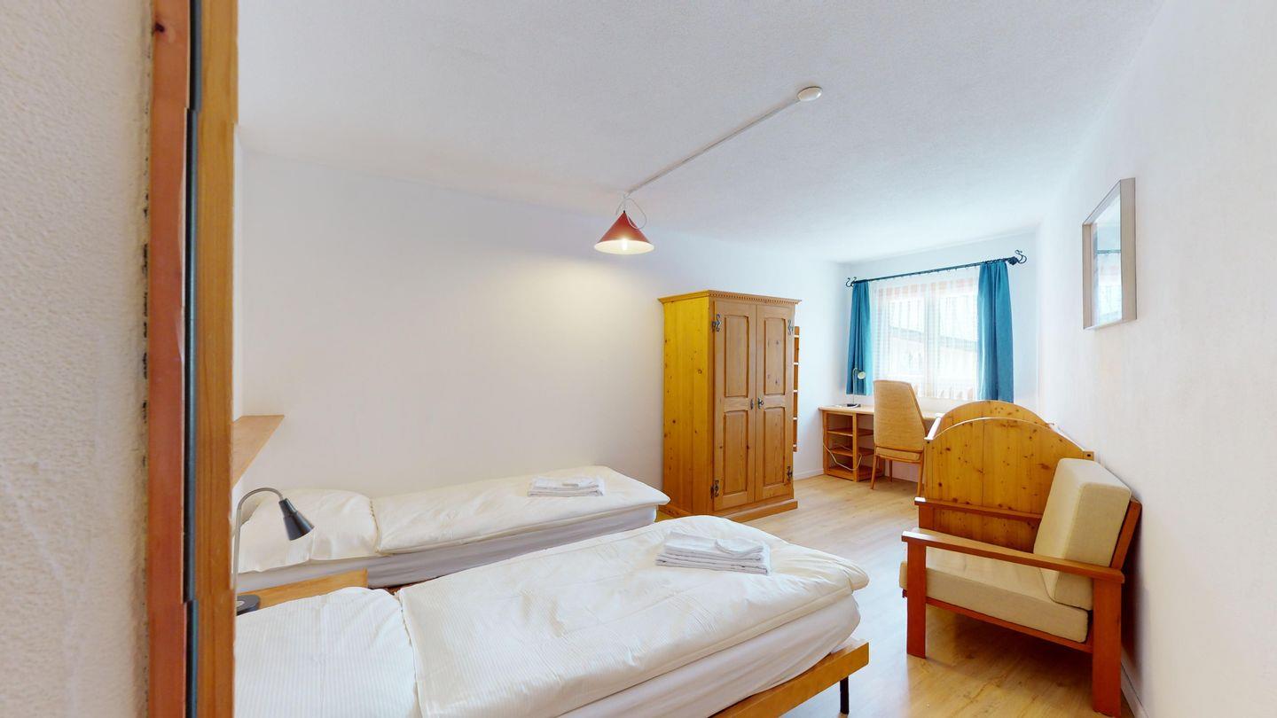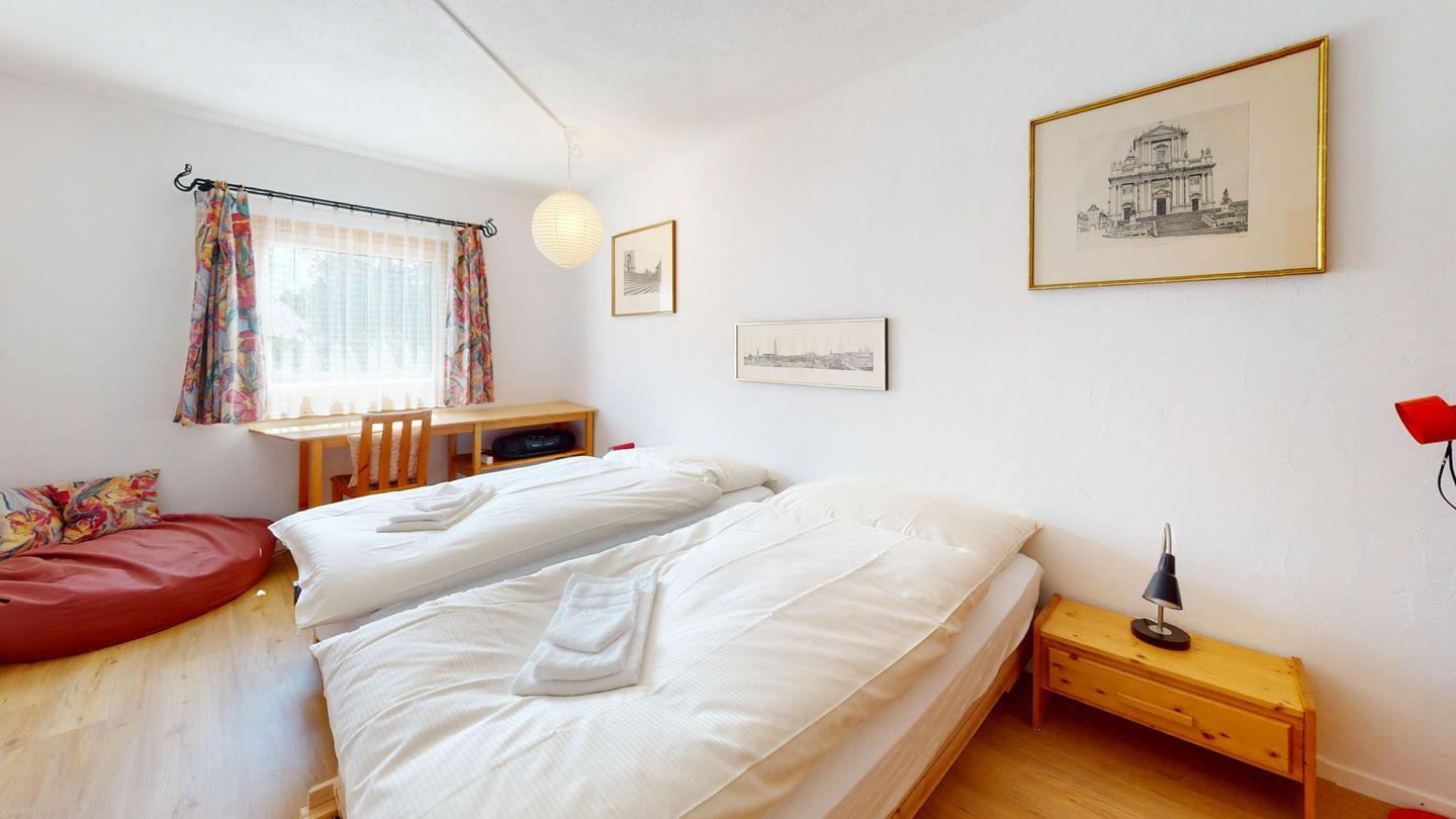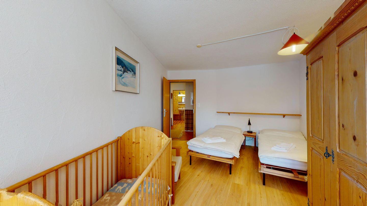 Grosse 4½-Zimmerwohnung (122m²) im Erdgeschoss an ruhiger Lage, direkt beim Skilift Samedan. Geräumige Küche mit Geschirrspüler, Mikrowelle, Gefrierschrank, Kaffeemaschine, Toaster. Helles Wohnzimmer mit Cheminée, TV/Radio/Internet und grossen Gartensitzplatz. Drei Schlafzimmer mit je 2 Einzelbetten. Ein Badezimmer mit WC/Duschen/Lavabo. Zweites Badezimmer mit WC/Duschen/Lavabo und Badewanne. Einen Parkplatz in der Garage und einen Aussenparkplatz. Genügend Platz für Velos vorhanden. Haustiere sind nicht erlaubt.