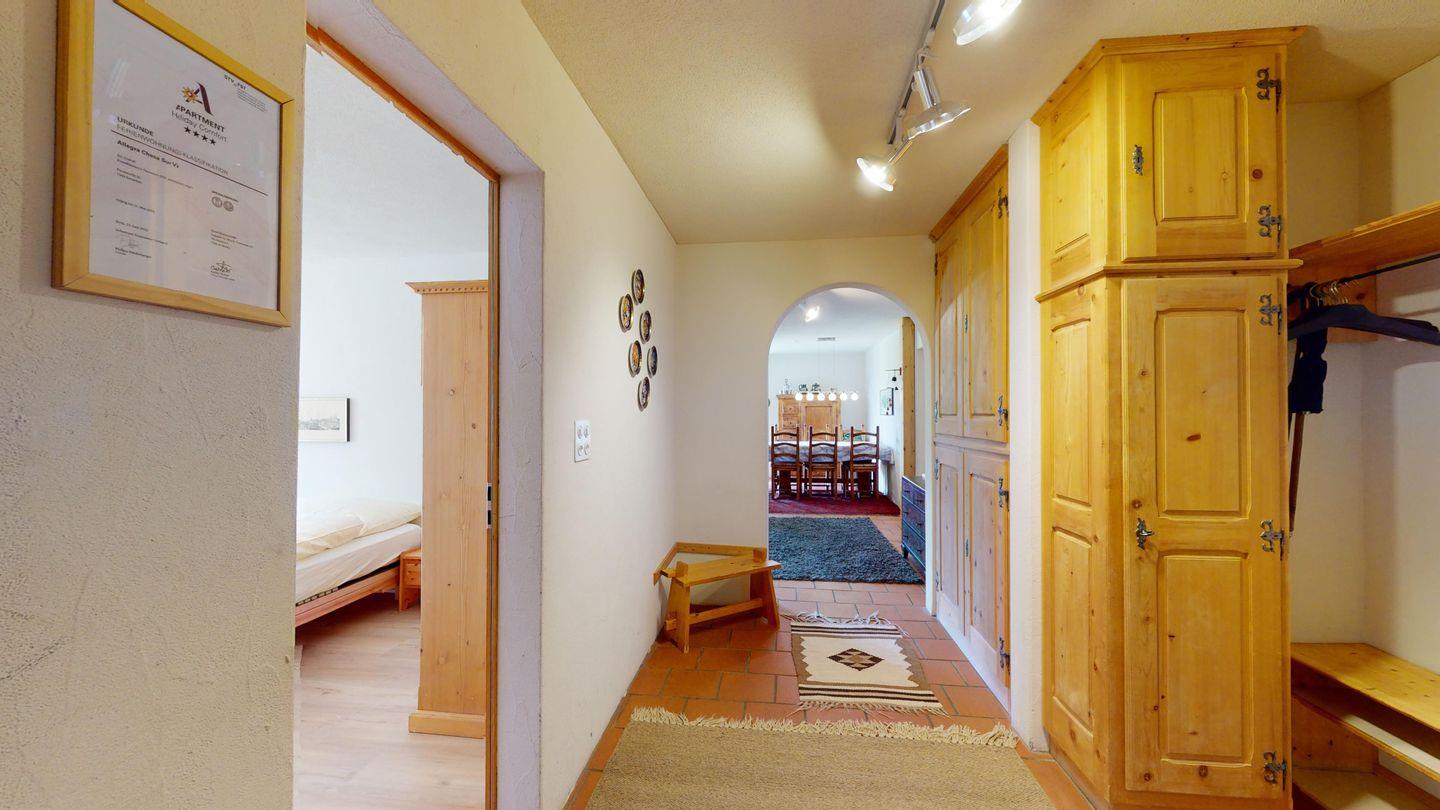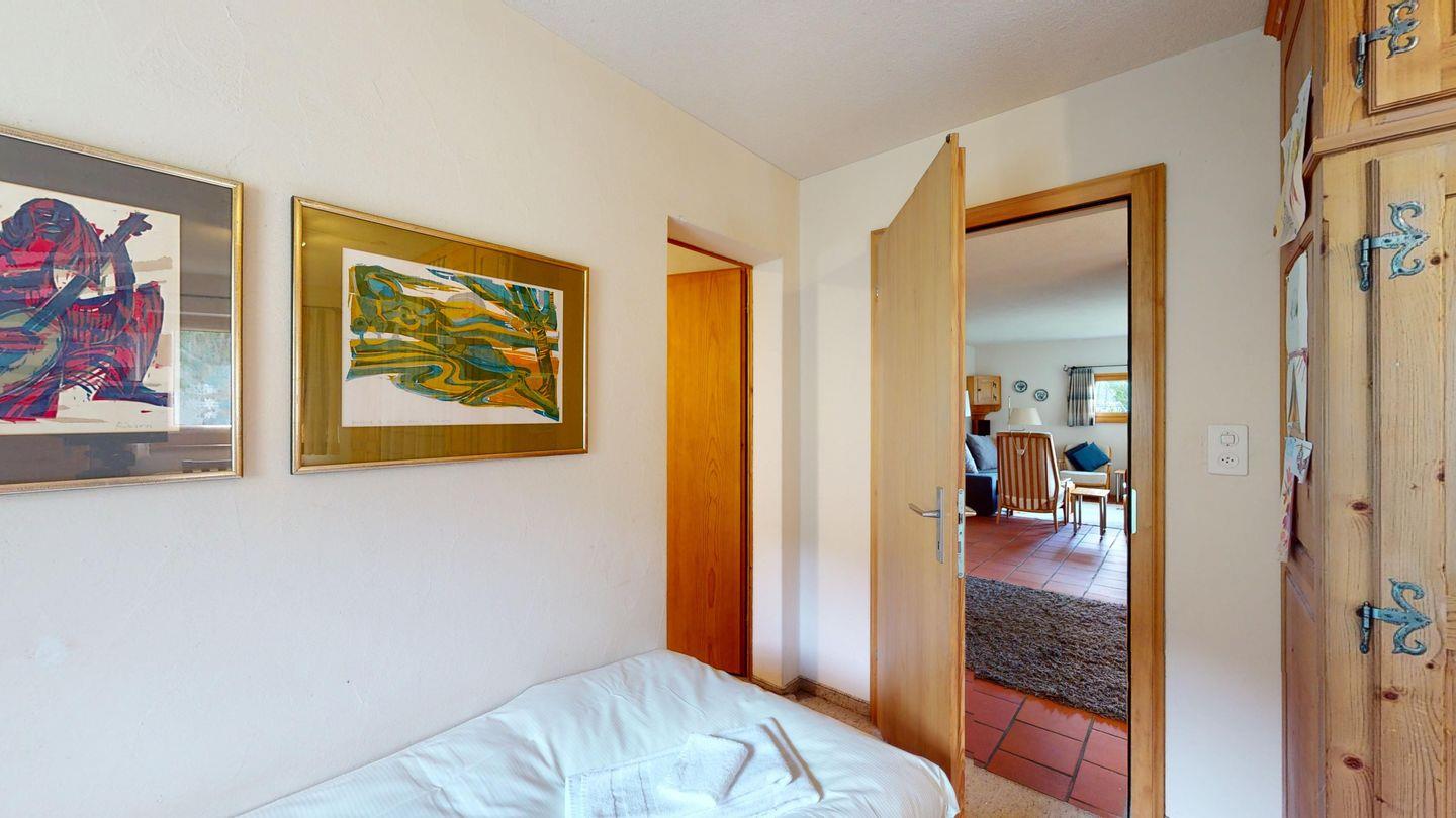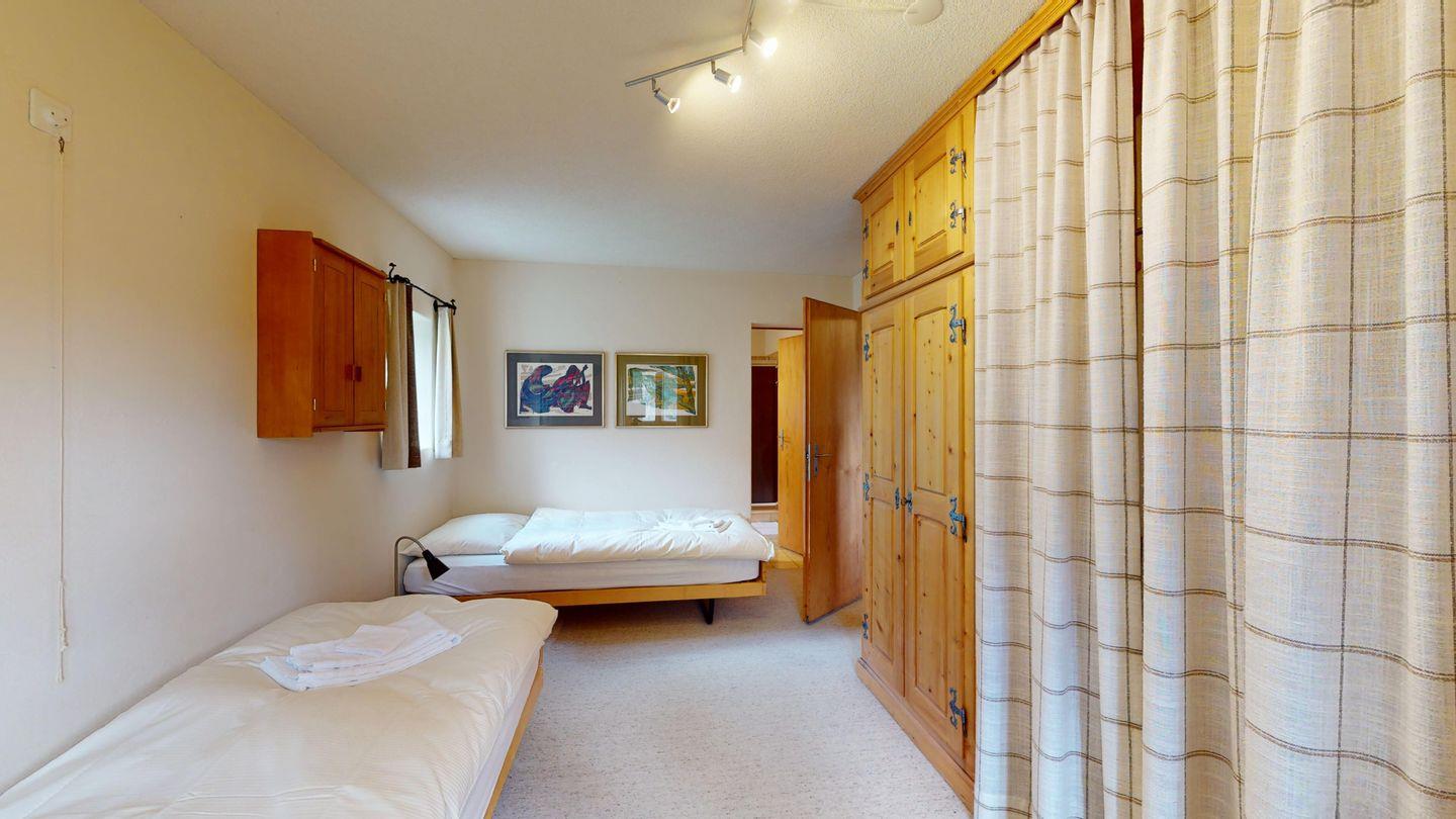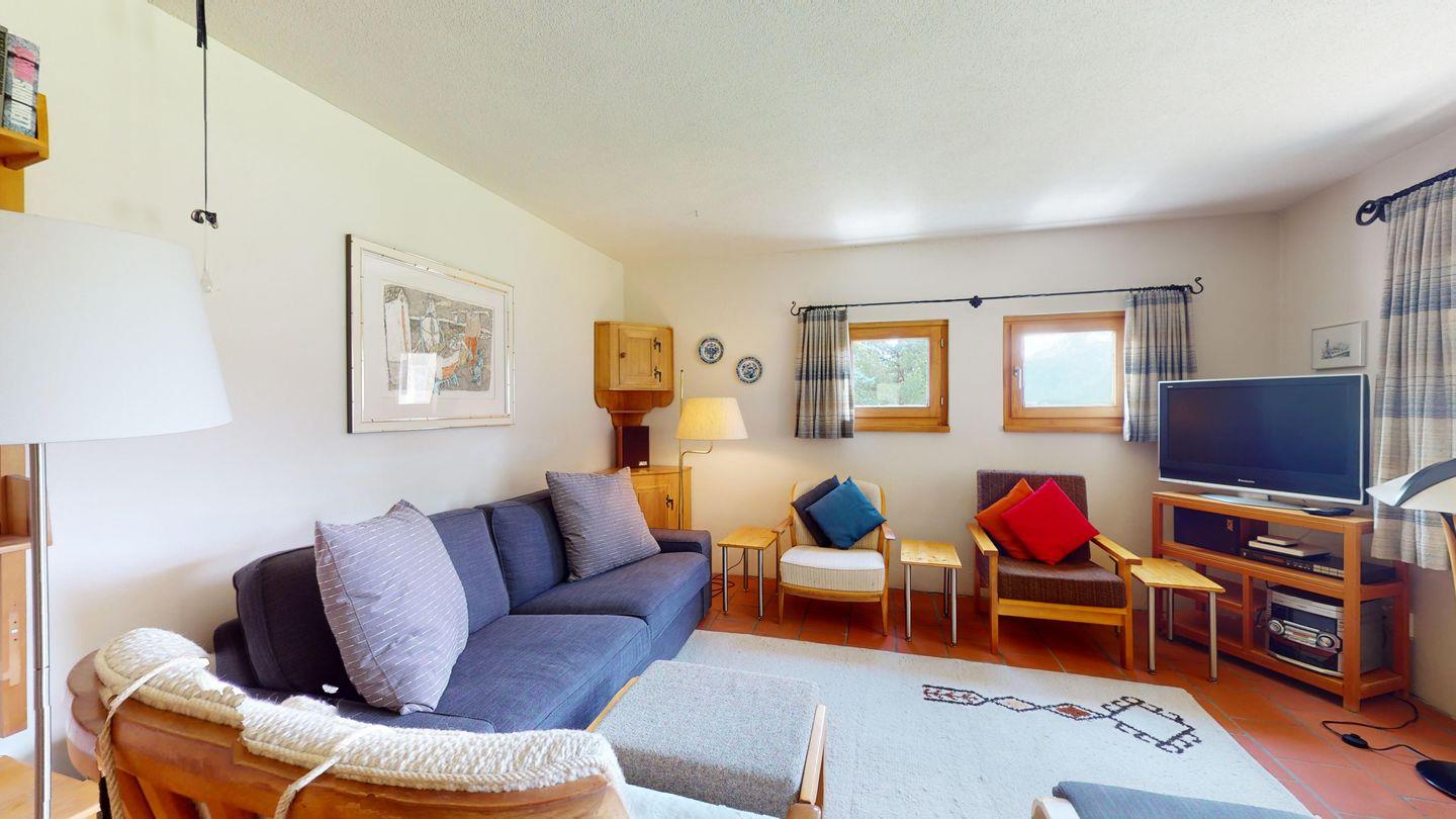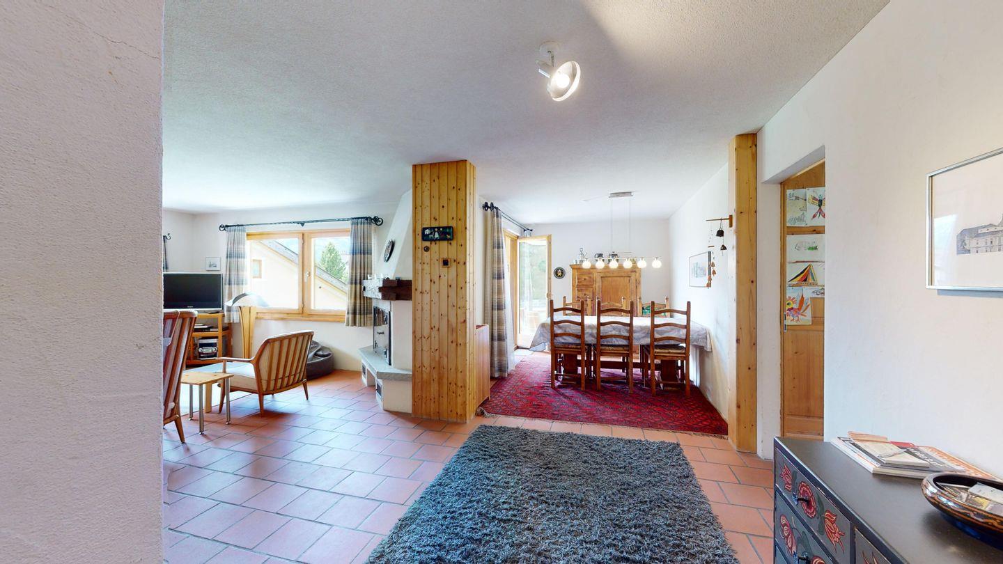 Grosse 4½-Zimmerwohnung (122m²) im Erdgeschoss an ruhiger Lage, direkt unter dem Skilift Samedan. Geräumige Küche mit Geschirrspüler, Mikrowelle, Gefrierschrank, Kaffeemaschine, Toaster. Helles Wohnzimmer mit Cheminée, TV/Radio/Internet und grossen Gartensitzplatz. Drei Schlafzimmer mit je 2 Einzelbetten. Ein Badezimmer mit WC/Duschen/Lavabo. Zweites Badezimmer mit WC/Duschen/Lavabo und Badewanne. Einen Parkplatz in der Garage und einen Aussenparkplatz. Genügend Platz für Velos vorhanden. Haustiere sind nicht erlaubt.