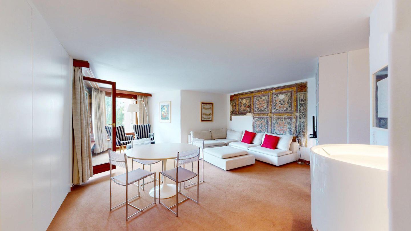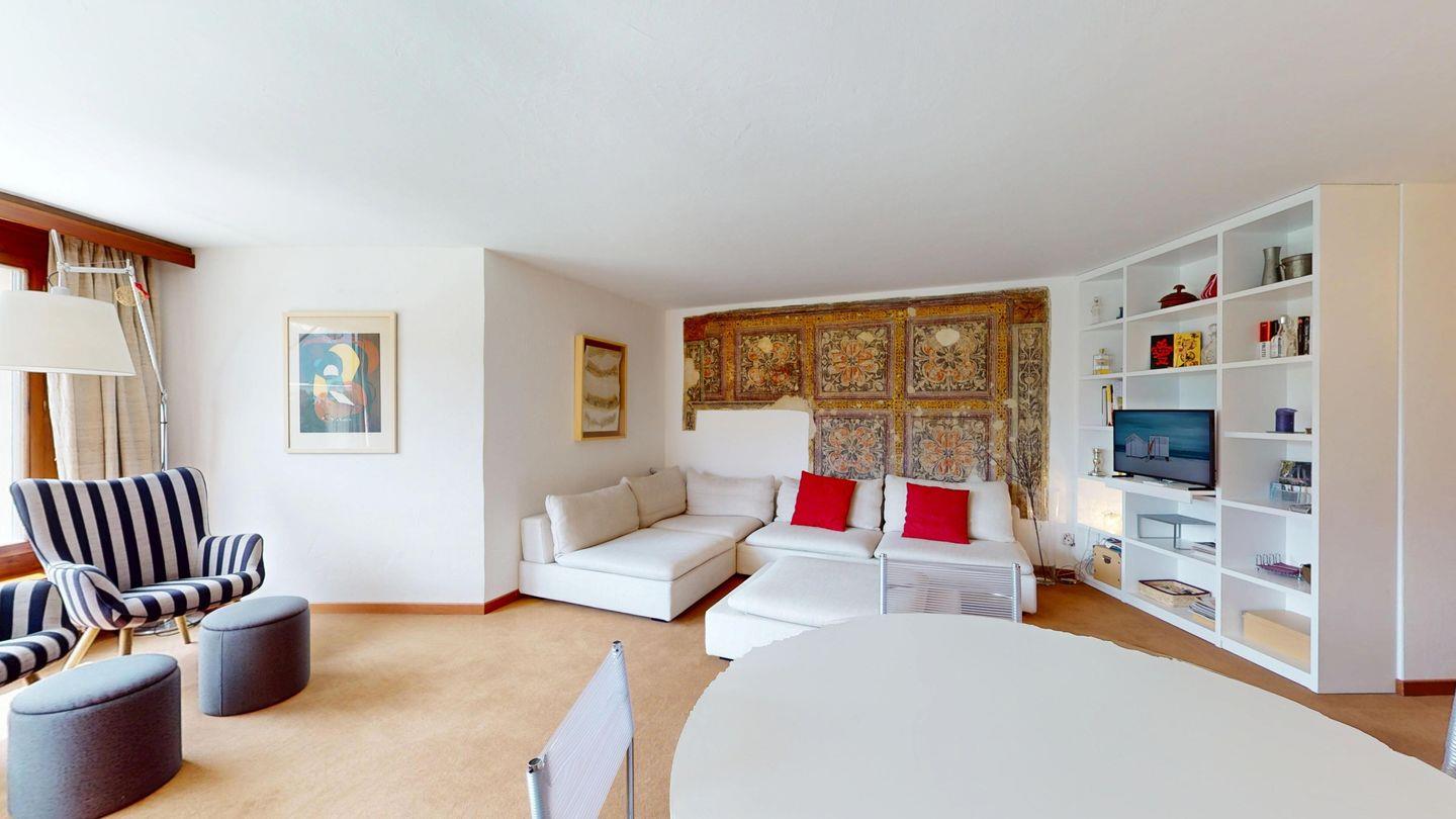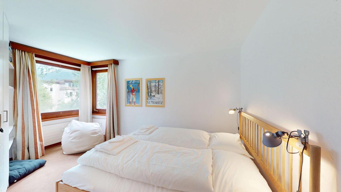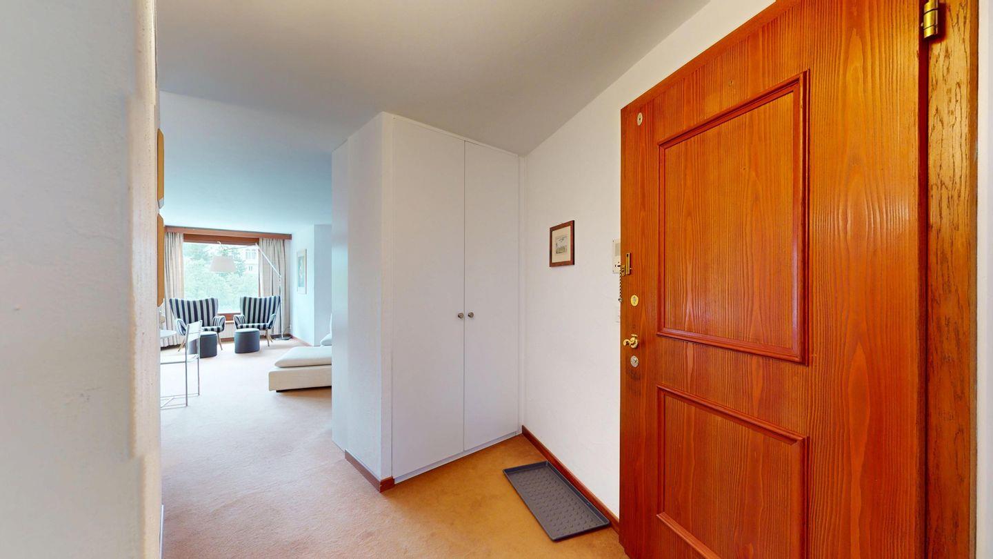 2½ Zimmerwohnung mit ca. 60 m² im 1. Stock mit Aufzug. Eingang mit Garderobe, Wohn- / Essbereich, Ausgang zu einem kleinen Balkon mit Blick auf die Berge. Fernsehen und Internet. Kleine separate Küche mit Backofen, Kühlschrank, Kaffeemaschine und Geschirrspüler. Schlafzimmer mit Doppelbett. Badezimmer mit Badewanne, Waschbecken und Bidet. Ein Garagenparkplatz (190cm hoch). Waschküche und Skiraum.
