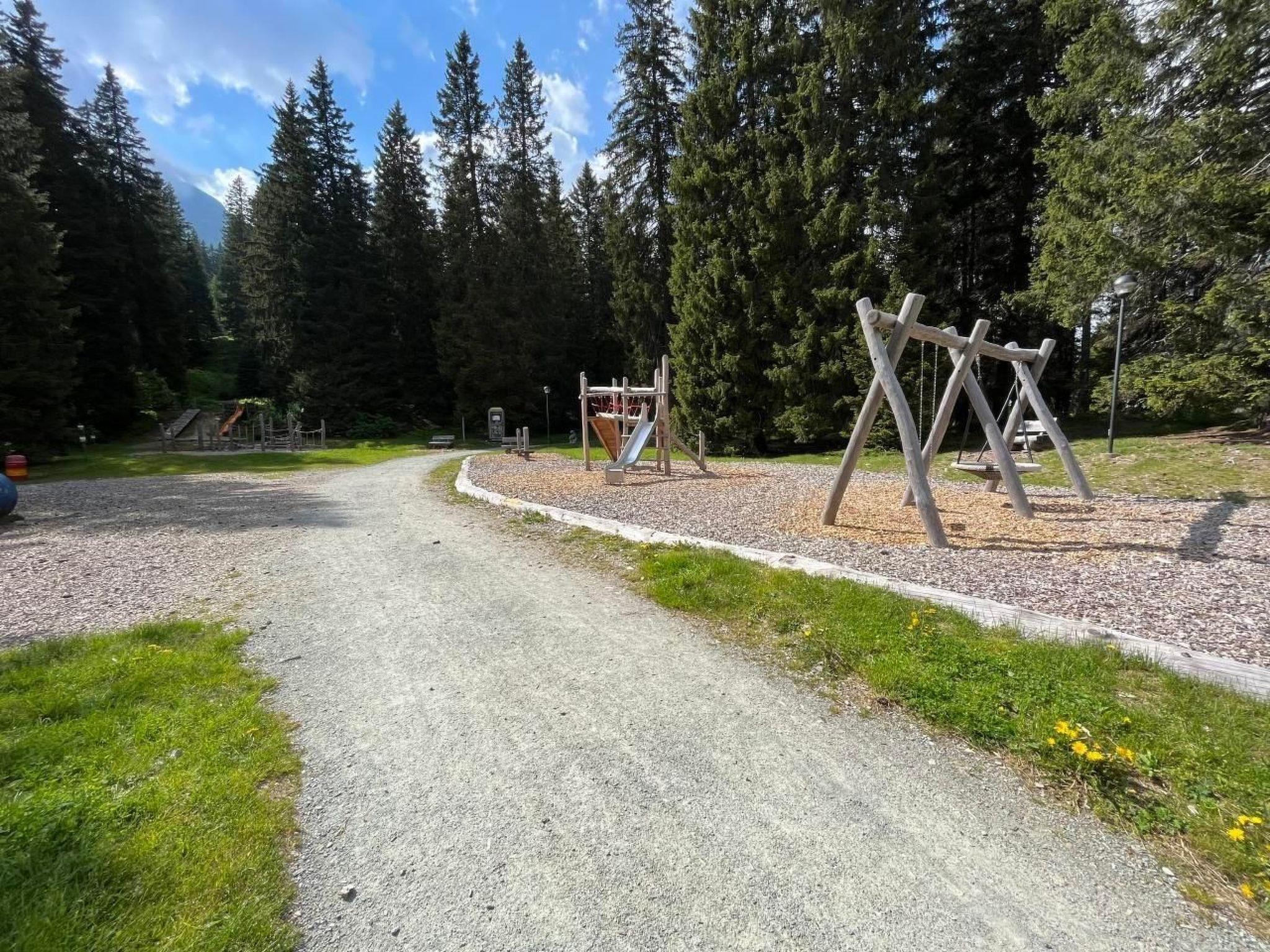 During the summertime, the apartment turns into a serene retreat at 1608 m above sea level, surrounded by a green setting. Thanks to the altitude, you can enjoy cool temperatures even in the hottest months. Take advantage of the proximity to the lake to experience unspoiled nature with relaxing walks in the surrounding area. This summer paradise is further enhanced by the exciting opportunity to venture out to a nearby adventure park that stretches 550 m. There is also the opportunity to explore the surroundings by mountain bike offering exciting experiences. A summer oasis combining relaxation and adventure in nature.
