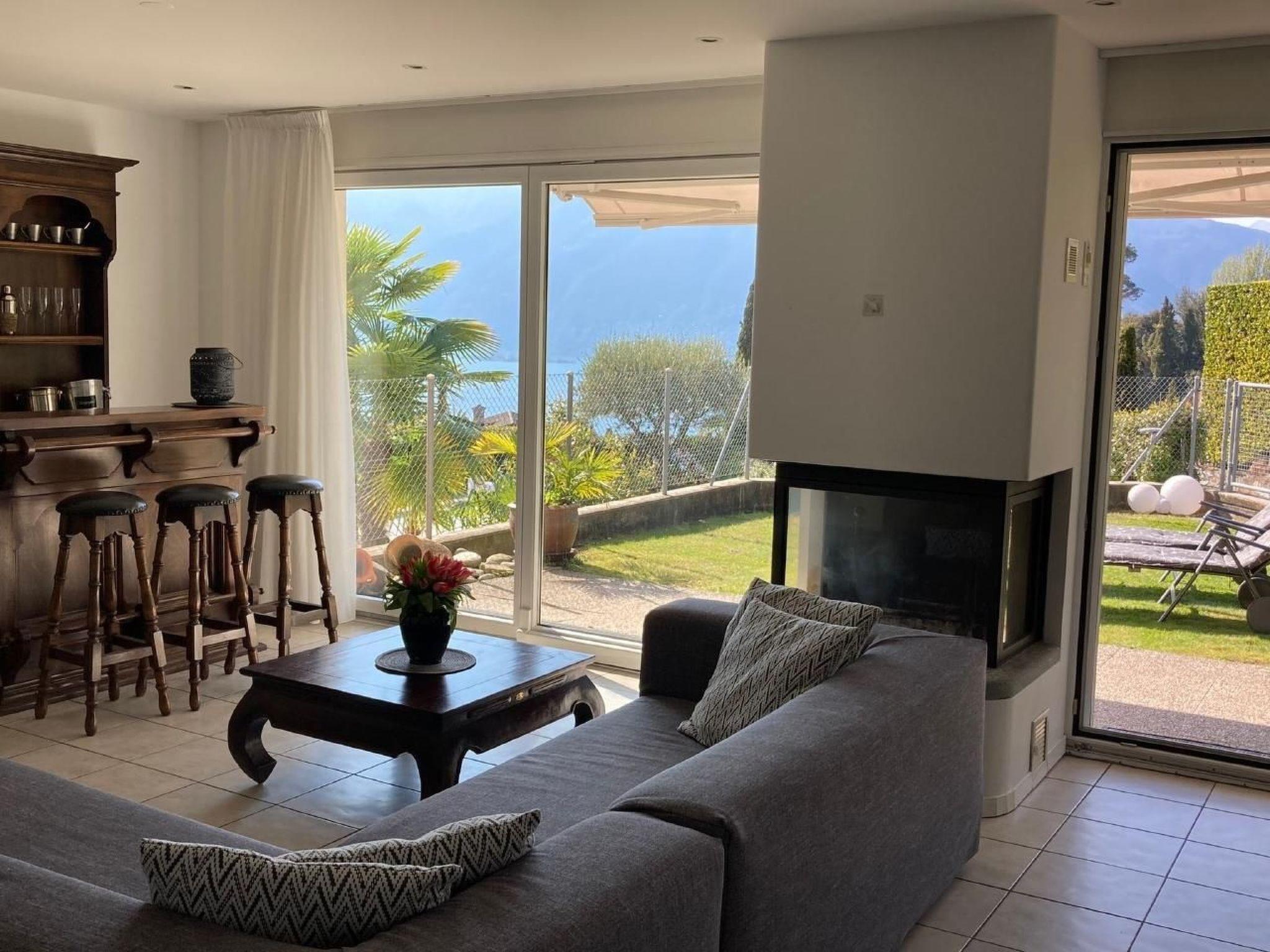 Other living room furnishings (living room1): The living room has a cosy antique English bar with 3 bar stools and a great lake view. Large window fronts open up the view over the private garden across the pool to the lake. This lake side spoils you with the most beautiful sunsets on Lake Maggiore and the living room also has a large corner sofa with lake view, a flat screen TV, a CD player and a radio. The crackling fireplace will delight you and provide you with unforgettable evenings.