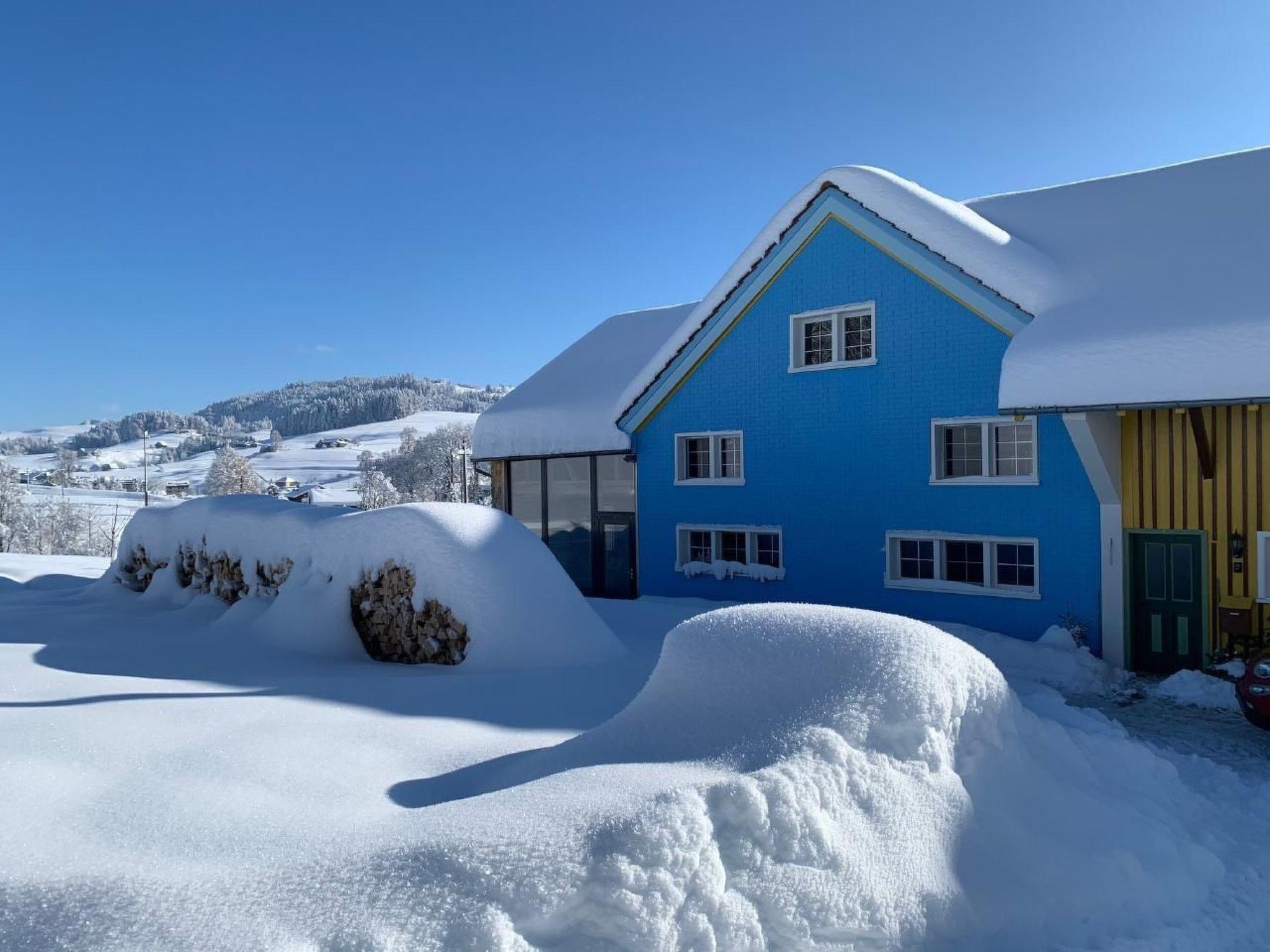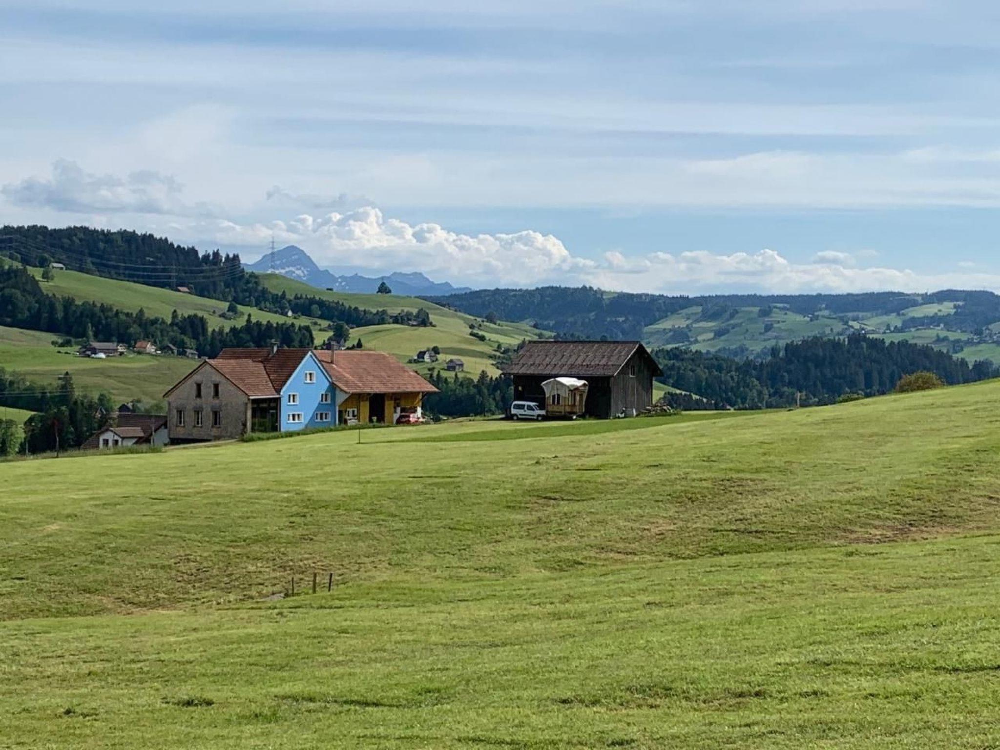 The two-storey guest flat in a typical Appenzell house (with low ceilings - see detailed description), which we have lovingly designed over the years, is a separate part of the house with its own outside entrance in a contemporary regional style and is within walking distance of the village in a location on the outskirts with a beautiful view of the village of Schönengrund and the surrounding area. At the rear, with a view of the Way of St James, you feel as if you are on an alpine pasture and yet you are within walking distance of the bakery, butcher's shop, grocery shop and country store. You can also retreat to our forest with stream during the day. If you are travelling on the Way of St. James, you can reach us on foot in 15 minutes. If you are travelling by public transport, we will be happy to pick you up at one of the stops.