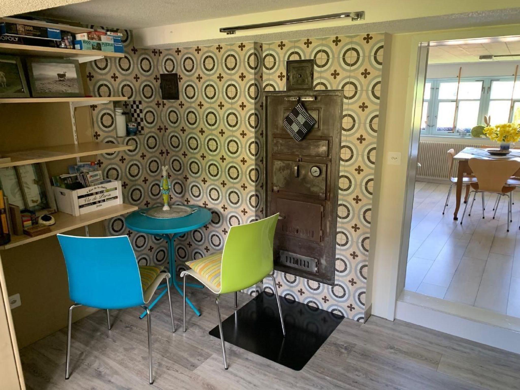 We have attached great importance to the reuse/design of existing materials and furniture. You will therefore find a real gem, which is worth a stay whatever the weather. If you prefer to sleep on the ground floor on the same level as the kitchen, bathroom and house entrance, then use our new high-quality sofa bed in the living room, which can be easily folded out into a bed in a few simple steps. We have deliberately avoided carpeted floors and favoured LED lighting. We also use wood from our own forest for heating and solar energy for hot water. Our 4 hectares of meadowland around the farm are farmed in a natural way.