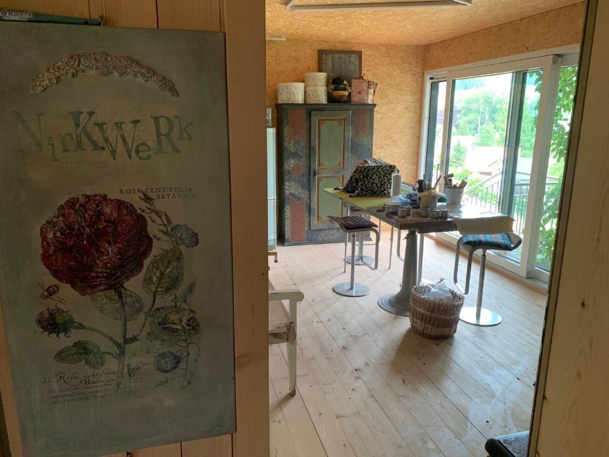 Would you like to be creative during your holidays as well as going on excursions, hiking and enjoying the spa? We are happy to make our well-equipped workshop and our studio with its large south-facing window available to you. For example, you can bring a piece of furniture or decorative item from home to upcycle and decorate it with chalk paint and various techniques, or you can visit the local second-hand shops and choose a suitable piece. If you prefer textile work or would like to skilfully mend your laundry or transform your table/bed linen into home decoration, then a Bernina sewing and overlook machine is ready for you. We will be happy to give you advice.