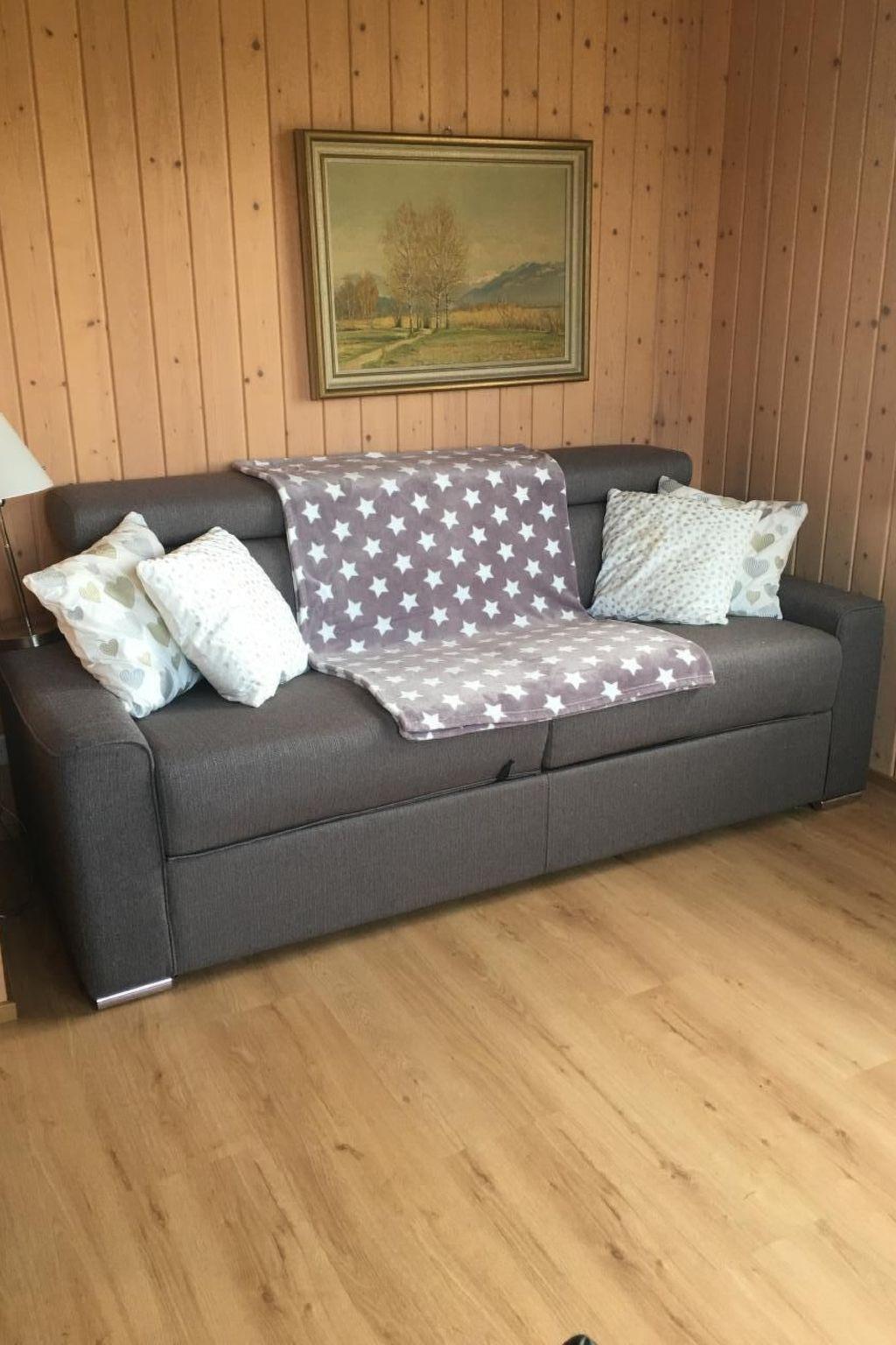 Inside the holiday home you will find a lovingly designed interior that promises cosy living in a rustic ambience. The attic room on the 2nd floor has two single beds and is accessible via a steep staircase; if required, the sleeping area can be extended by two additional beds. A pull-out sofa bed in the living room provides additional sleeping space. The kitchen is fully equipped with modern amenities such as a dishwasher, oven/steamer and a 4-burner hob. Another highlight is the bathroom with window, which has a shower with sliding shower screen, a mirror cabinet and a hairdryer.