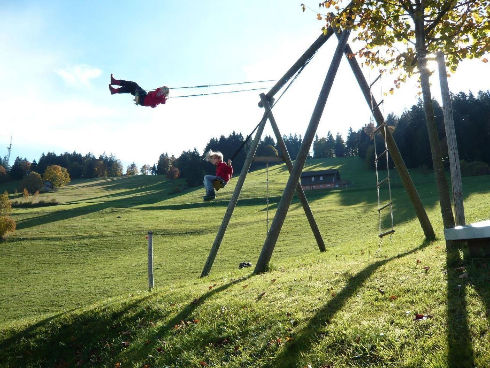 We rent out a spacious flat on the top floor of the farmhouse with a kitchen-cum-living room, a double room and a triple room as well as a shower and WC. Various play equipment (see pictures) is available for the children during their stay. Our young and old guests are welcome to join us in the stable and help with feeding and mucking out the animals. We also offer our own farm produce for sale (eggs, honey) Our farm is situated in the middle of the UNESCO Biosphere Entlebuch (Napf area), in a very quiet location at approx. 900 metres above sea level. The region offers countless nature experiences, from hiking and biking to winter sports. We look after cattle. We also have two trout ponds. Offer on the farmOpportunities to help: Feeding the animals, from 4 years of age Stable work, from 4 years of age On our farm you will find local products such as honey and eggs For children we offer the following: Toys Playground on the farm 1 baby cot included Our animals:On our farm we have cattle, a dog, cats and chickens.Pick-up and drop-off services:We offer pick-up and drop-off services from Schüpfheim railway station (free of charge).