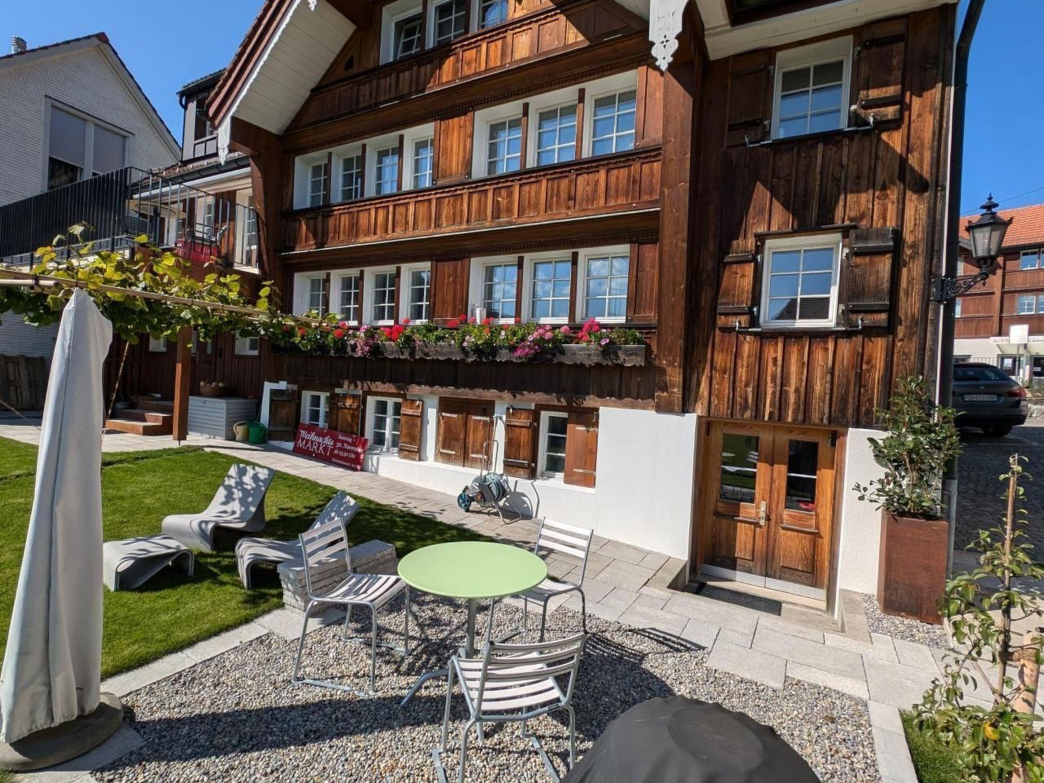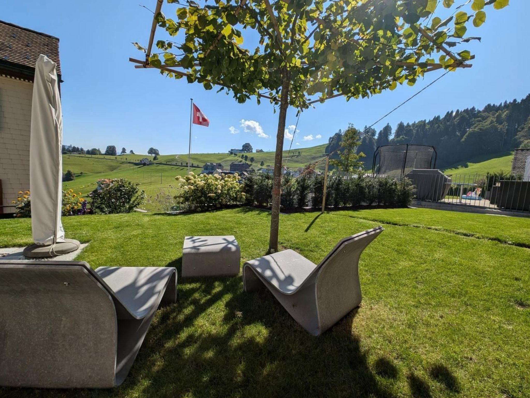 Our traditional Appenzellerhaus is located in the middle of a wonderful landscape. Many wonderful excursion destinations such as the Säntis or Lake Constance are within easy reach. The flat has a separate entrance. The bedroom is equipped with a state-of-the-art box-spring bed. The flat offers space for a maximum of 4 people (double bed plus sofa bed): Rent, utilities, underground car park, visitor's tax, bed linen, towels and kitchen linen, coffee capsules, use of washing machine/tumbler (in the flat). Private garden area with charcoal barbecue.