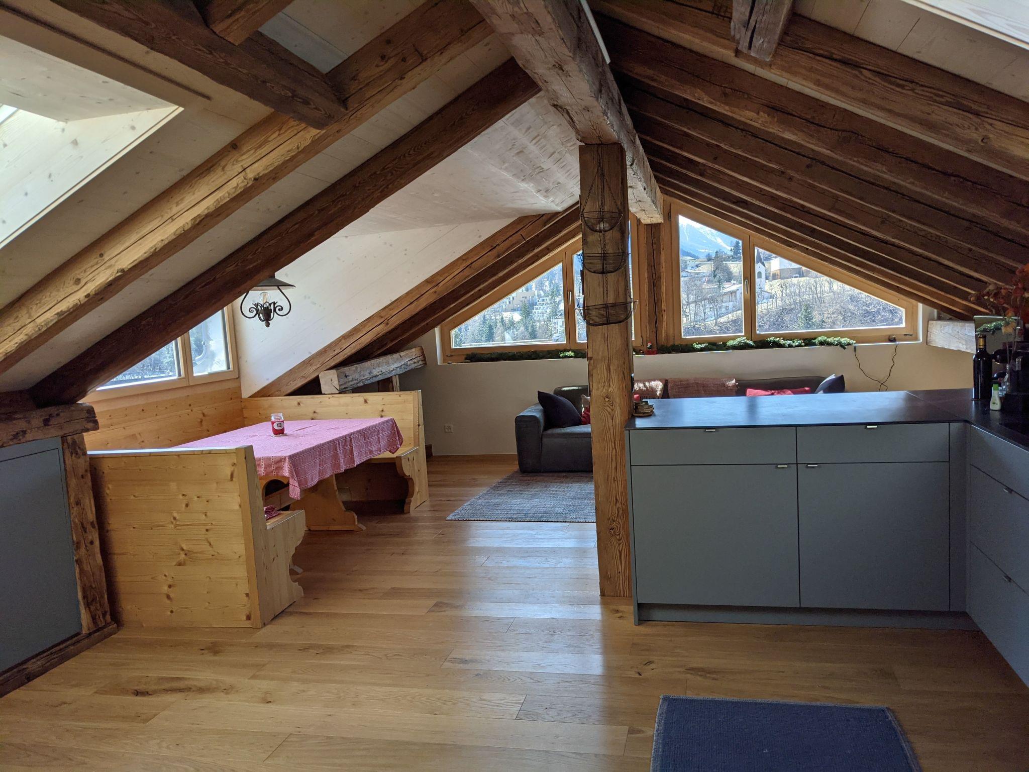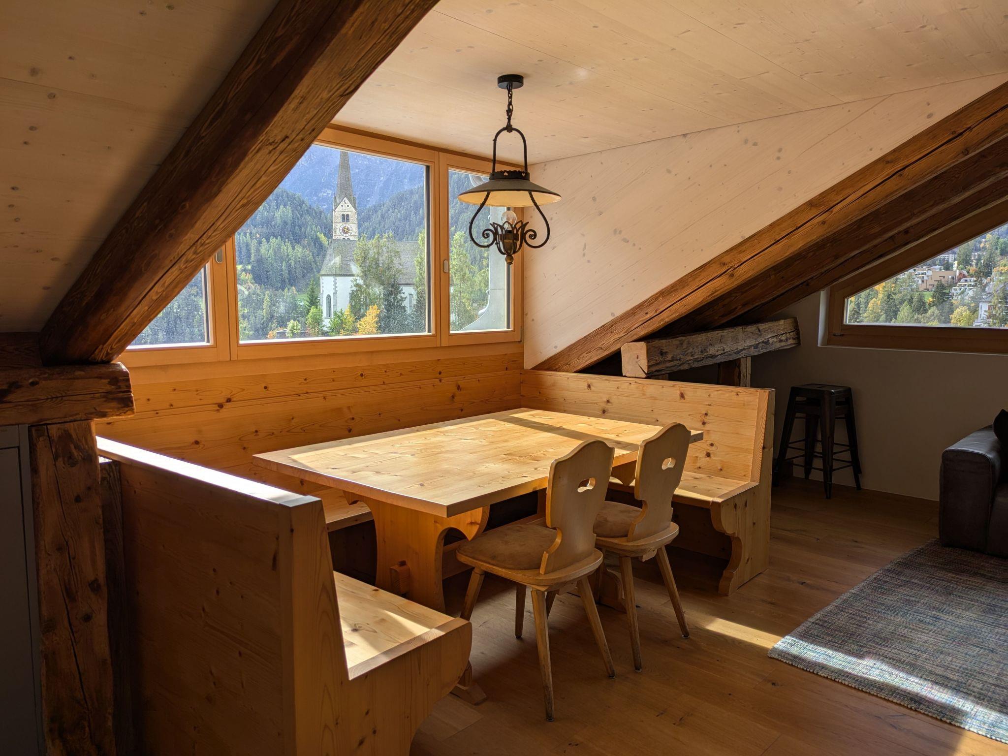 Renovated 4.5-room flat (2020) in a charming Engadine house "La Motta" with a unique view over Scuol.