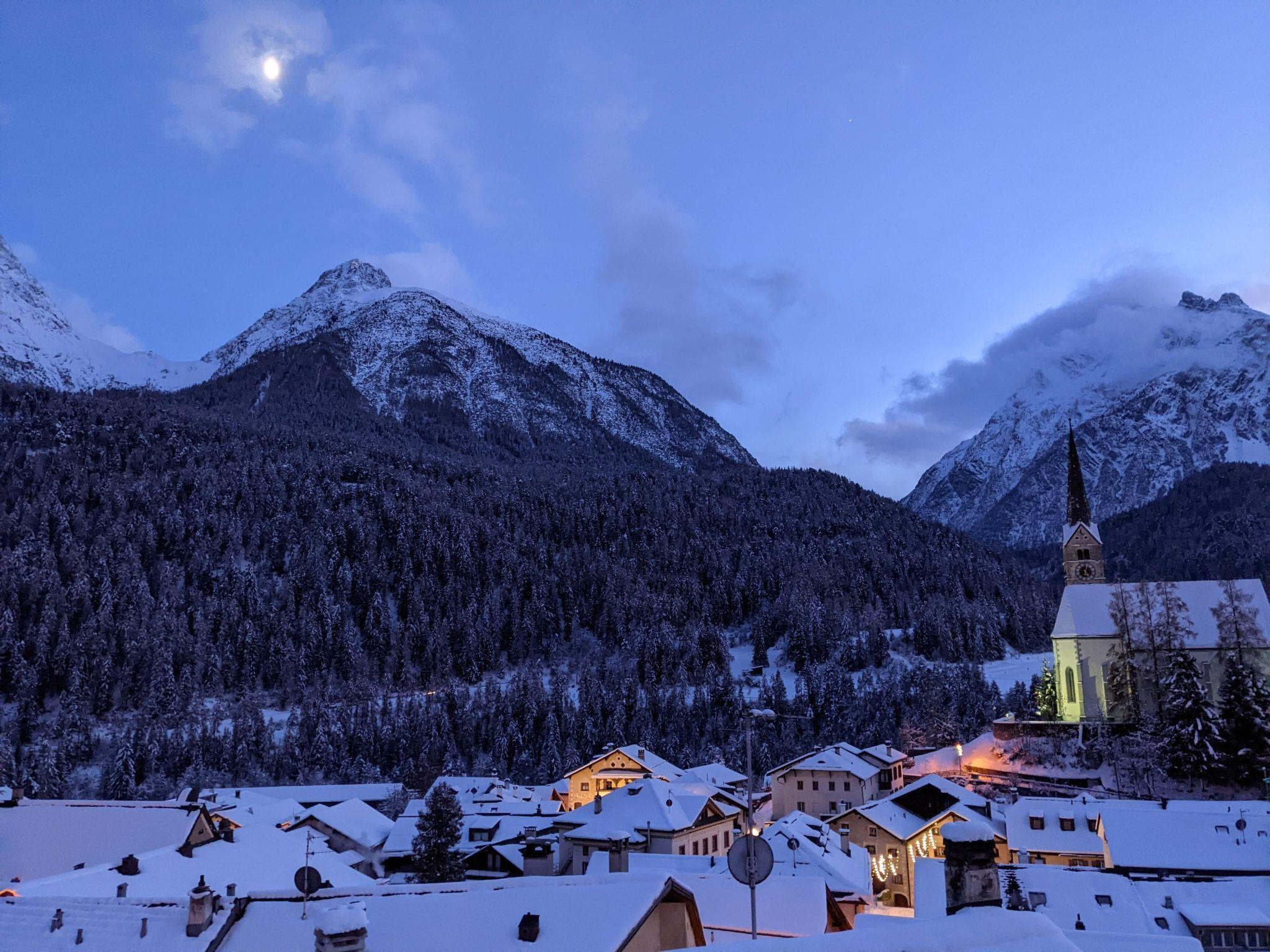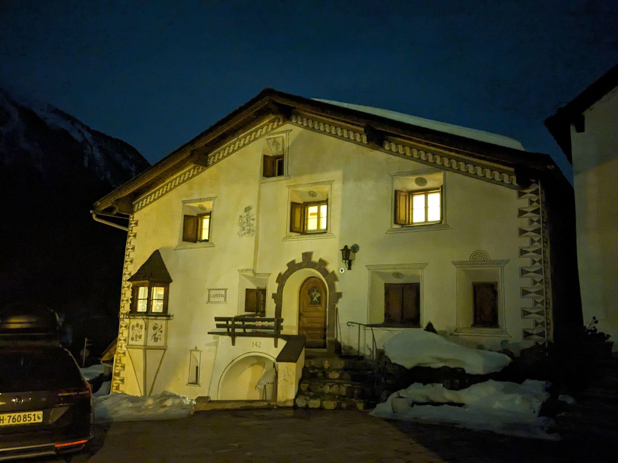 The flat is centrally located, directly below the Hotel Belvedere and the Bogn Engiadina (thermal baths).