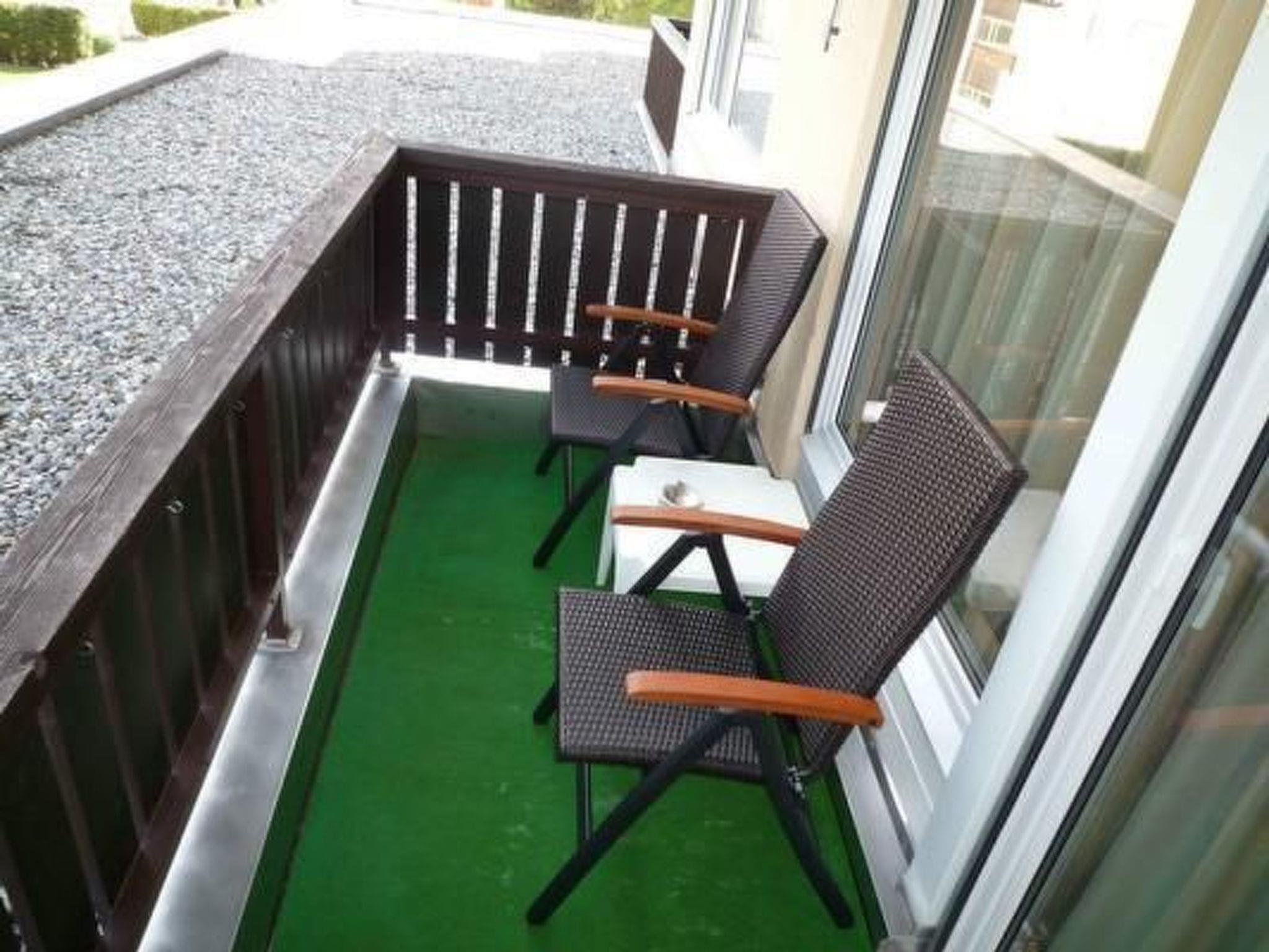-Sunny south-facing balcony with table, deckchairs and beautiful view of the mountains.