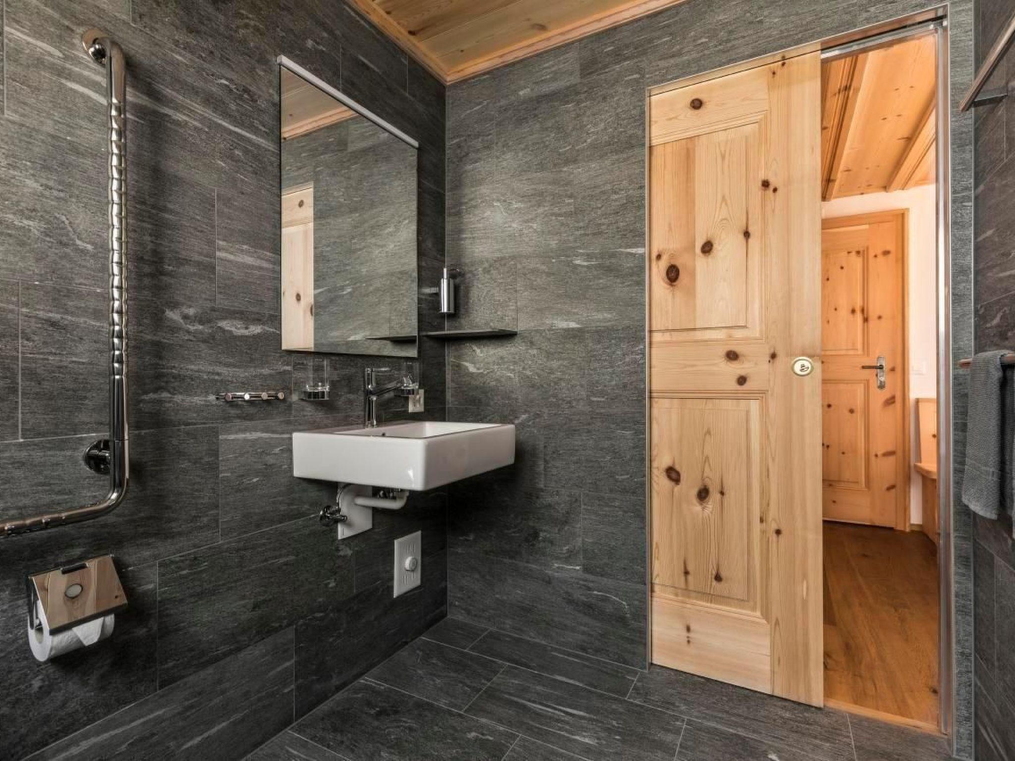 The flat is furnished as follows: Beautiful bright living room and bedroom with parquet flooring, dining area, kitchen with Vals natural stone worktop and dishwasher. The apartment has been completely renovated in Grisons style using local materials.