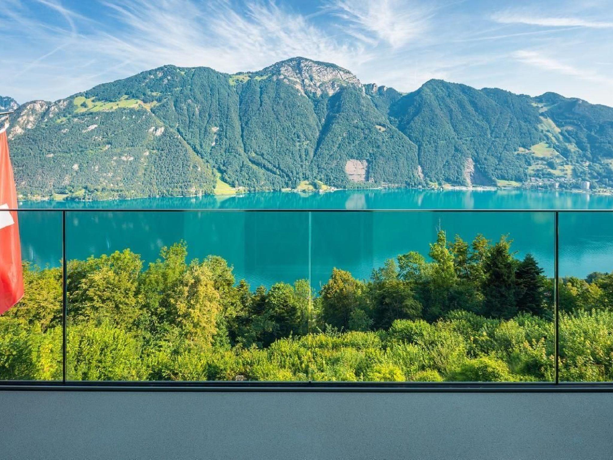 This completely renovated, dreamlike chalet is located on a quiet, private road with unobstructed and breathtaking views of Lake Lucerne and the surrounding mountains! Features: The luxurious chalet is fully equipped like a detached house. It has 3 bedrooms and is suitable for a maximum of 6-8 people. There is a car park for 2 cars in front of the house. A stone staircase leads to the main entrance with terrace. Ground floor The ground floor is equipped with a large cloakroom. On this floor you will find a table football table and a natural cellar with various alcoholic beverages at your disposal. There is also a laundry room (washing machine/tumbler available), a bathroom with shower and a bedroom for 2 people with a view of the lake. 1st floor A spiral staircase takes you to the 1st floor. There you will find a fully equipped, modern kitchen (fondue, raclette available) with dishwasher, induction hob, oven and a large food centre. There is also a large flat-screen TV (Netflix available) and a multifunctional KOINOR sofa as well as a fireplace and another bedroom with a small library. There are several exits to the large main terrace and the garden with jacuzzi and Finnish sauna. DG In the attic you will find another bedroom with a marvellous view of the lake. Upstairs there is a large bathroom with a shower and a hydromassage bath. There is also a lounge and a workstation with iMac and printer. Garden In the garden you will find various. In the garden you will find various seating options, deckchairs and a gas barbecue for your BBQ. The highlight is a jacuzzi with a view of the lake and a Finnish sauna! The house has underfloor heating and can be switched on and off via thermostat or SMS. The entire chalet was completely renovated in 2020. Enjoy your holiday in this absolute dream home with unforgettable views of the Central Swiss mountains and Lake Lucerne!