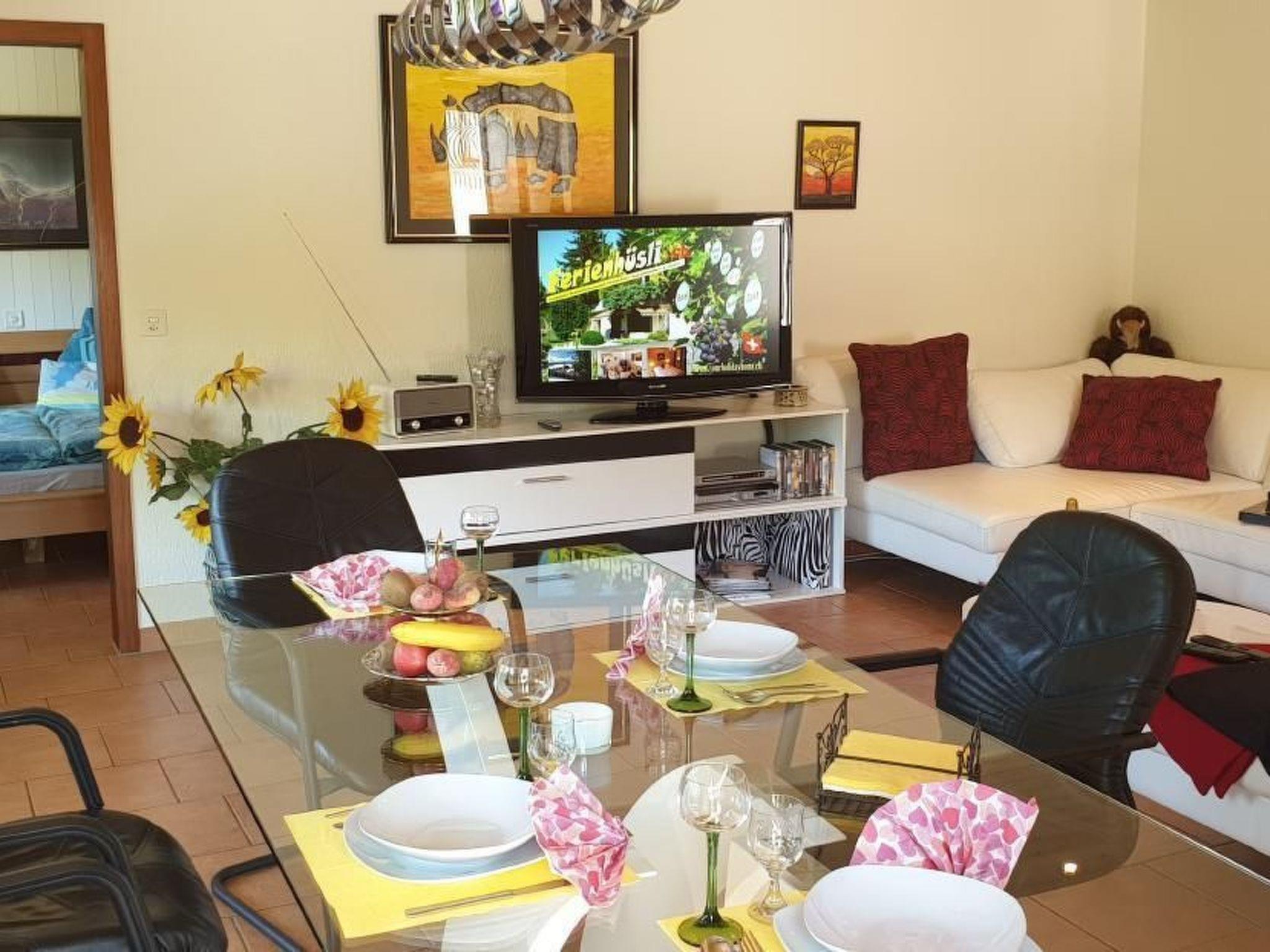 The Ferienhüsli offers you a living room (TV, DVD, DAB+ radio and WLAN), bedroom and children's room (incl. extra bed), as well as a well-equipped kitchen with dishwasher (after all, you are on holiday ;-)) and a bathroom with bathtub and shower - on the ground floor.